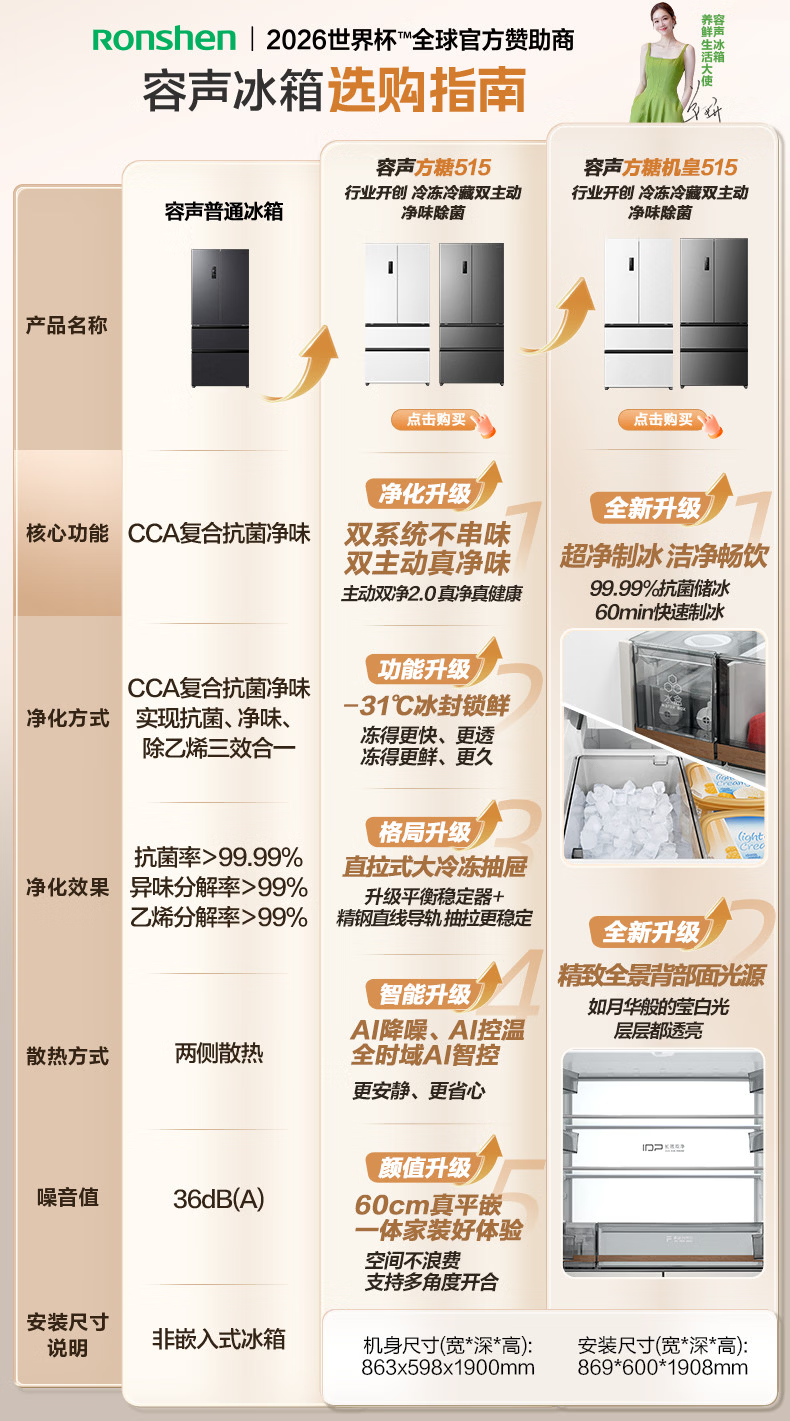 容声方糖515L法式四开门冰箱双系统双循环超薄零嵌入式一级能效风冷无霜白BCD-515P60FZMAD国家补贴