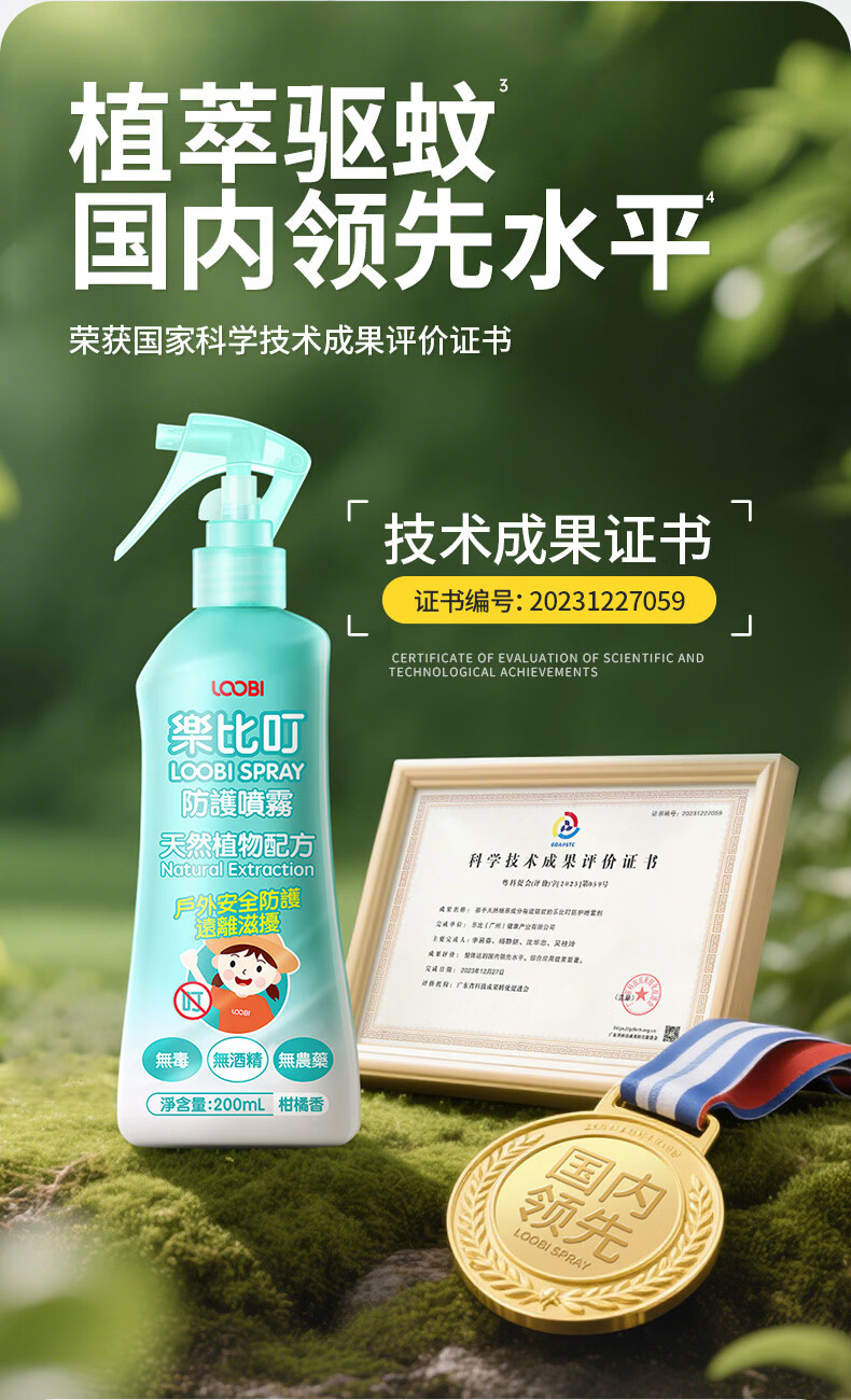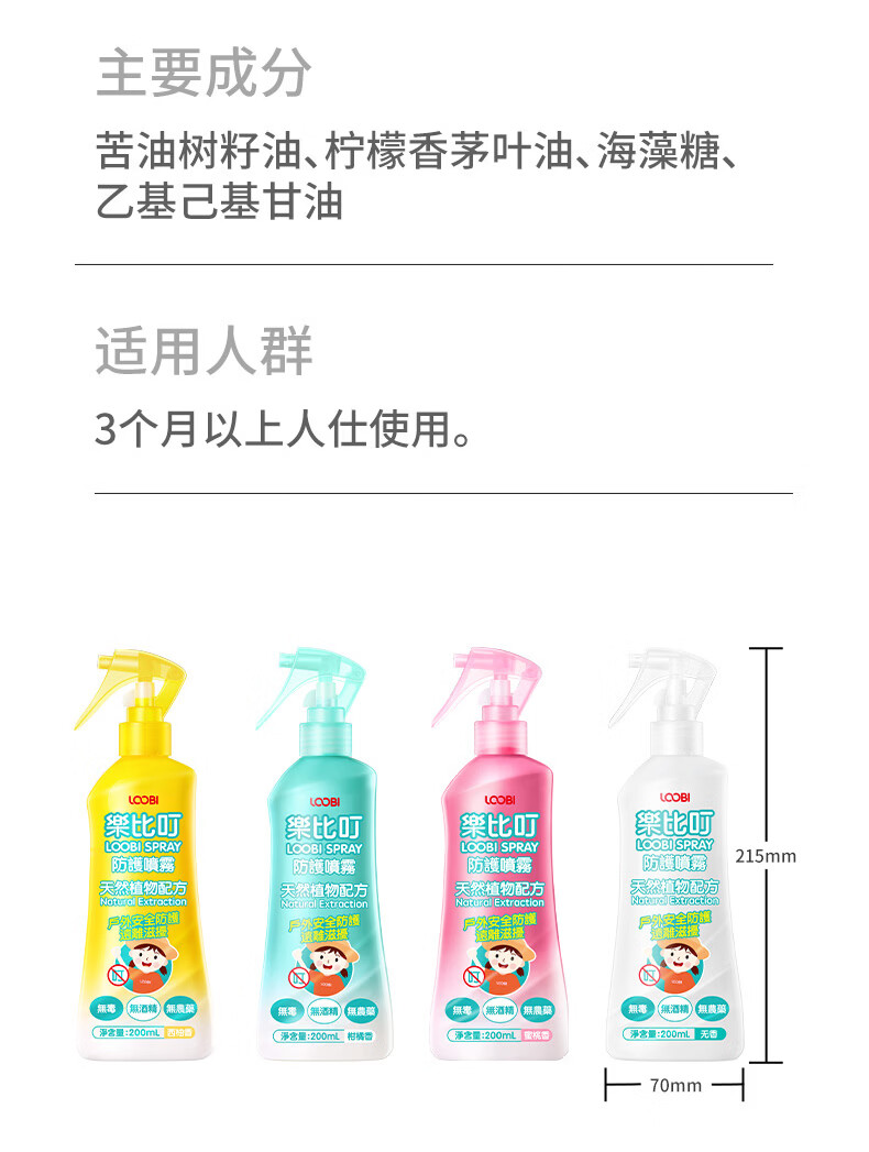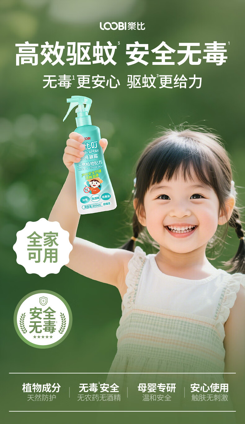 乐比(LOOBI)韩国进口乐比叮植物驱蚊喷雾花露水儿童宝宝户外防蚊防叮神器 柑橘香防护喷雾200ml*1瓶