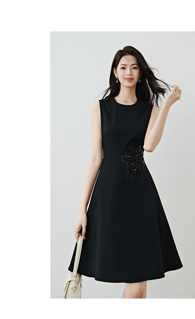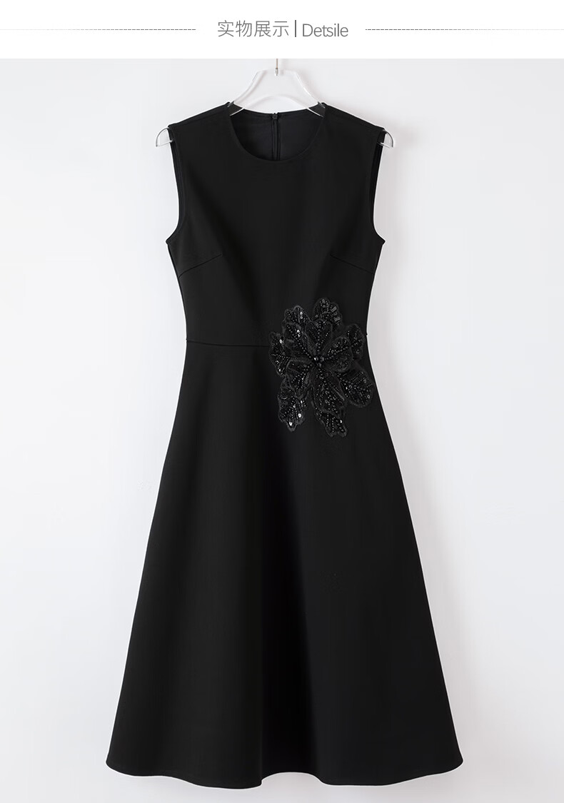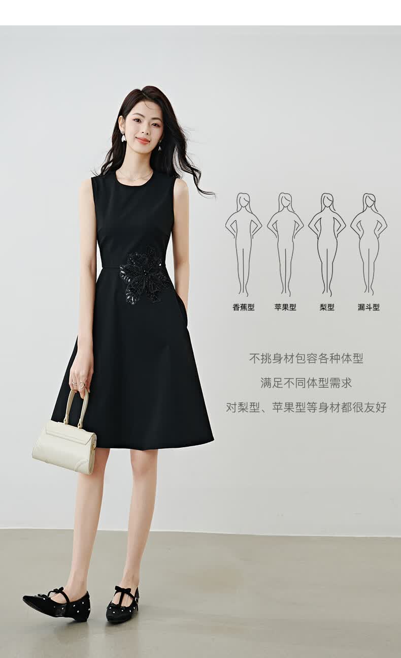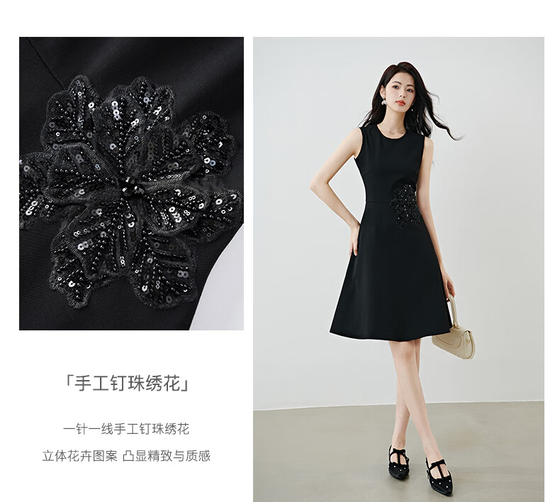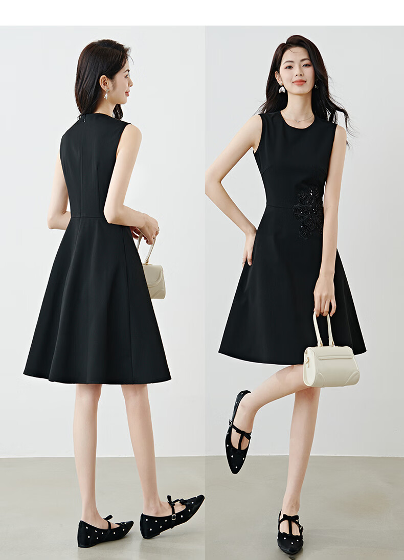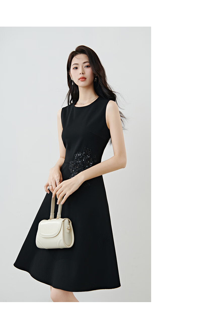 晚白2026春款气质赫本风小个子礼服裙重工绣花钉珠收腰遮肉无袖连衣裙 黑色 M