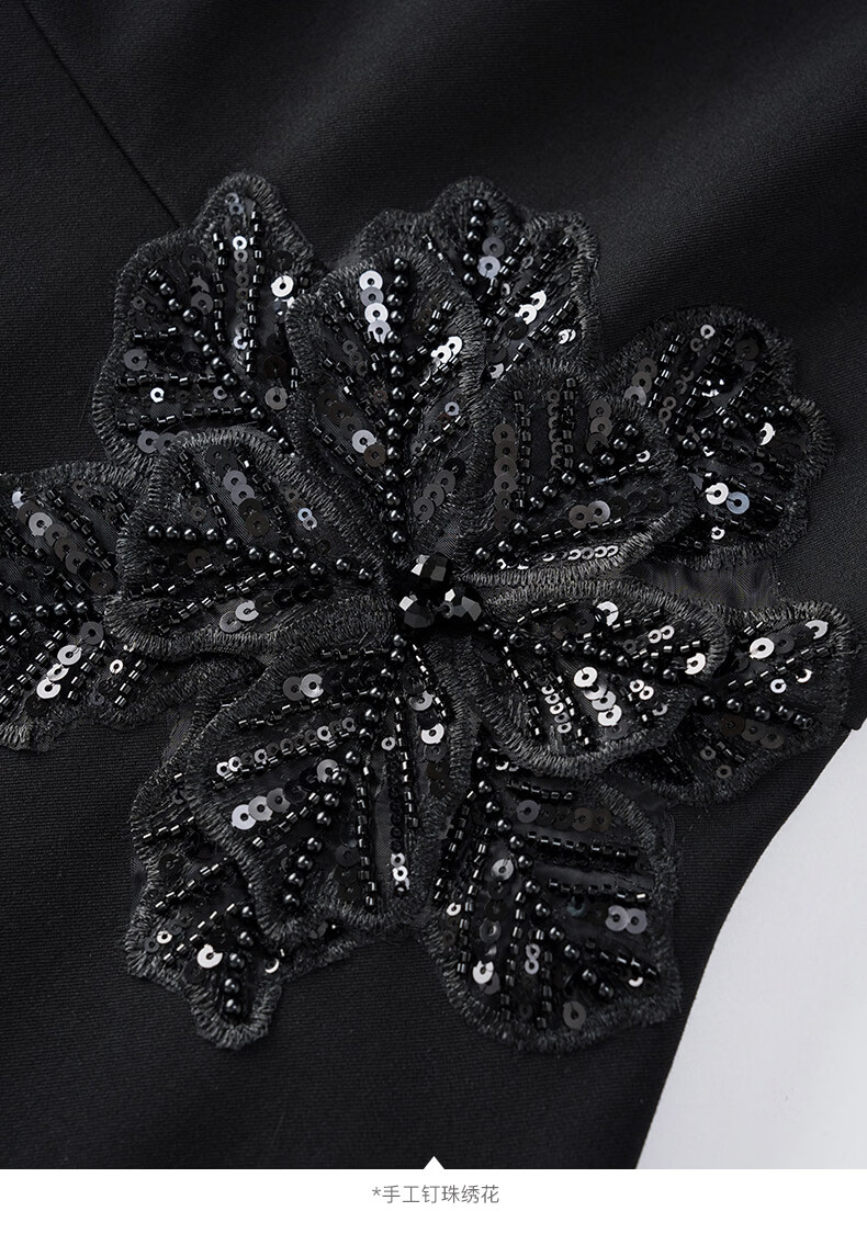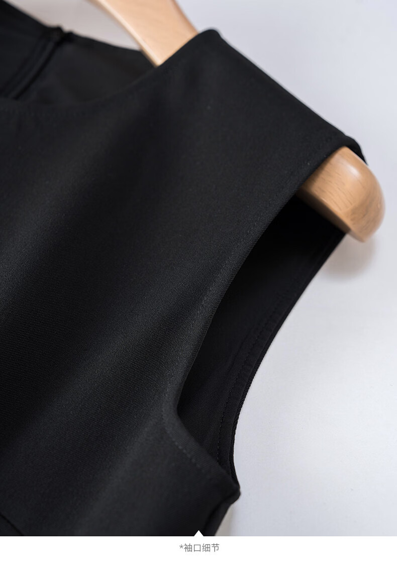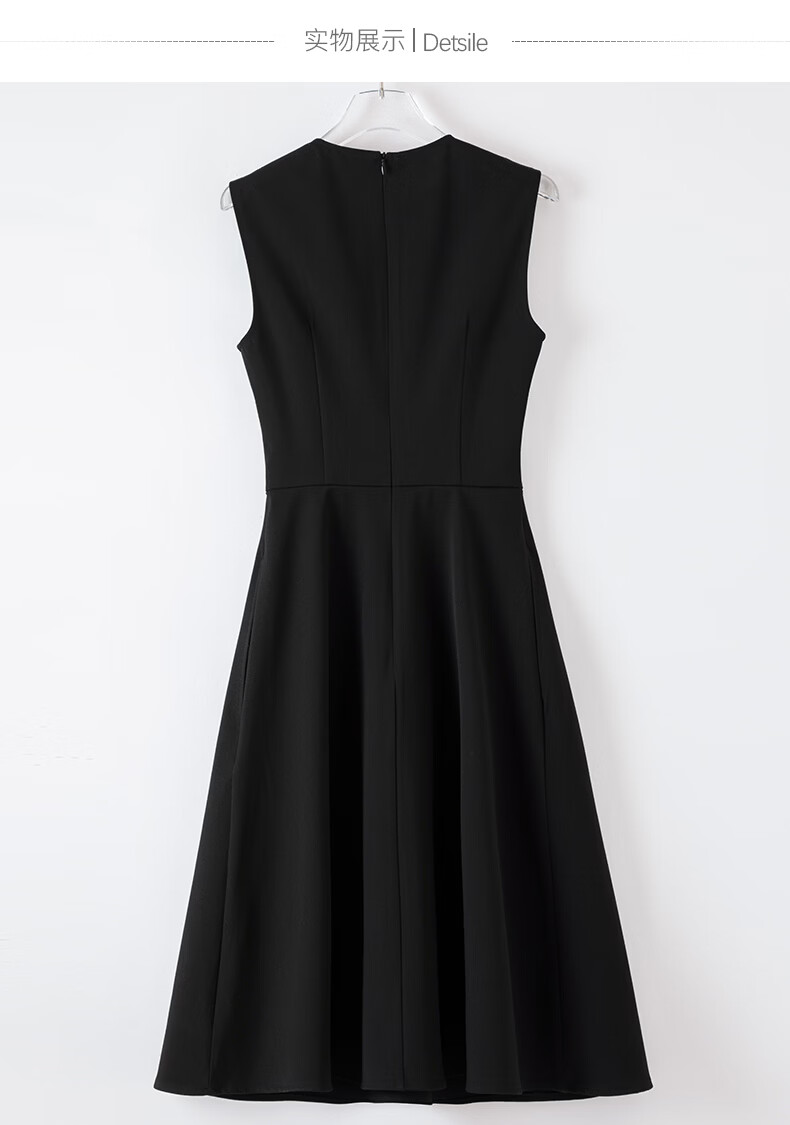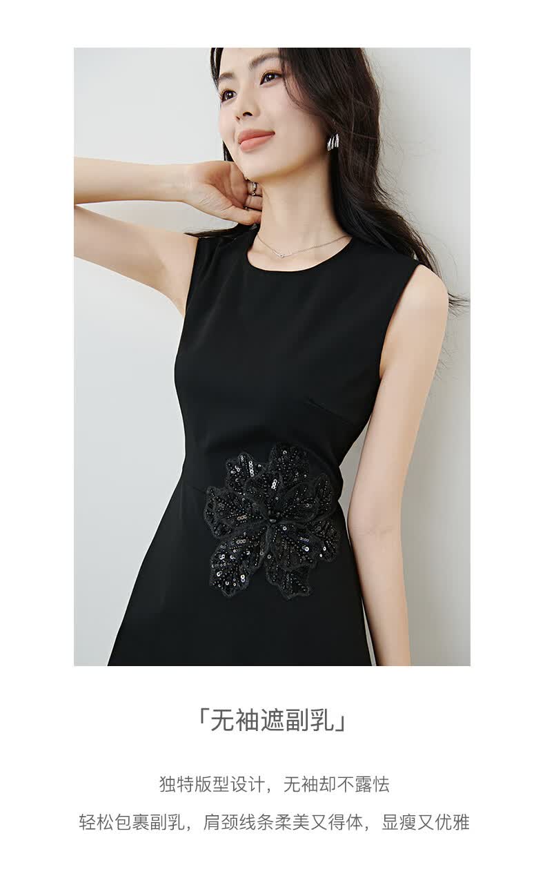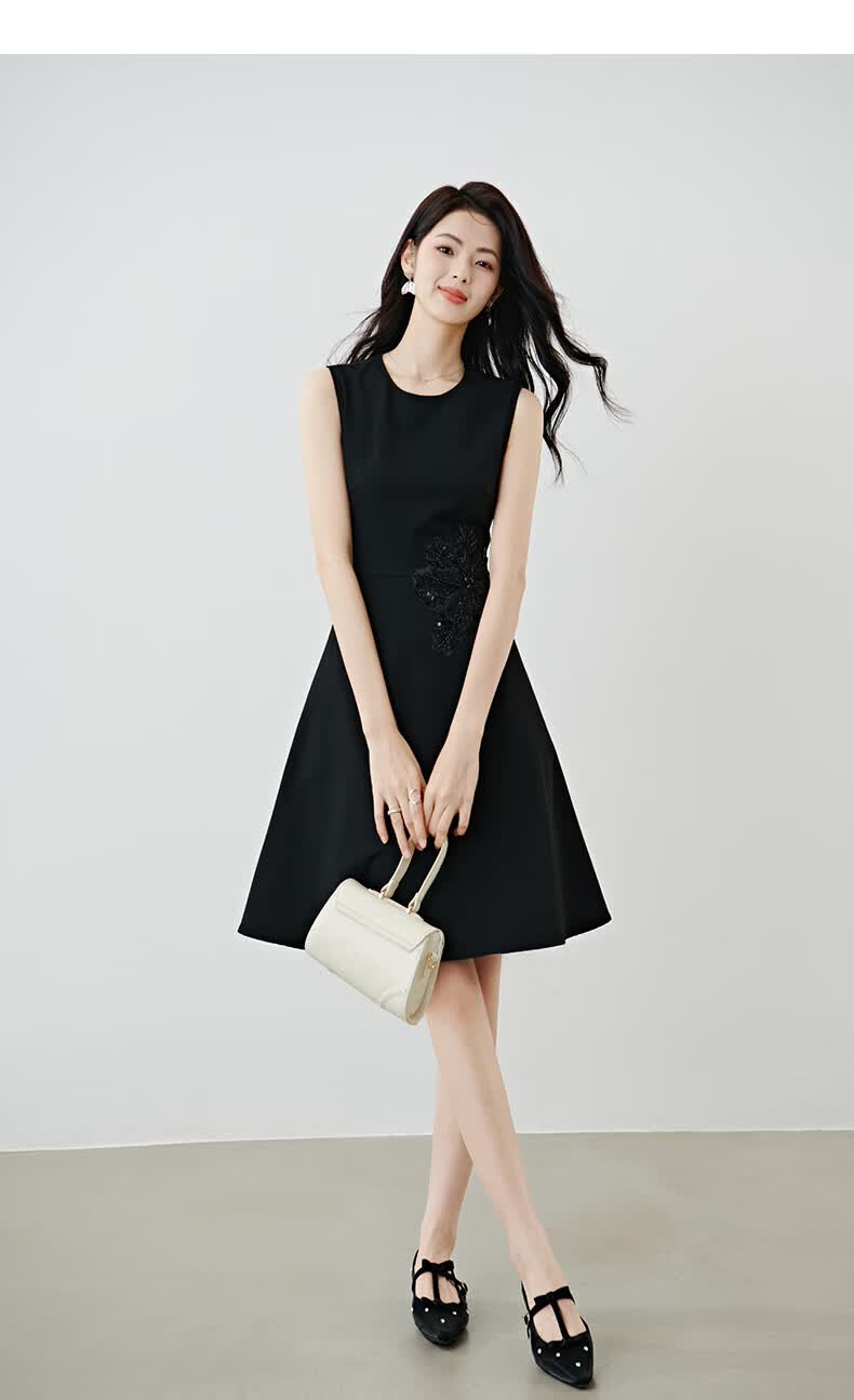 晚白2026春款气质赫本风小个子礼服裙重工绣花钉珠收腰遮肉无袖连衣裙 黑色 M