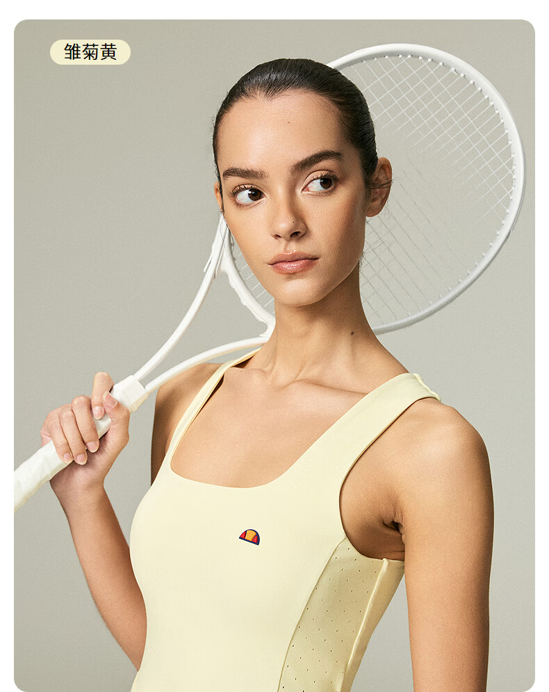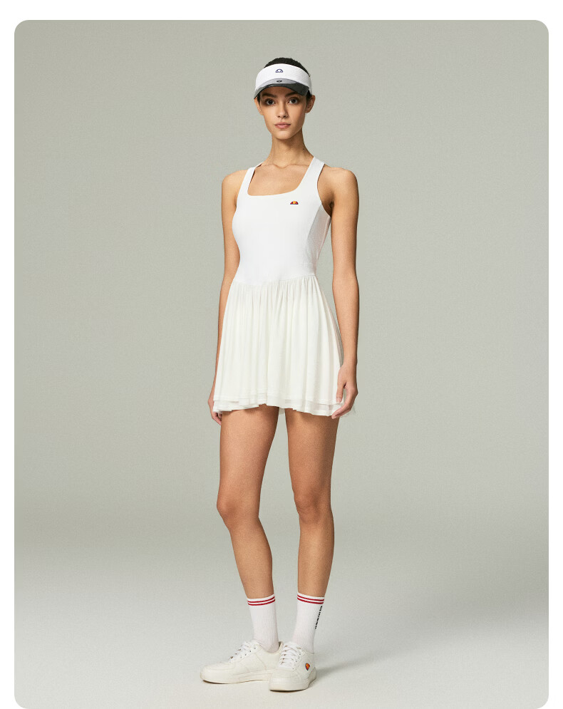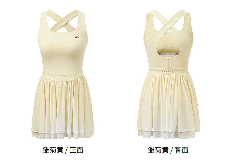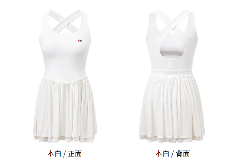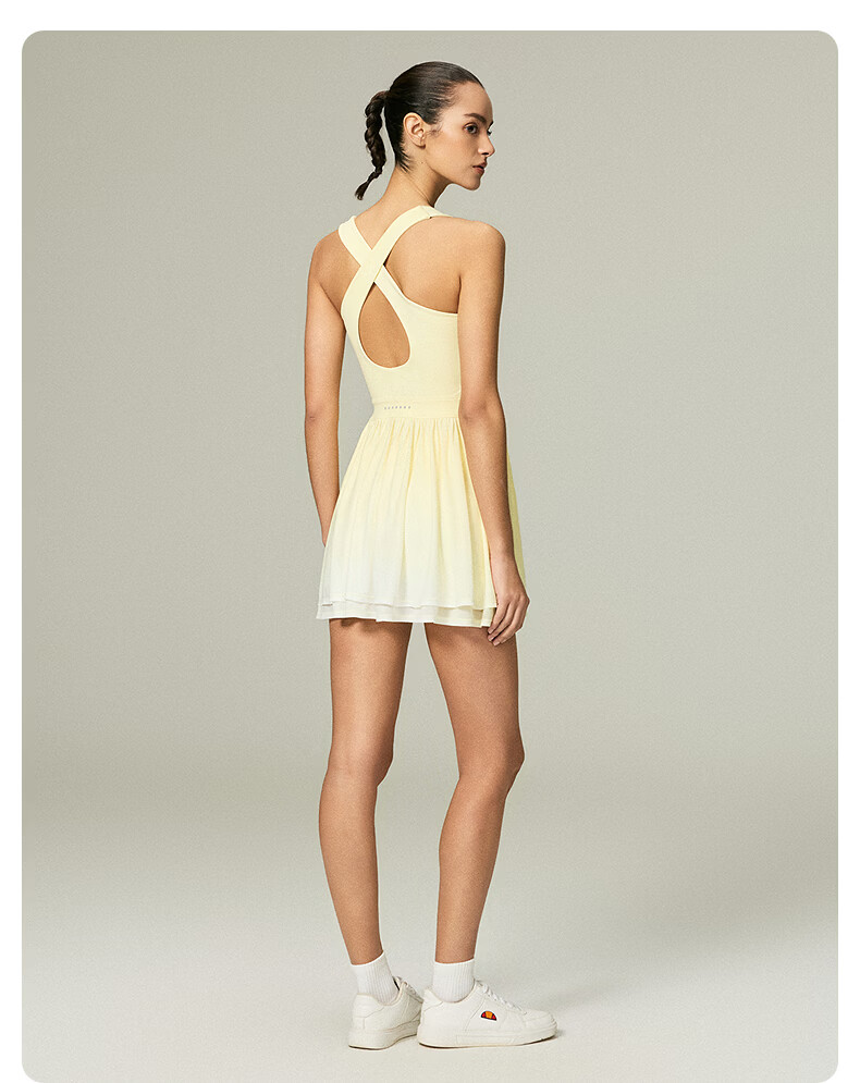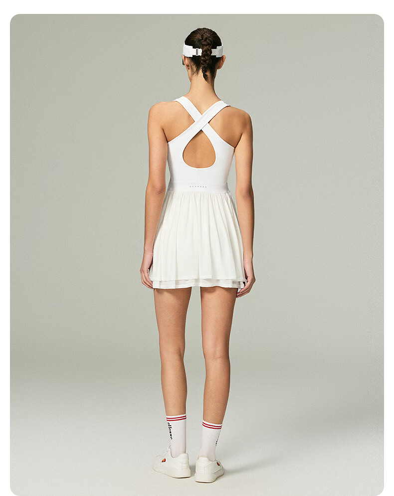 ellesse小贝壳26春新品高弹拼接网纱带胸垫交叉美背吊带连衣裙女 本白 S