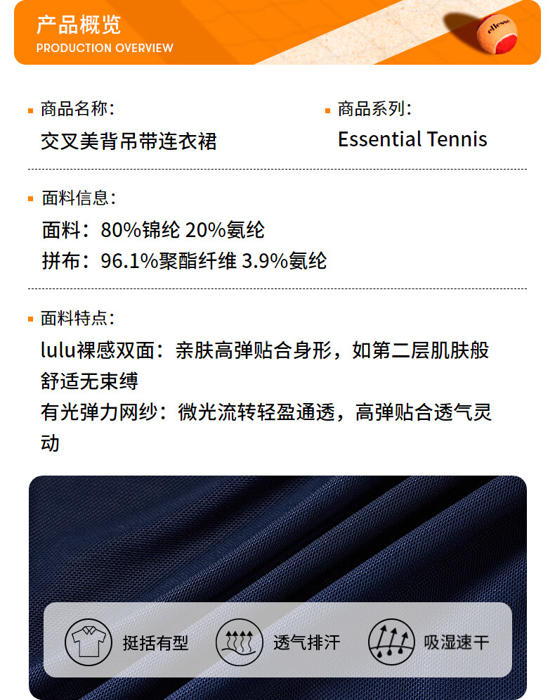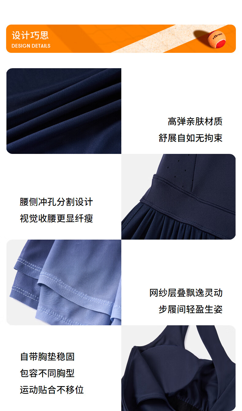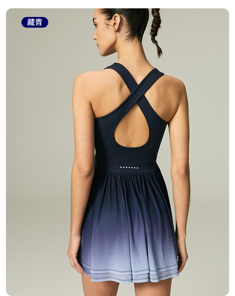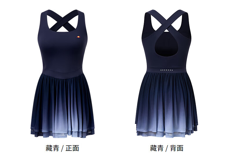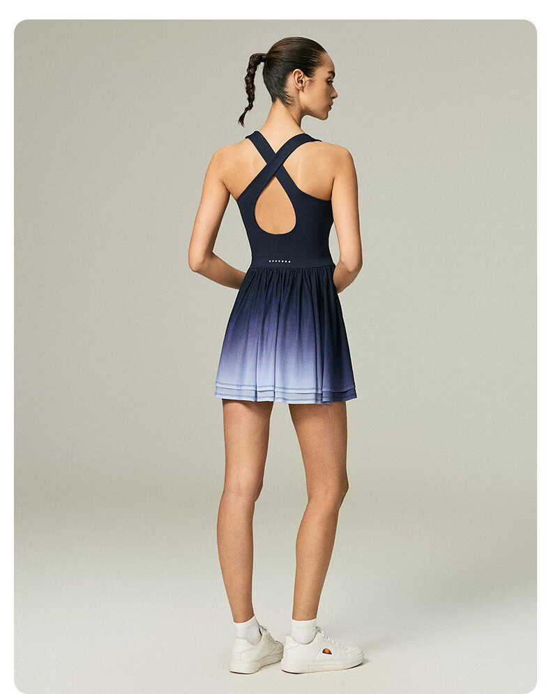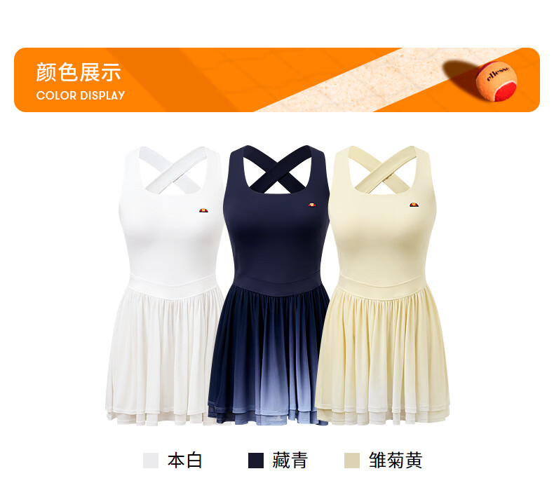 ellesse小贝壳26春新品高弹拼接网纱带胸垫交叉美背吊带连衣裙女 本白 S