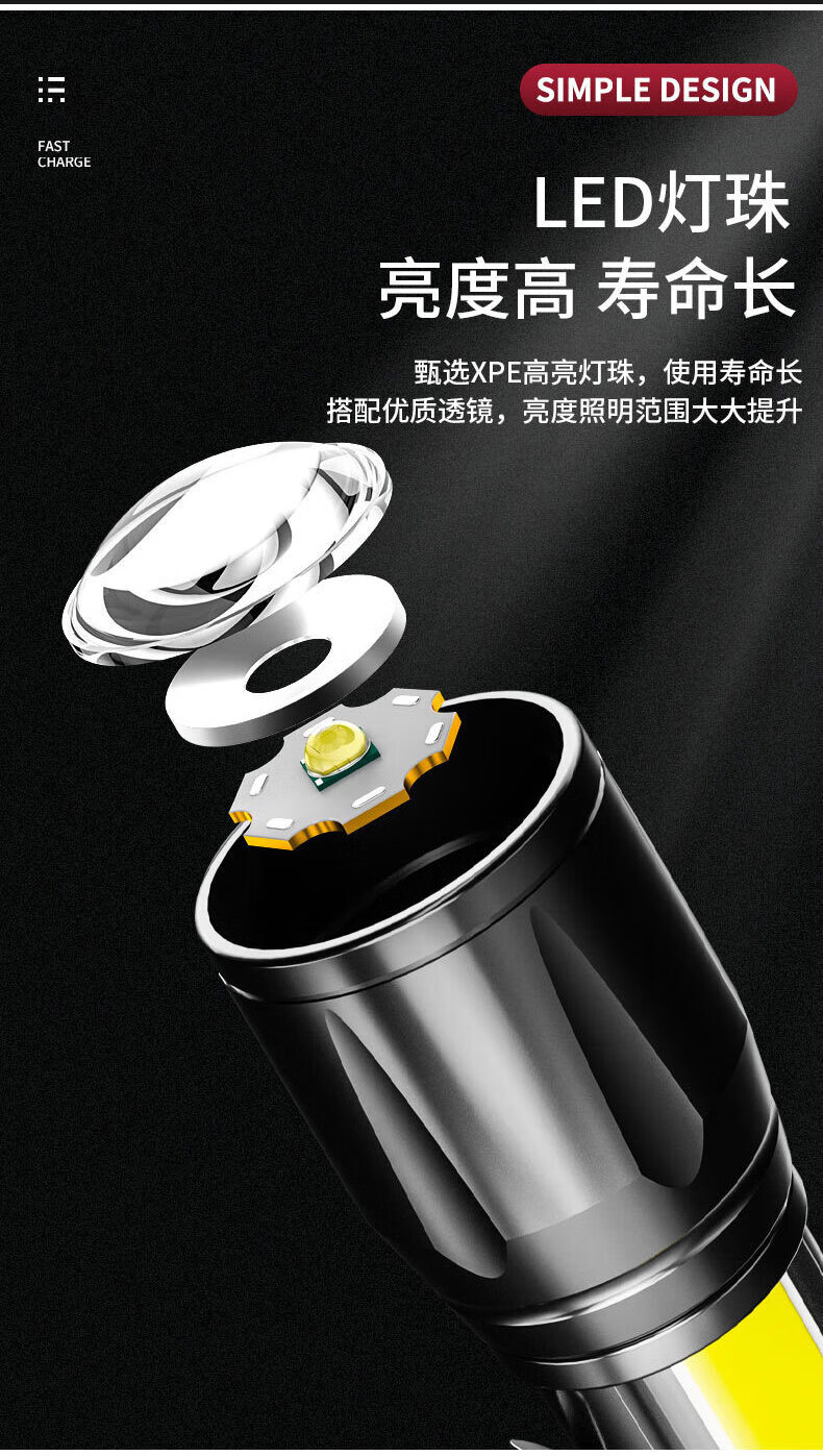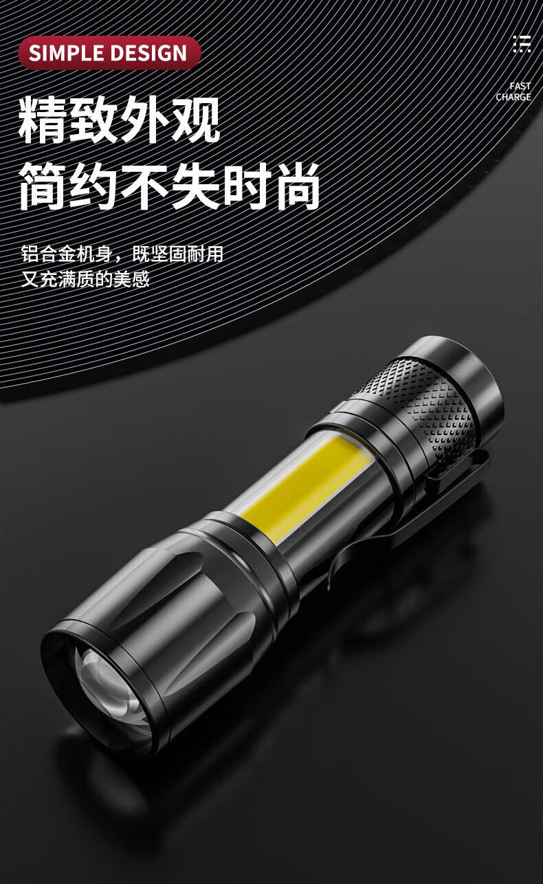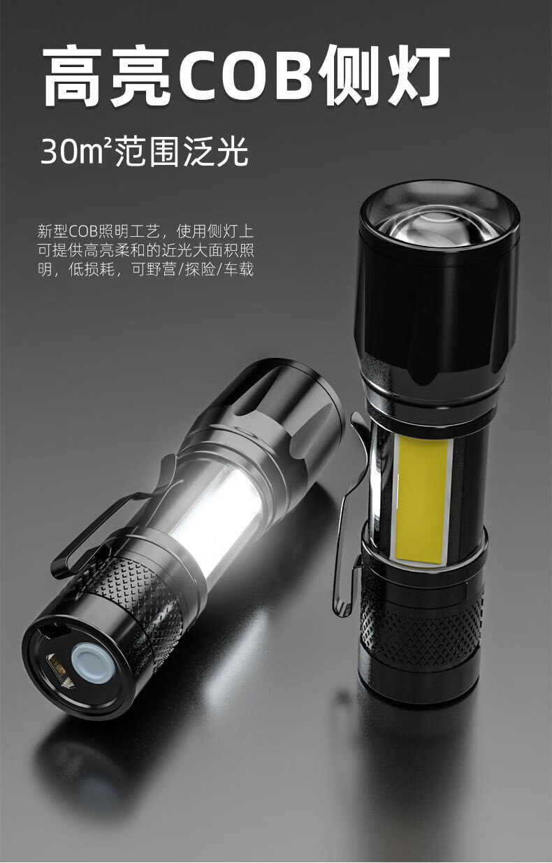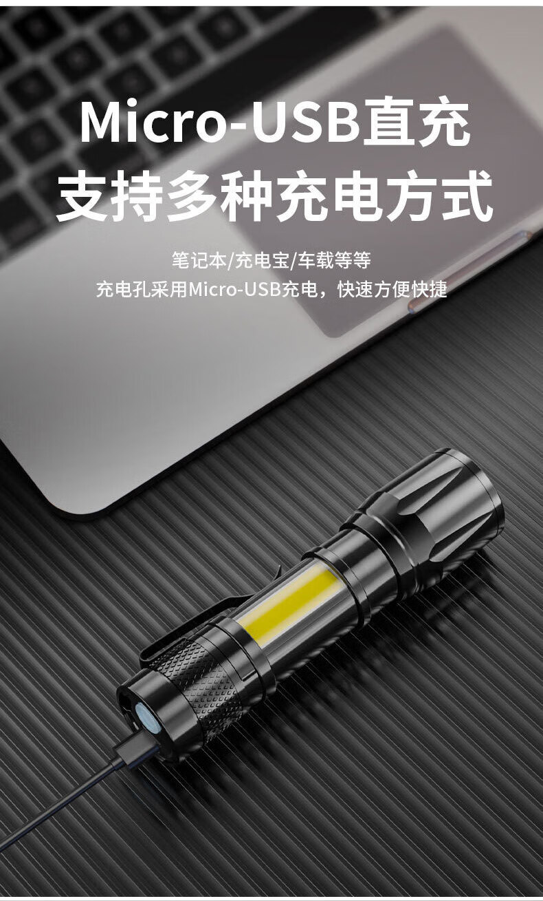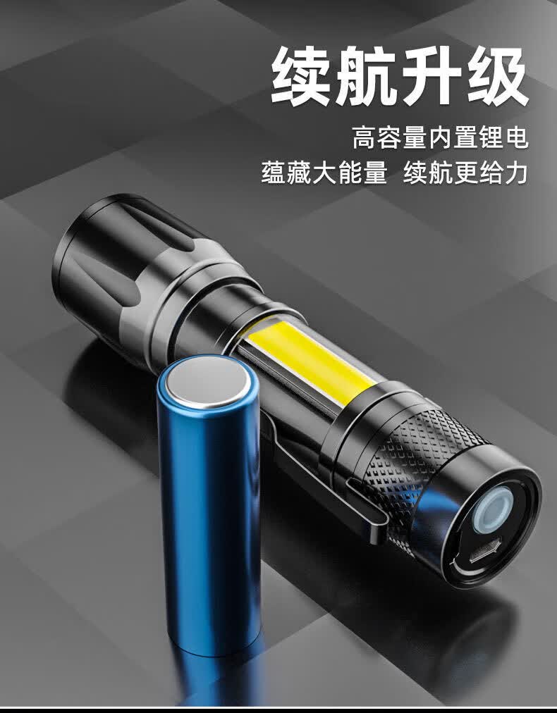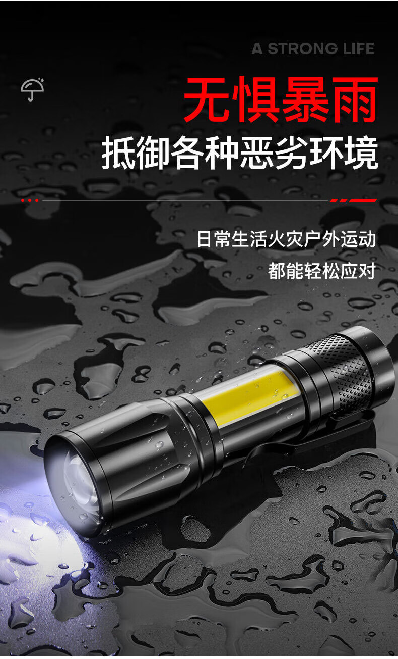 义虎户外强光手电筒usb充电居家户外露营登山照明灯 【400毫安】强光手电筒爆亮款