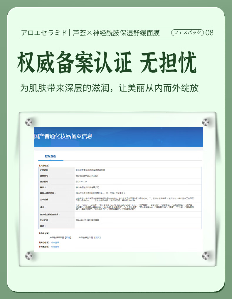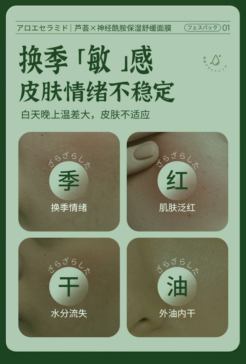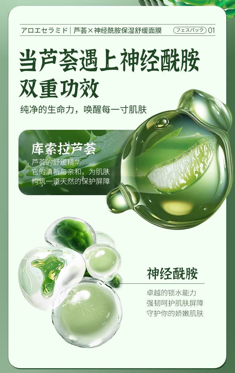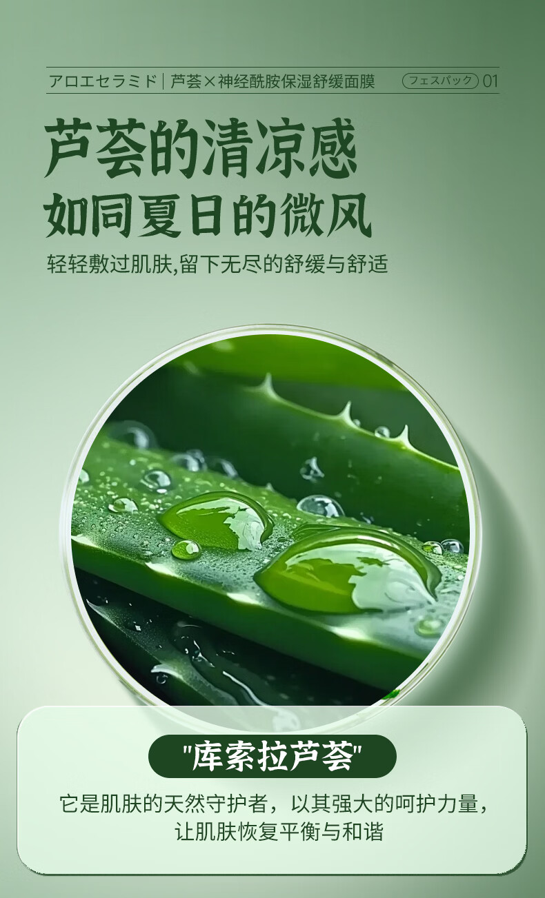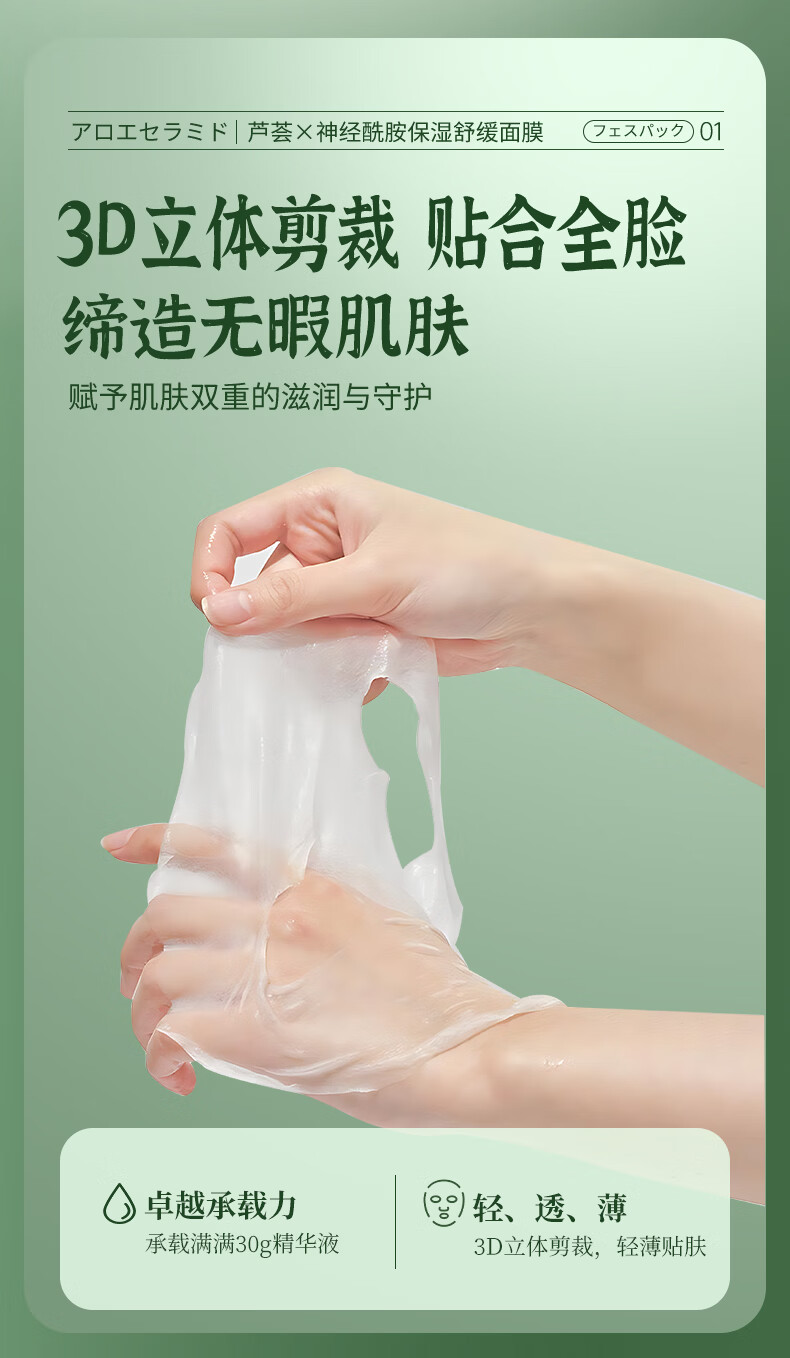 叶仙妍面膜芦荟神经酰胺保湿舒缓肌肤30g片装保湿润泽面膜 30g*5片