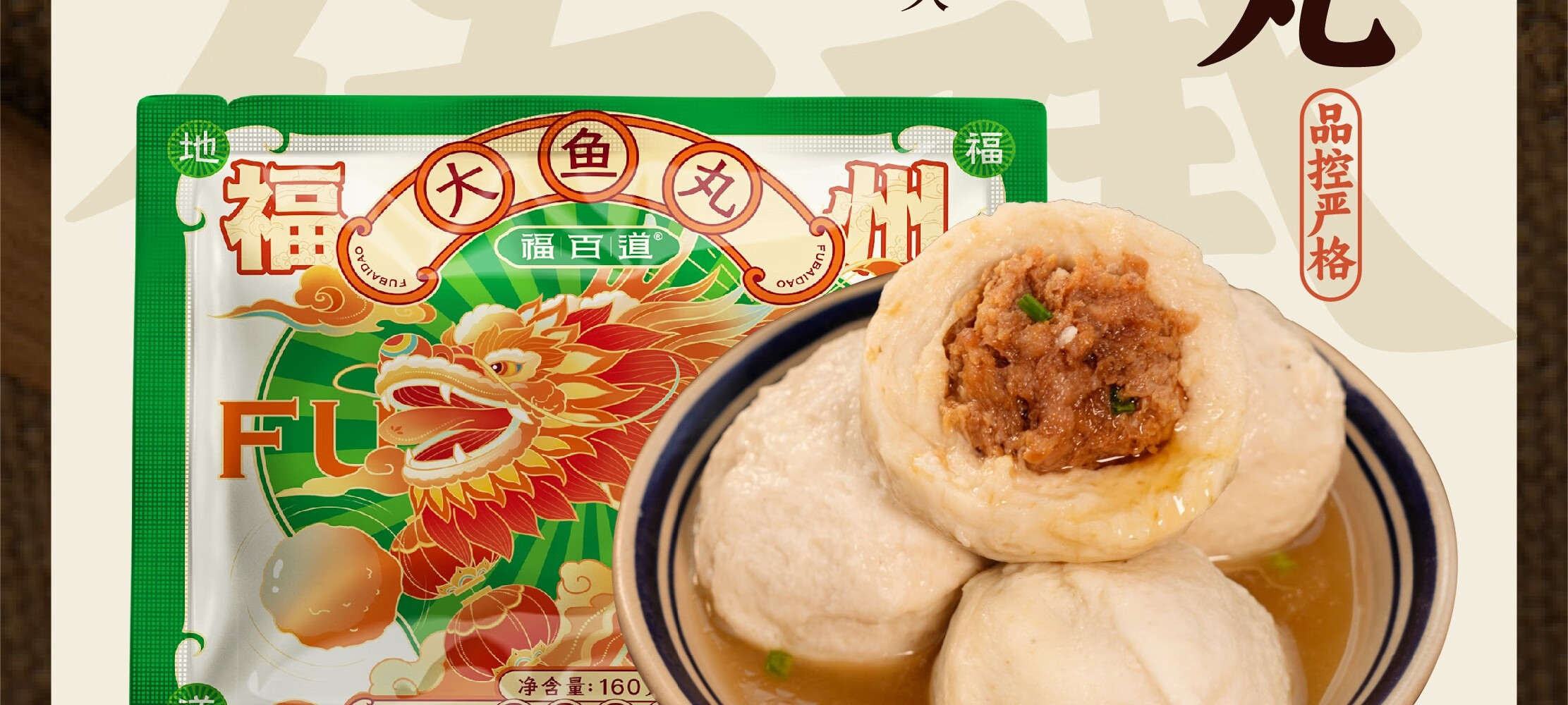 福百道【正宗大鱼丸】福州特产美食包心大鱼丸鱼圆等煮汤火锅冷冻 (福州大鱼丸160g*10袋)1600g