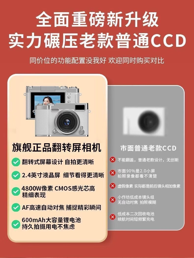 锁场ccd照相机翻转屏数码相机学生自拍旅游专用生日礼物女生入门微单校园ccd 极光白【翻转屏+16X变焦+录像】 512G内存【可拍20W张+豪华礼包】