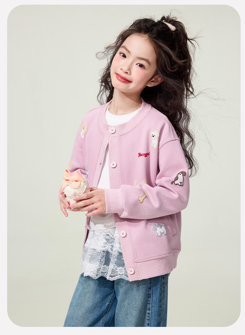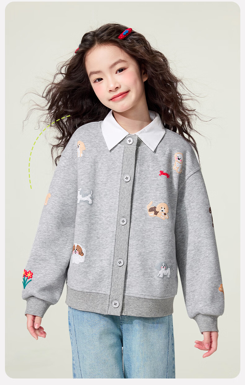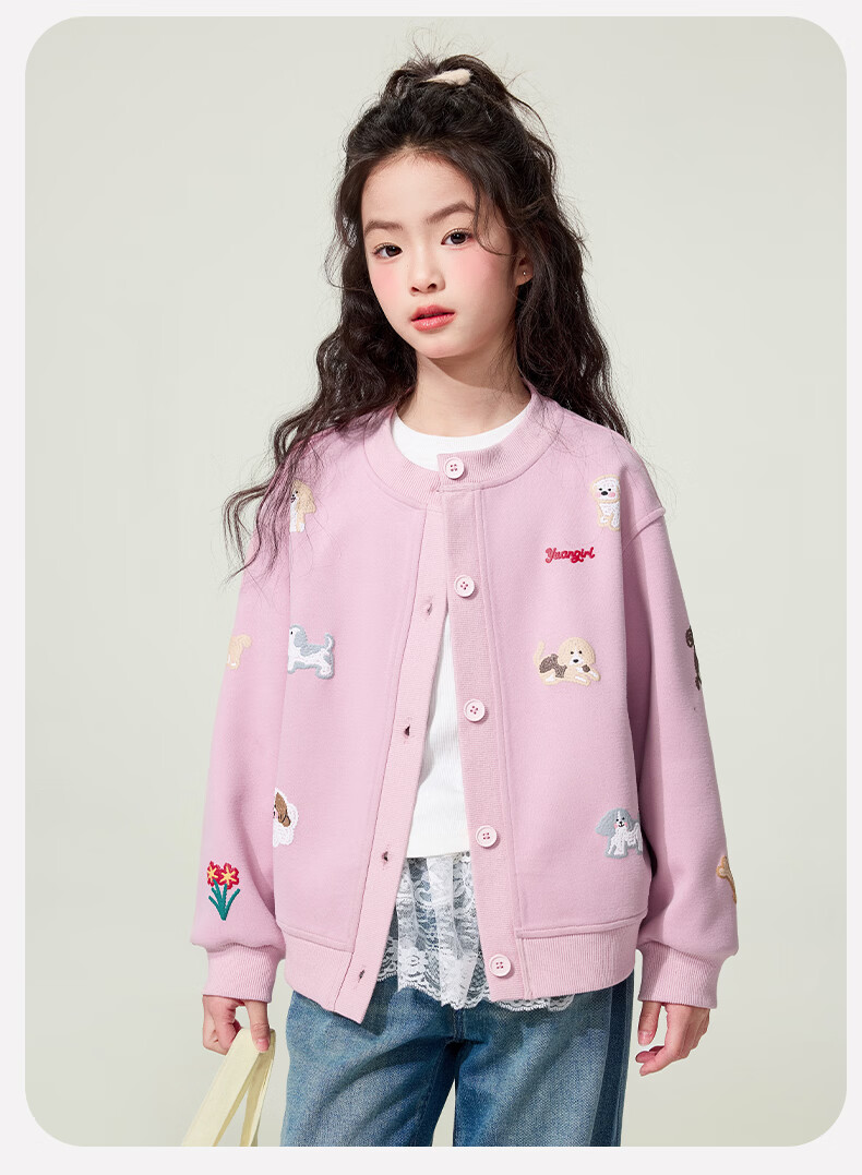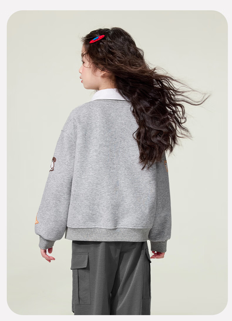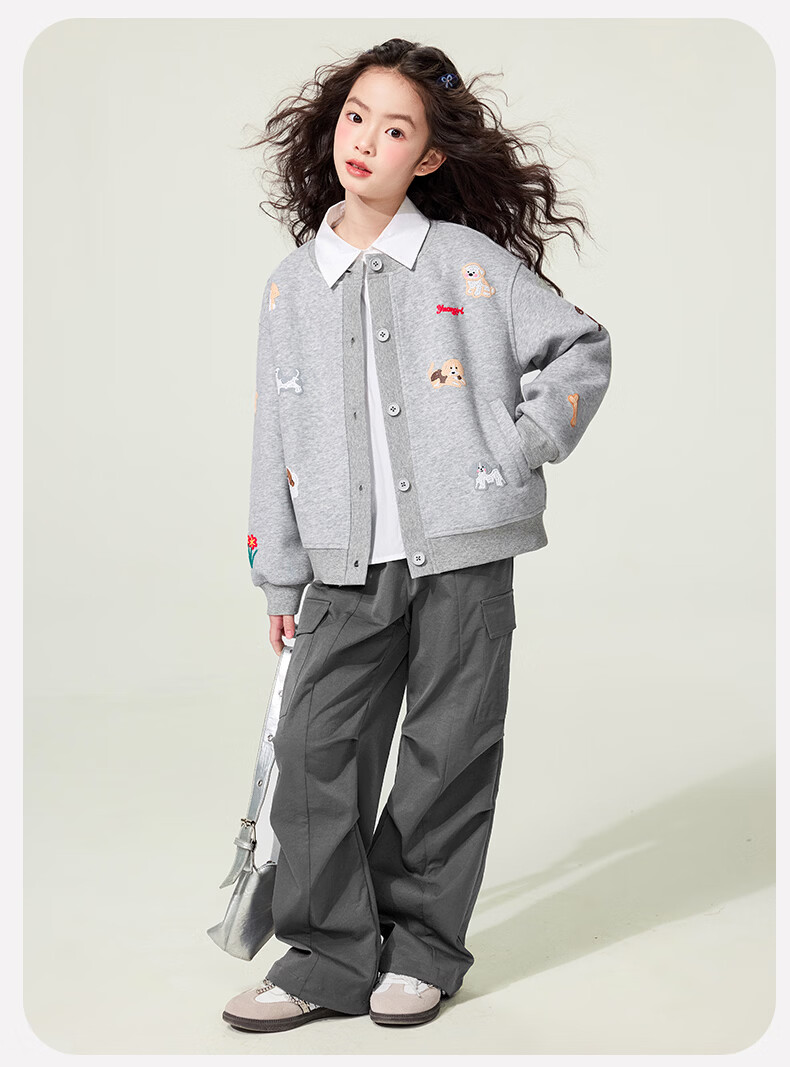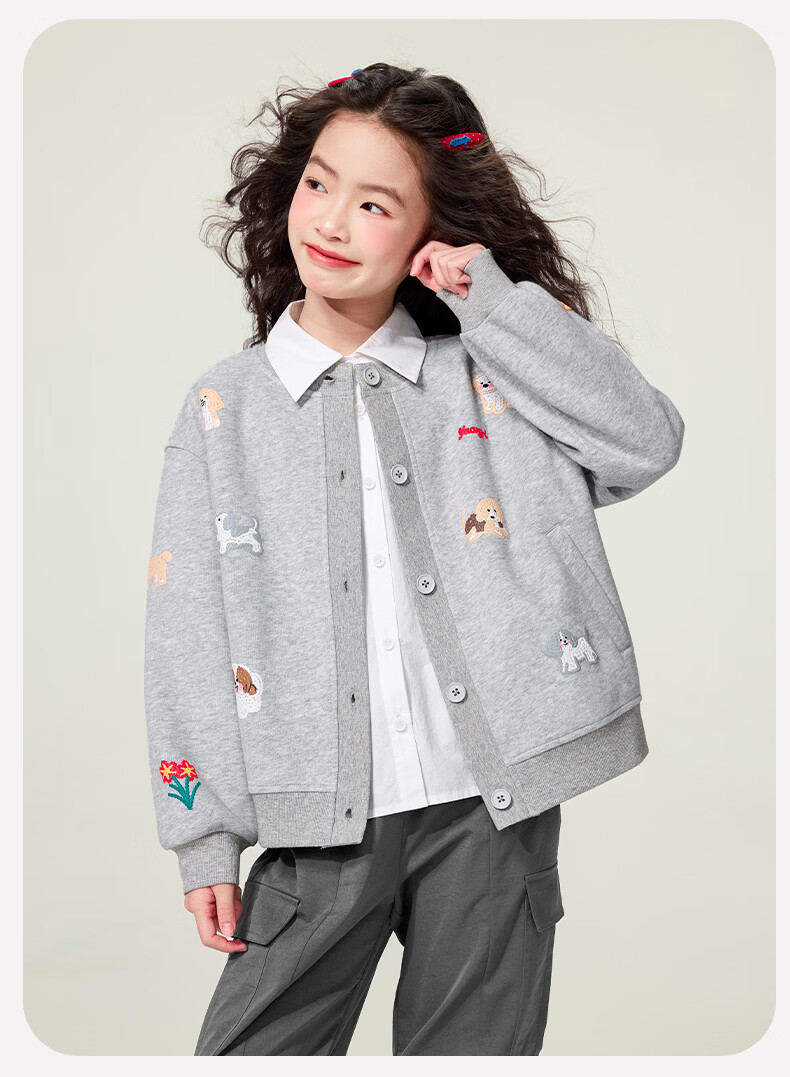 媛媛公主童装女童外套卡通开衫2026新款儿童春装印花上衣中大童棒球服 花灰色 110
