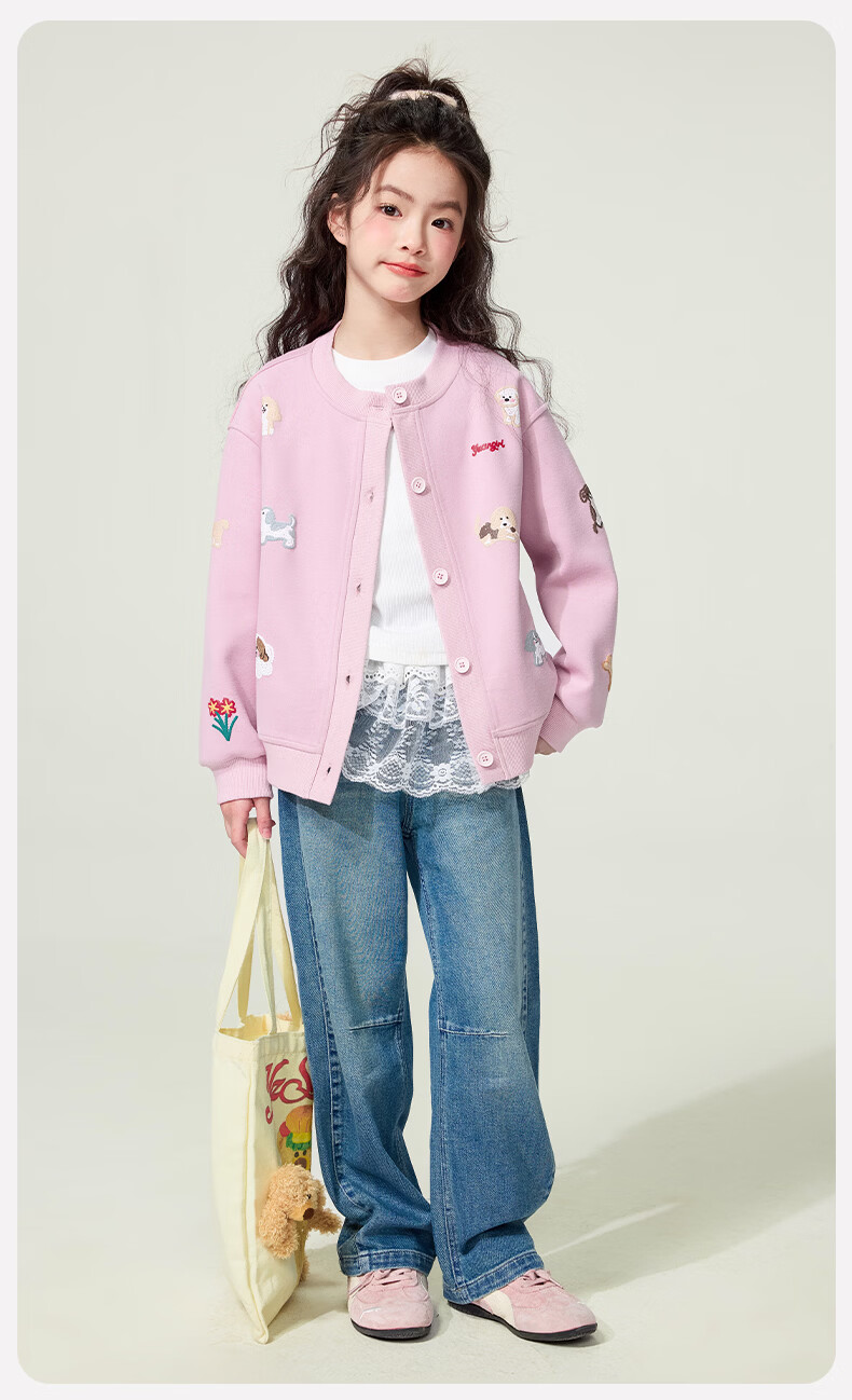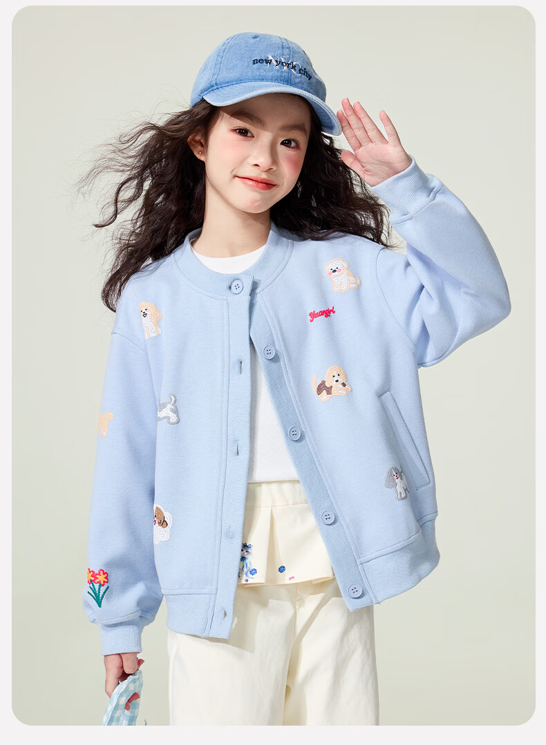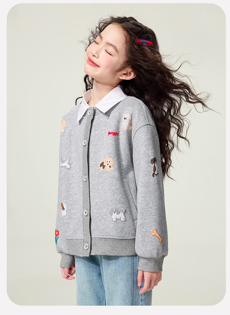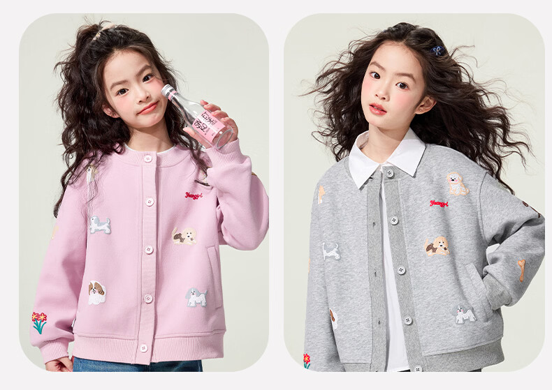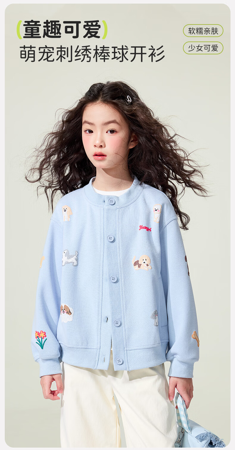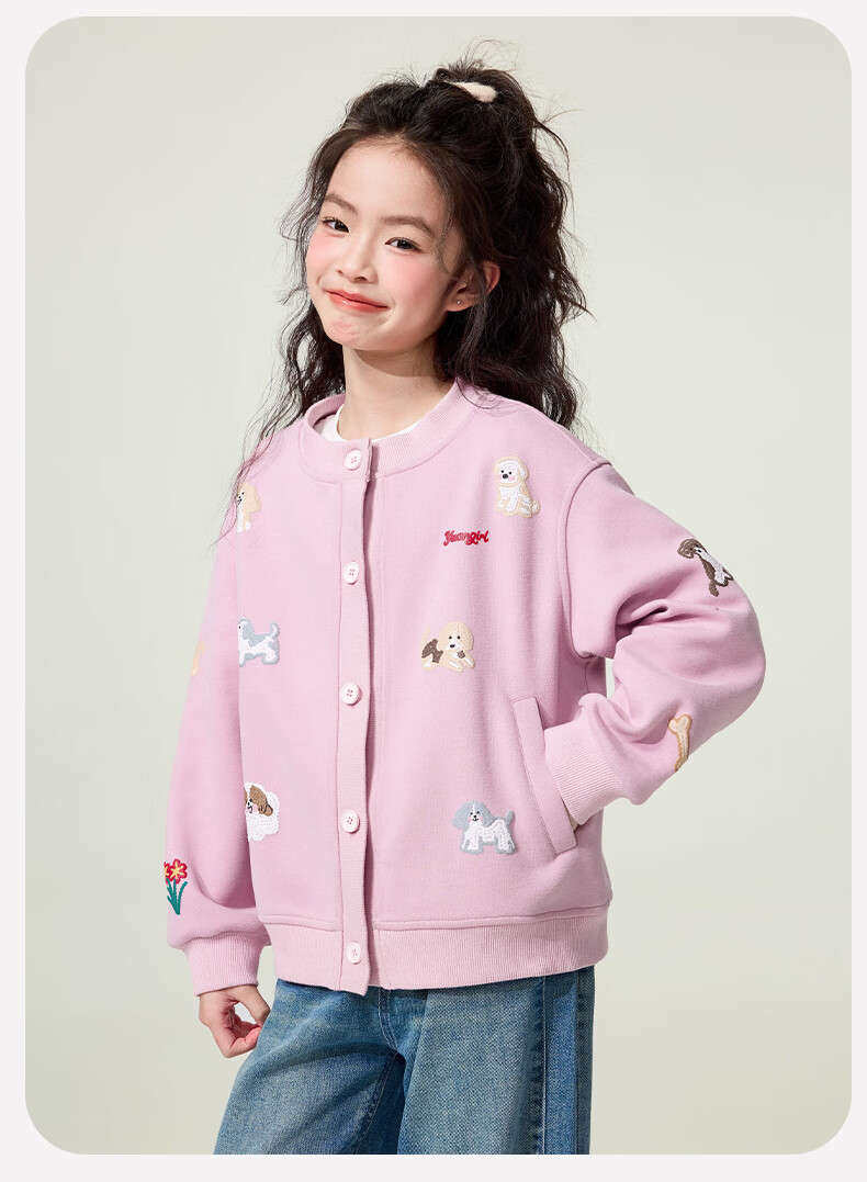 媛媛公主童装女童外套卡通开衫2026新款儿童春装印花上衣中大童棒球服 花灰色 110