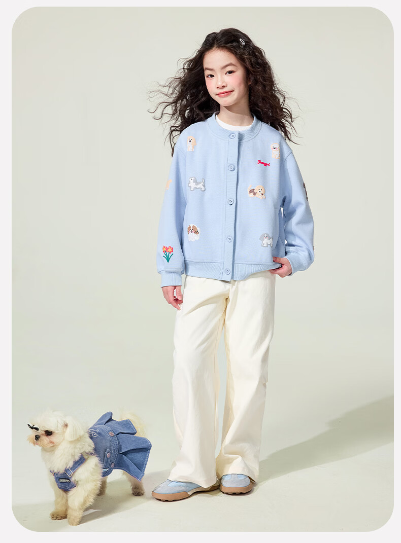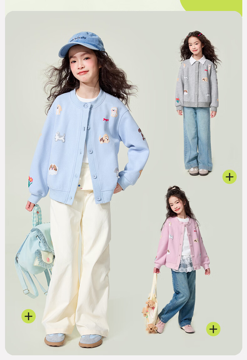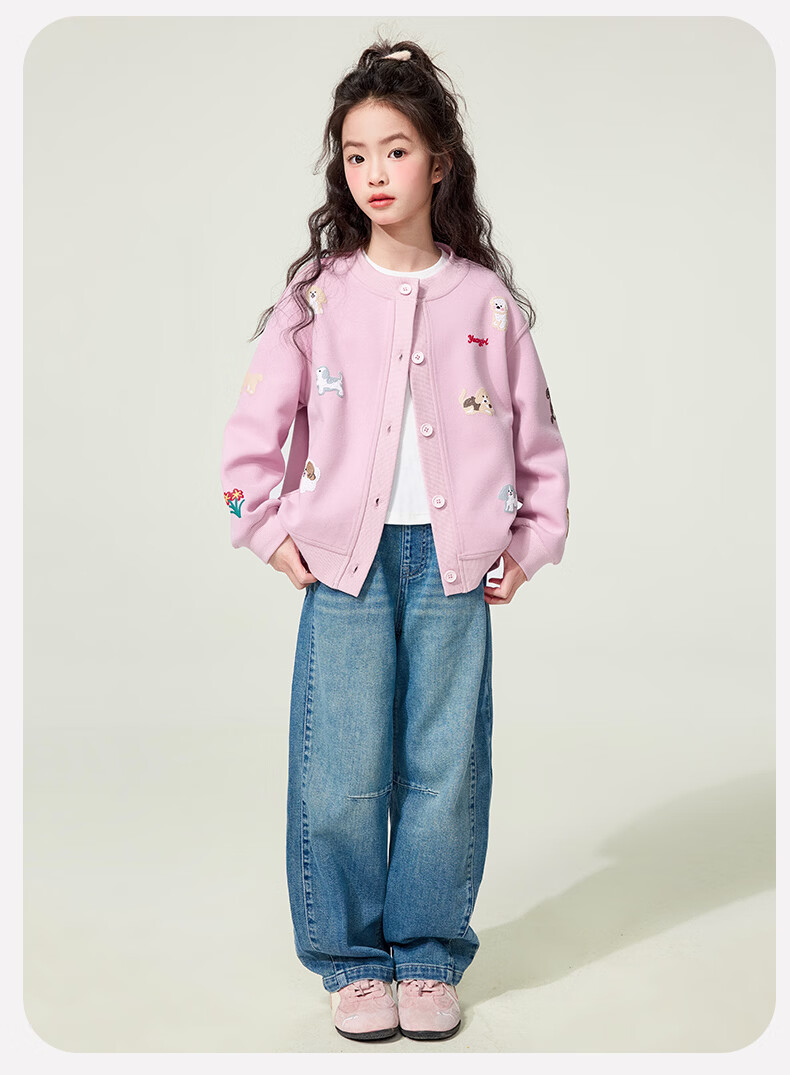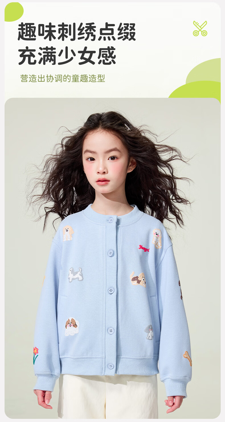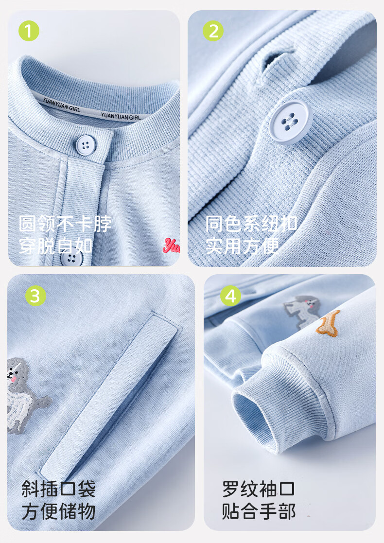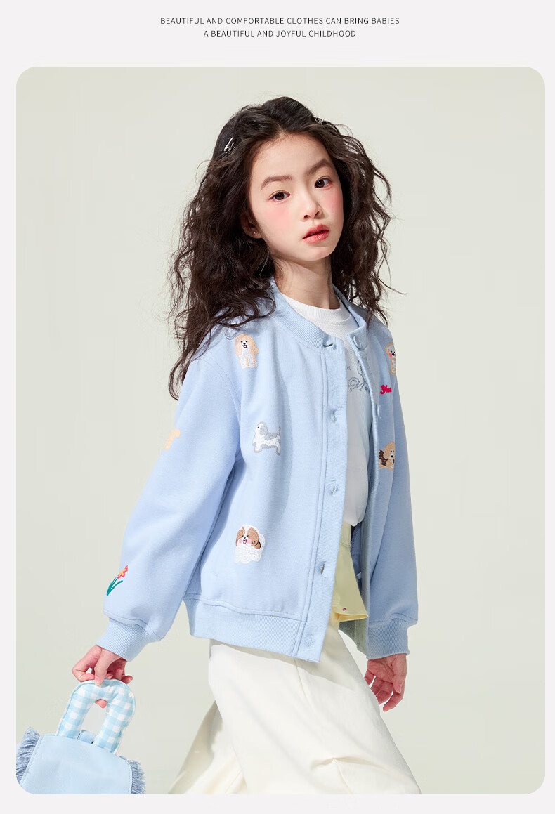 媛媛公主童装女童外套卡通开衫2026新款儿童春装印花上衣中大童棒球服 花灰色 110