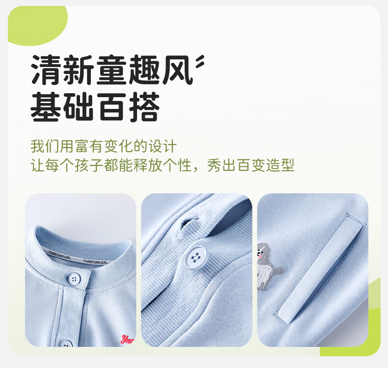 栀了成长记女童装新中式刺绣套装2026春季儿童新款国风撞色两件套 蓝色 两件套 110 cm