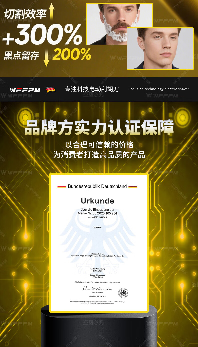 WFFPM德国品牌三刀头往复式电动剃须刀2026新款男士刮胡刀全身水洗胡须刀送老公男朋友纪念日生日礼物 绅士黑 【精美礼盒装】 剃须刀热卖第一 德国高端纪念日礼物男士礼物生日礼物