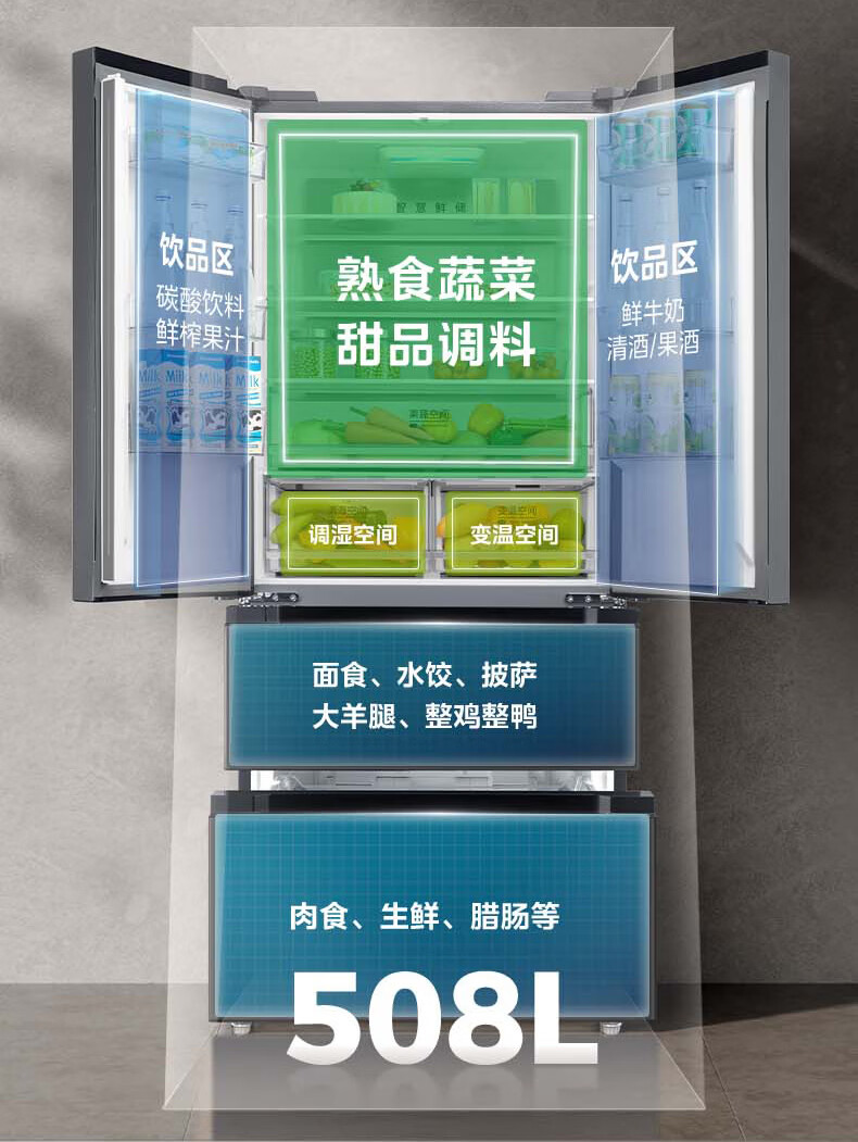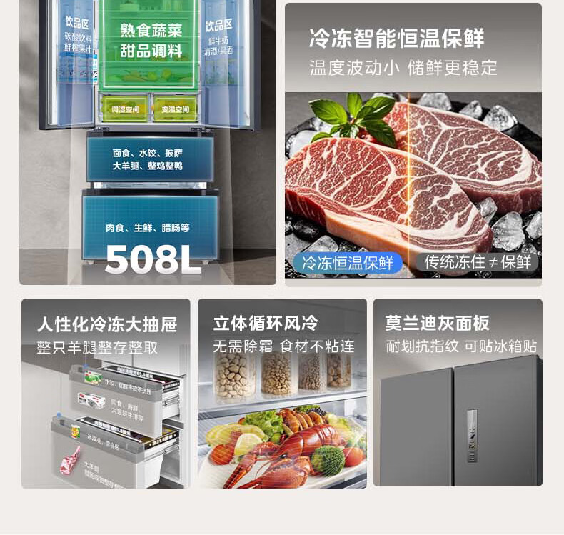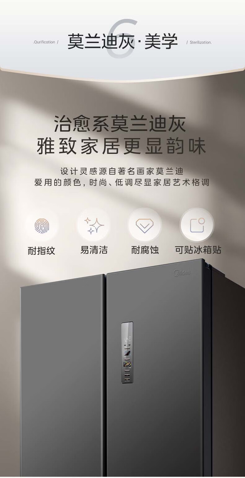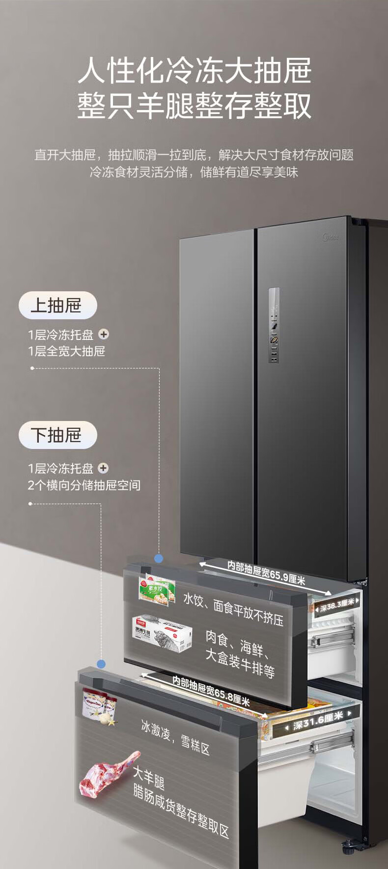 美的(Midea)508L法式四开门冰箱双系统循环一级能效除菌净味风冷无霜大容量以旧换新BCD-508WTPZM(E) 国家补贴