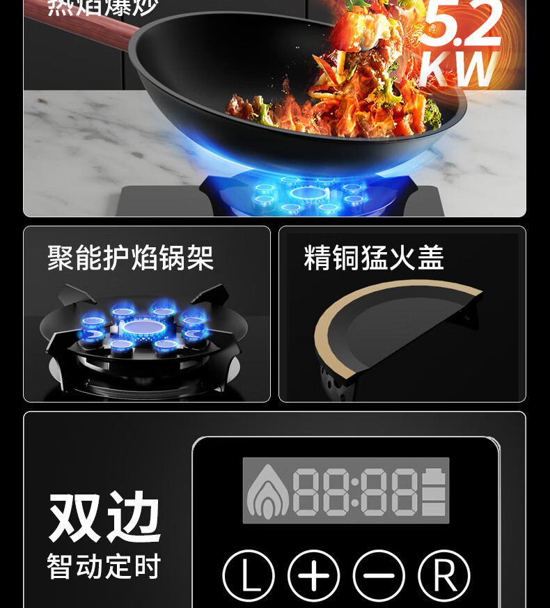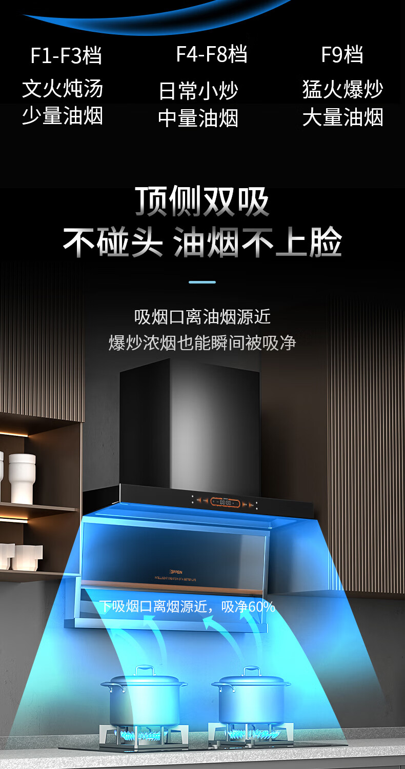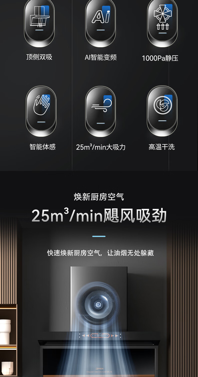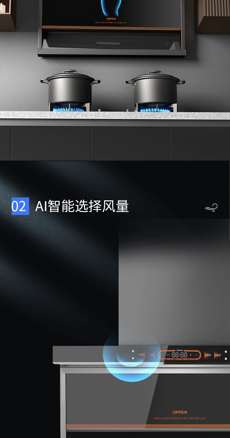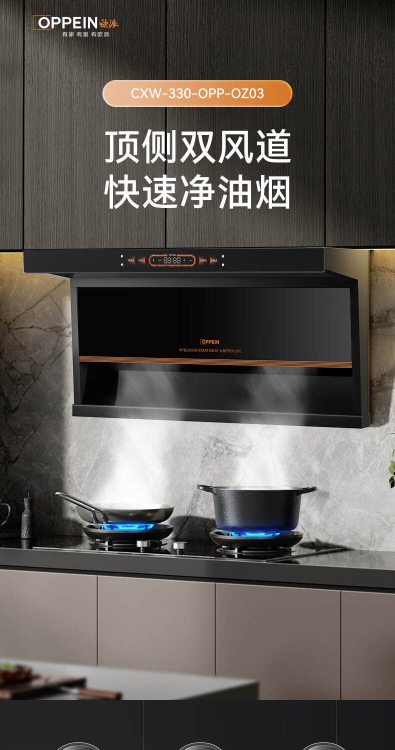 欧派(OPPEIN)家用抽油烟机烟灶套装三件套顶侧双吸变频烟灶套装烟机灶具厨房油烟机灶具套装 【烟灶联动两件套】5.2kw旋火-天然气