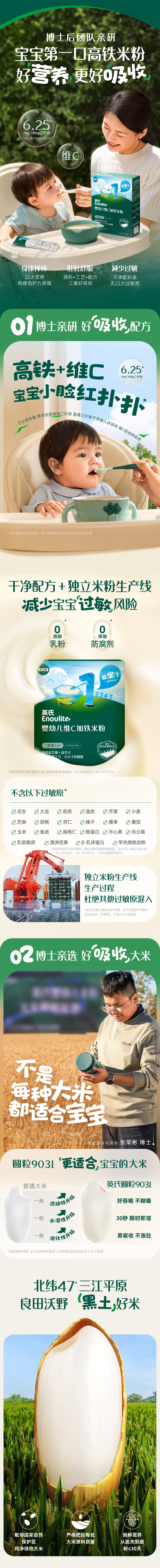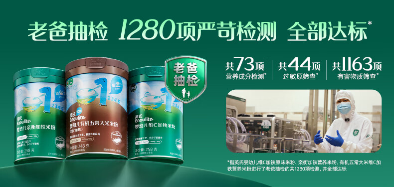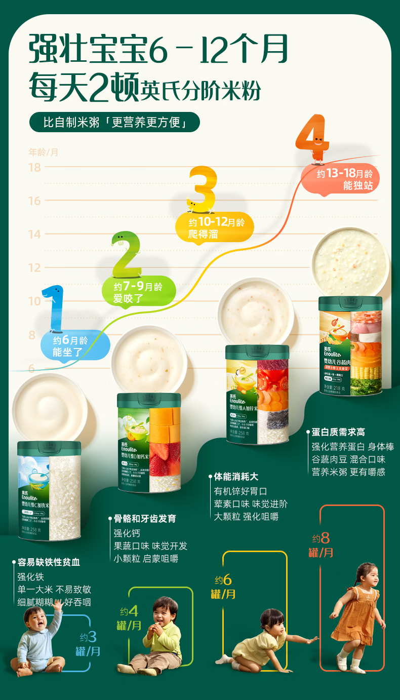 英氏(Engnice)婴幼儿米粉米糊高铁 6个月宝宝强化铁米粉营养辅食 1阶维C加铁135g+ 30g*1盒