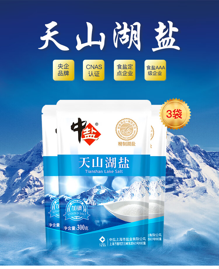 中盐 天山湖盐300g*3【加碘】食盐 组合装