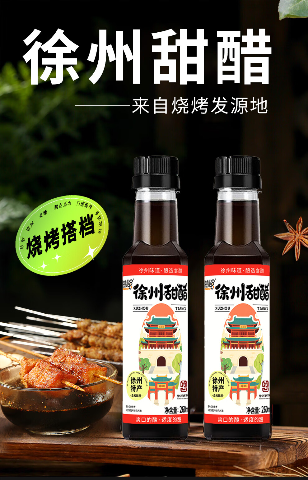 快挑食徐州烧烤甜醋烧烤醋汁蘸料纯米醋凉拌汁甜醋汁凉拌菜调味酿造食醋 260mlx2瓶 1份