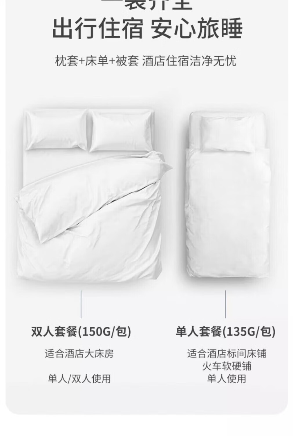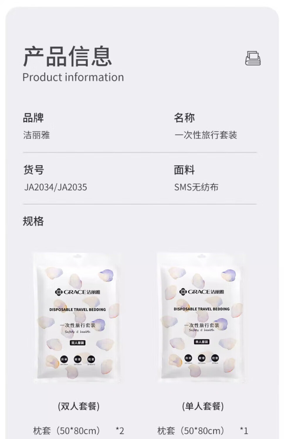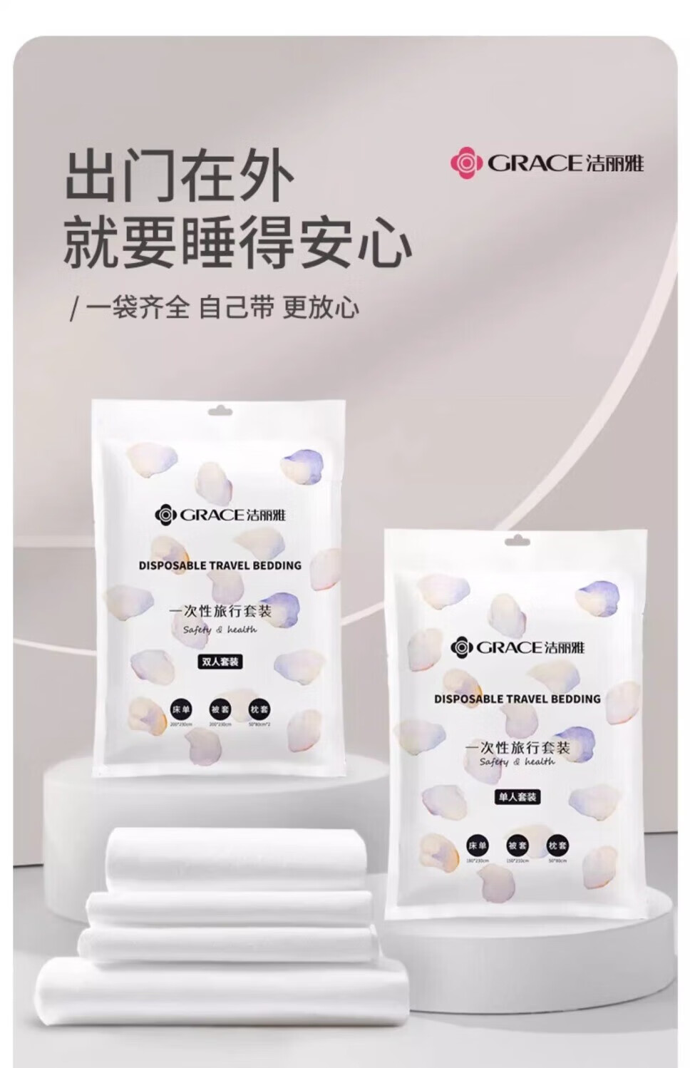 洁丽雅(grace)洁丽雅旅行一次性浴巾床单被套枕套旅游酒店隔脏 真空包装【旅行双人套装】1包装