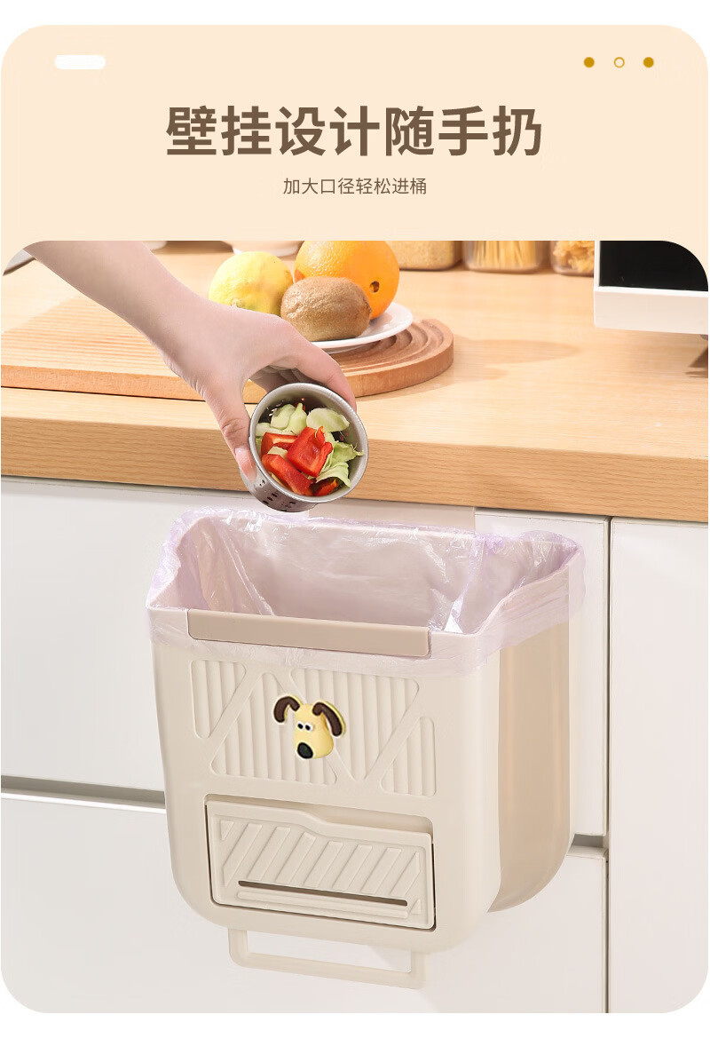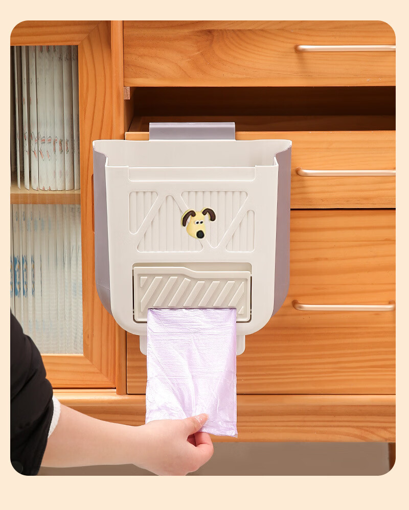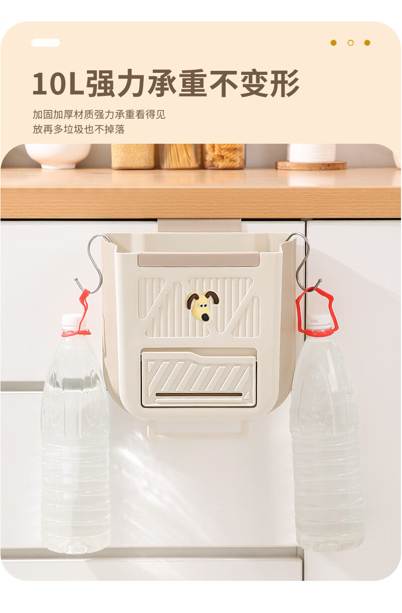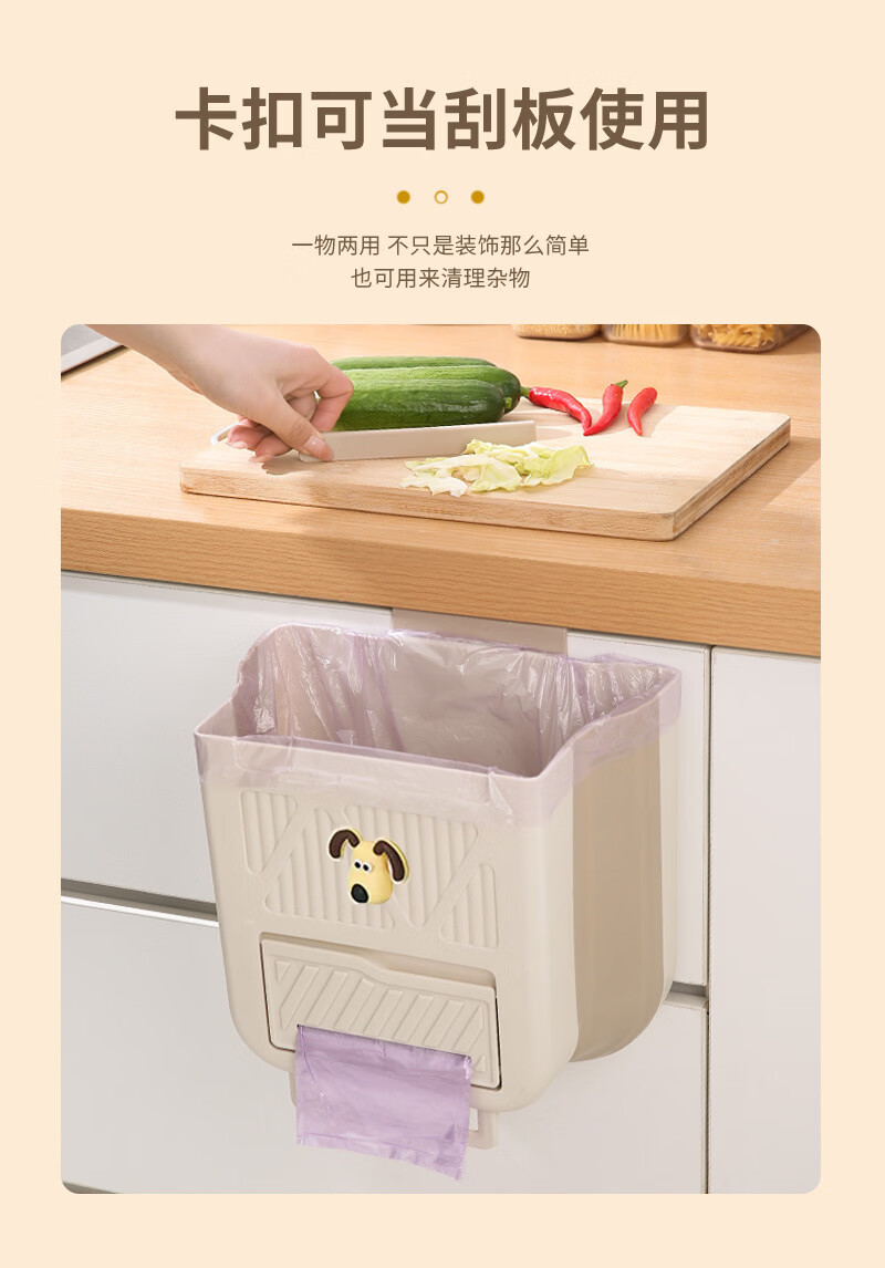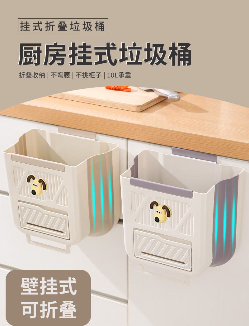 纳有风奶油风挂壁收纳桶加厚可折叠大容量收纳筐家用厨房收纳盒 厨房挂式垃圾桶【中号 送卡通贴】颜色随机*1