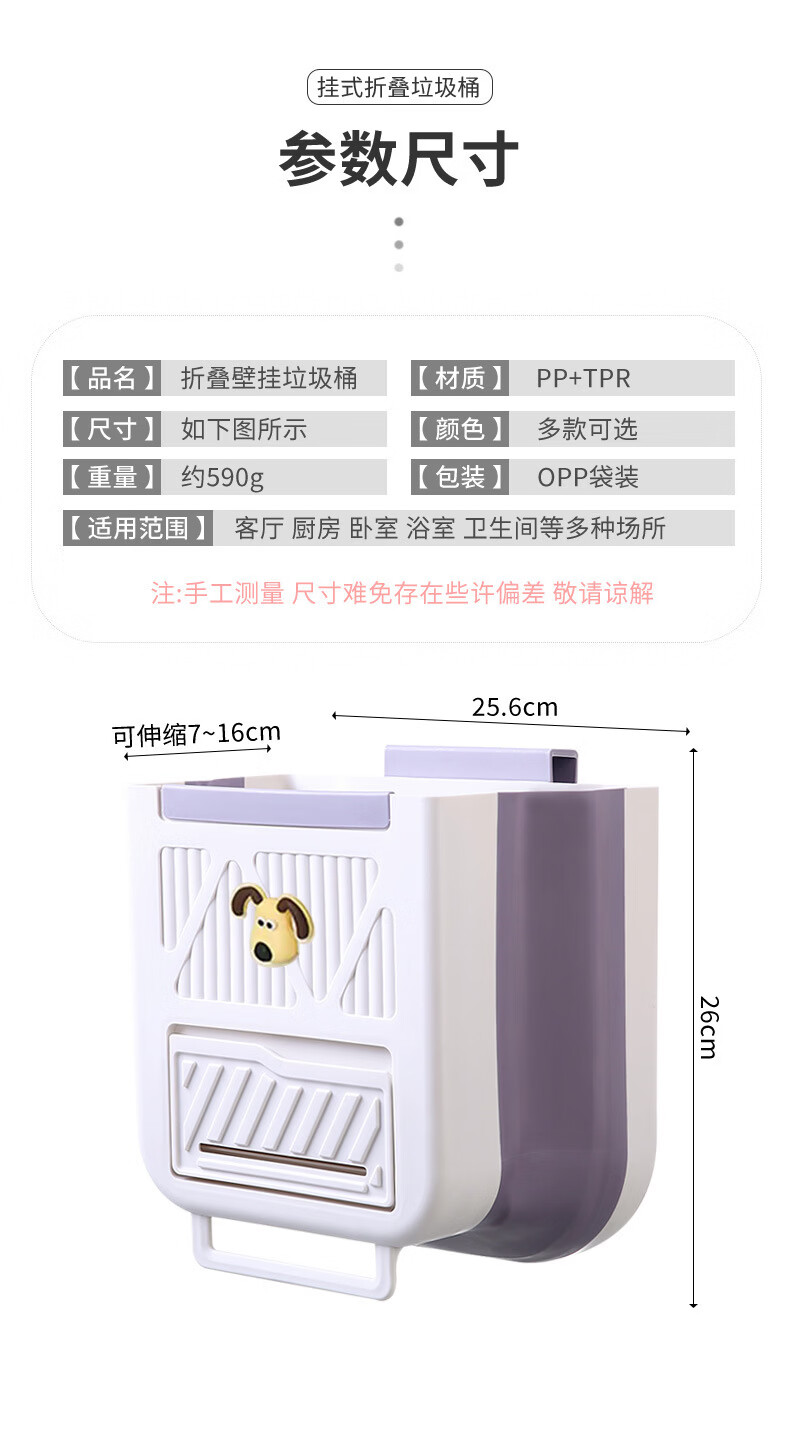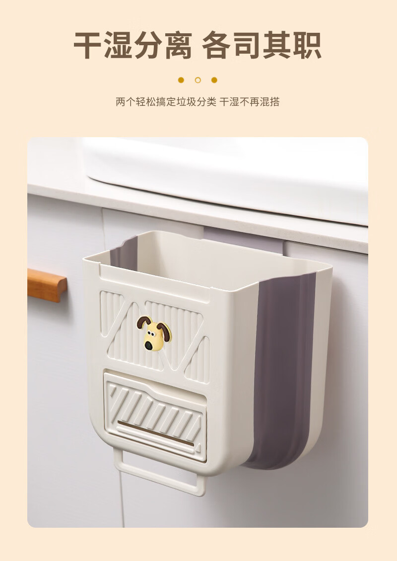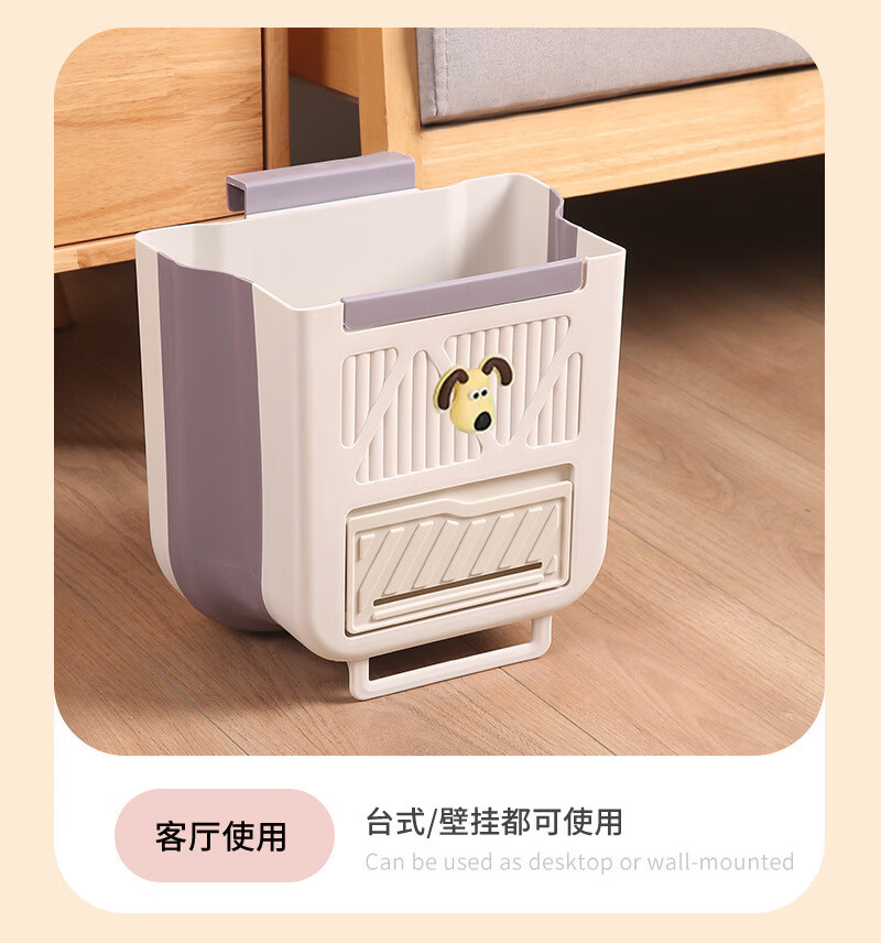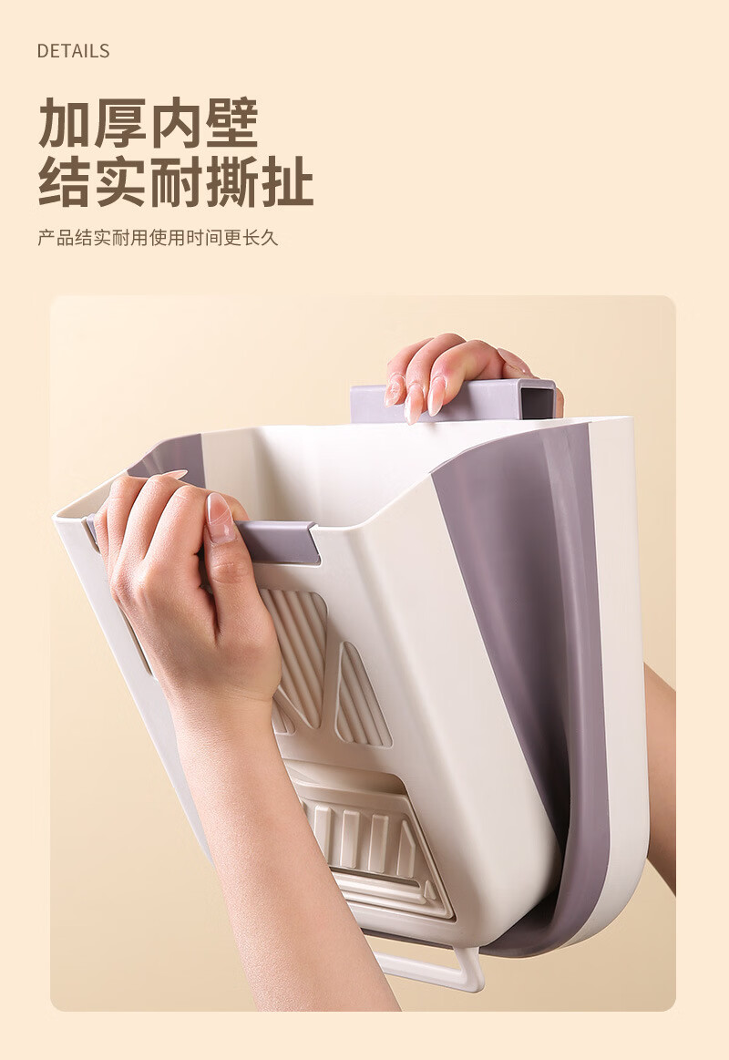 纳有风奶油风挂壁收纳桶加厚可折叠大容量收纳筐家用厨房收纳盒 厨房挂式垃圾桶【中号 送卡通贴】颜色随机*1