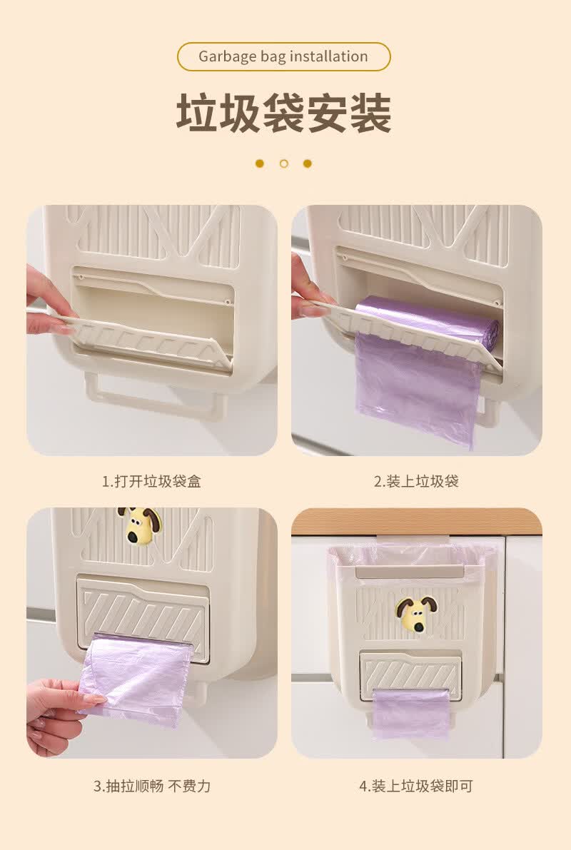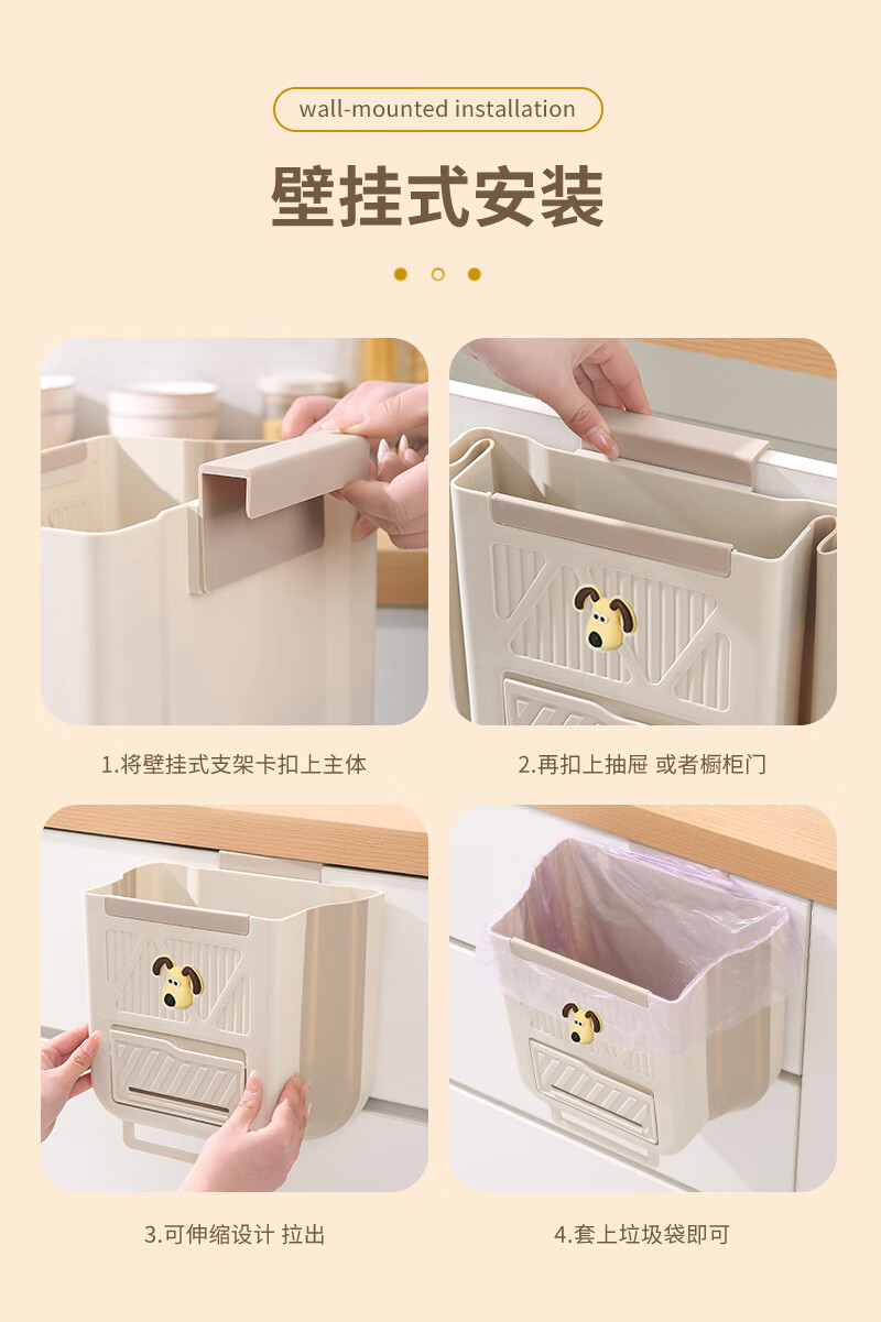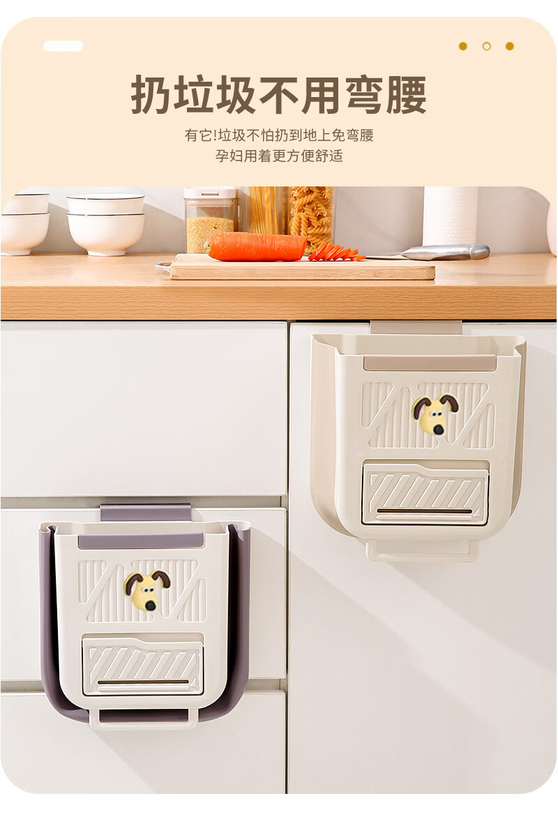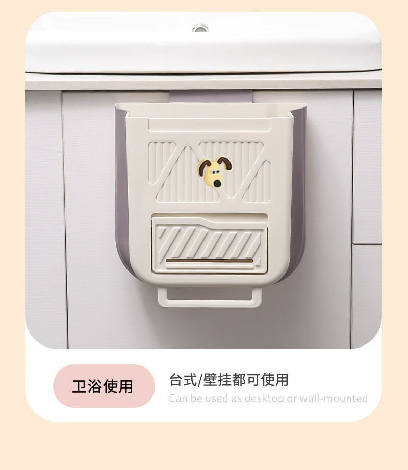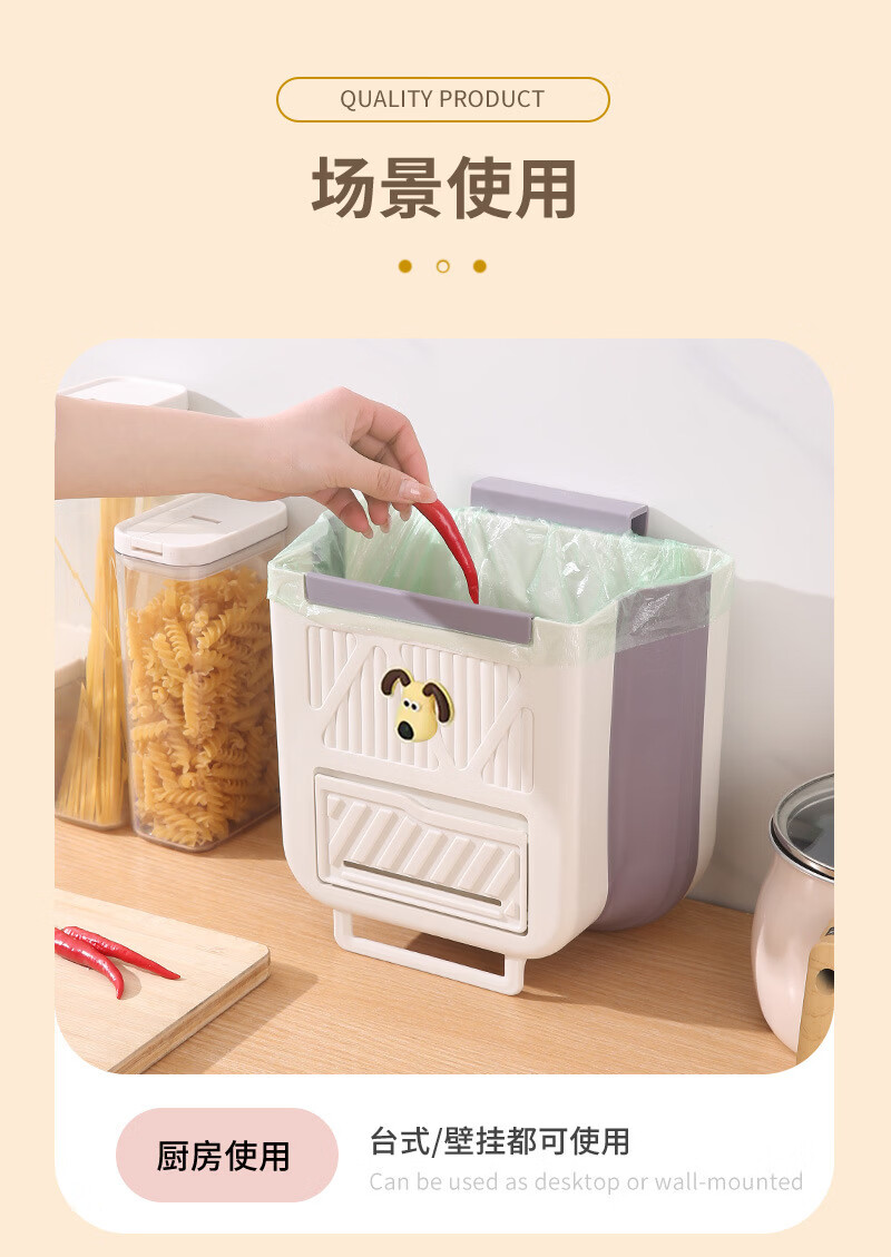 纳有风奶油风挂壁收纳桶加厚可折叠大容量收纳筐家用厨房收纳盒 厨房挂式垃圾桶【中号 送卡通贴】颜色随机*1