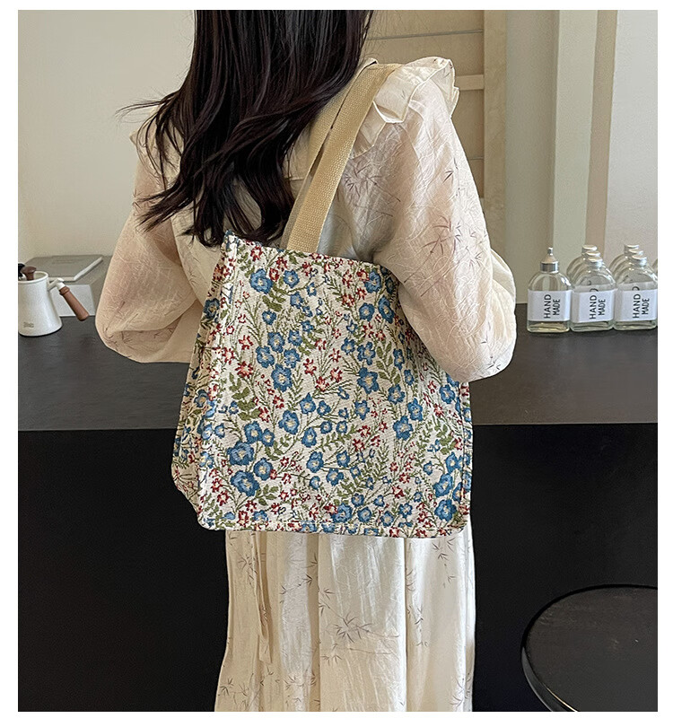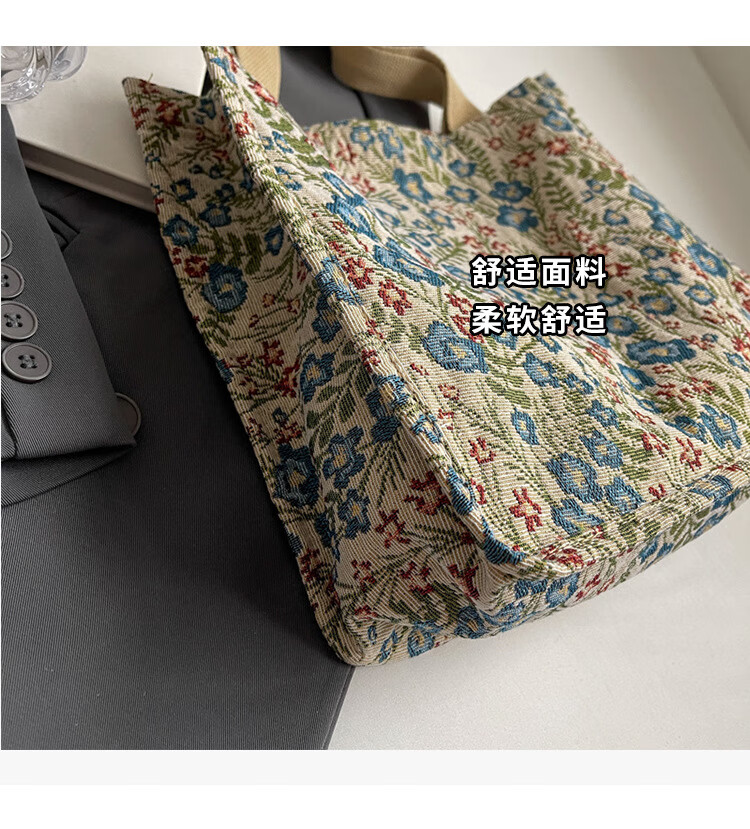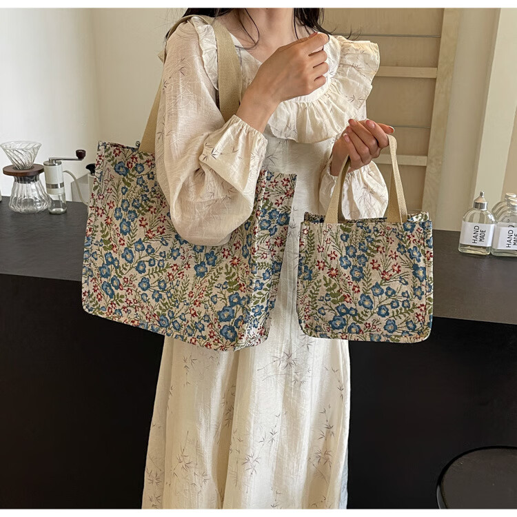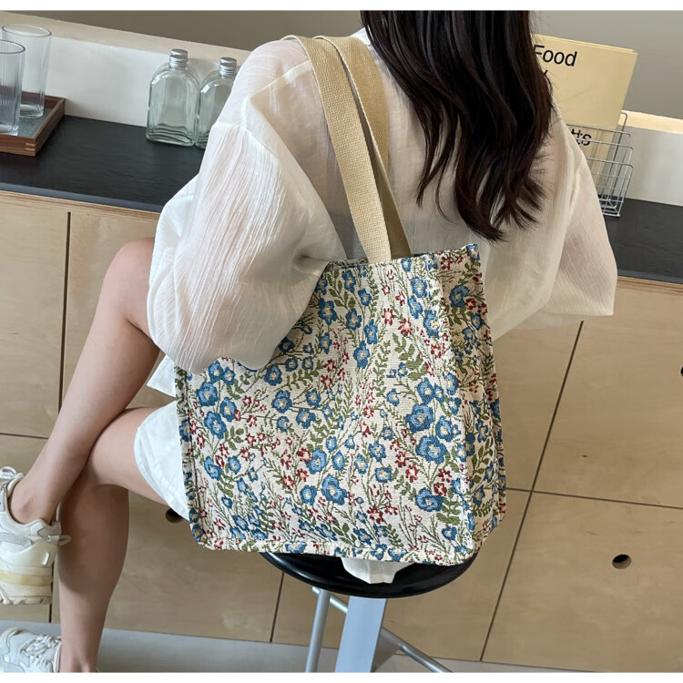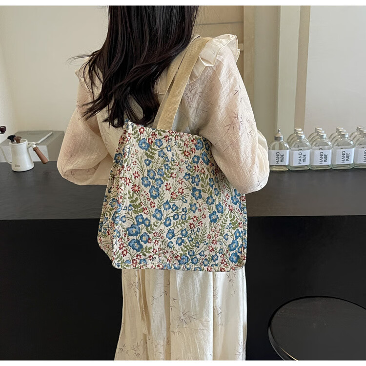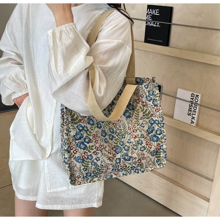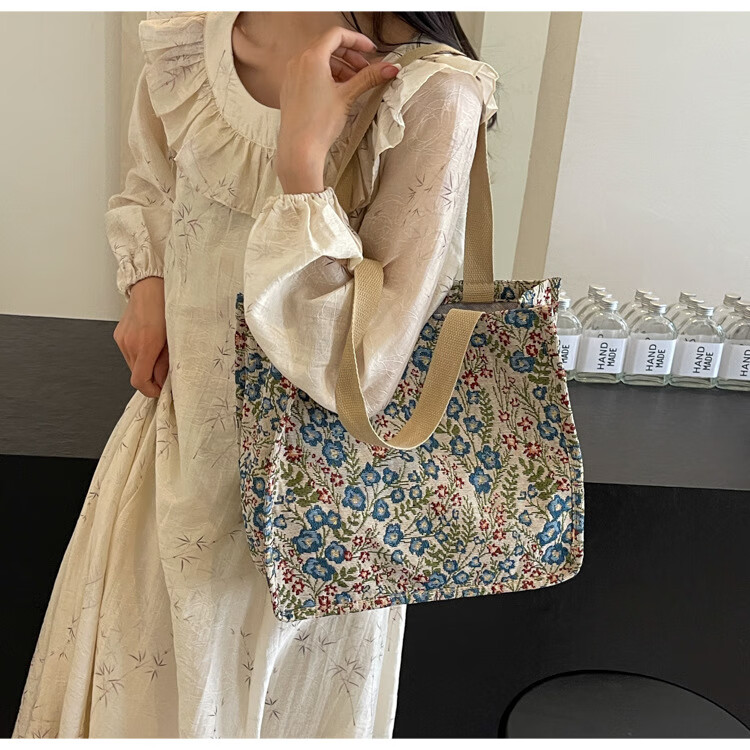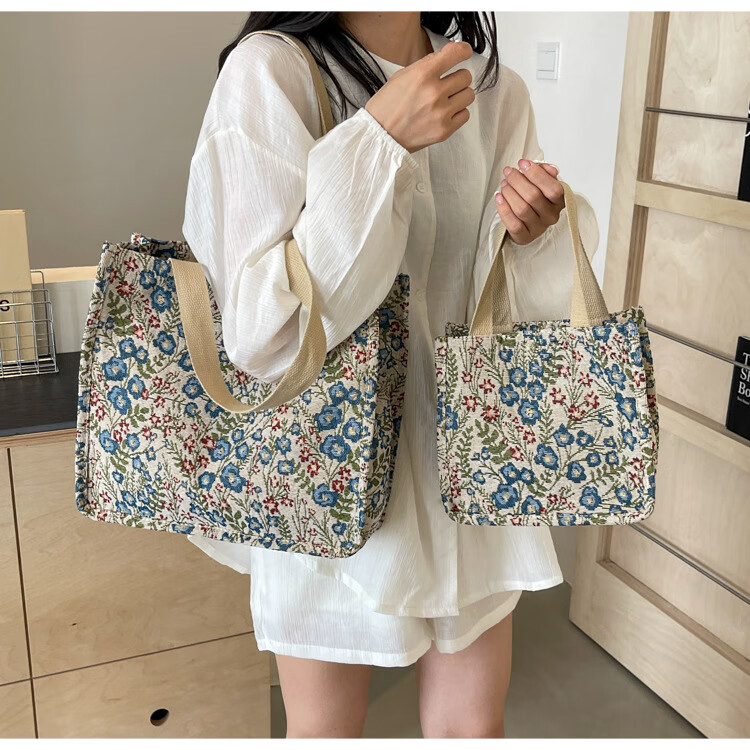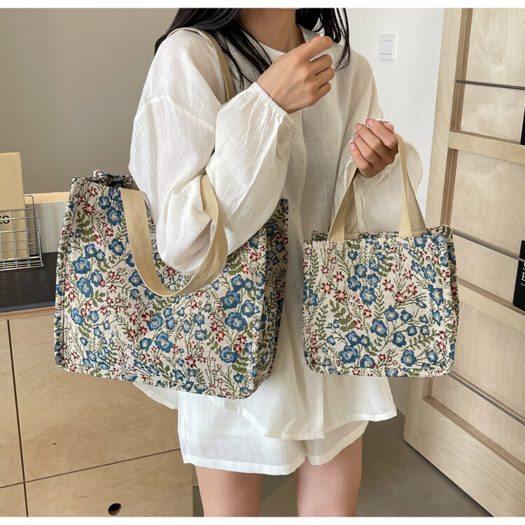 【优选好物】大容量单肩手提包包女帆布包慵懒风托特上课通勤包 蓝色大号