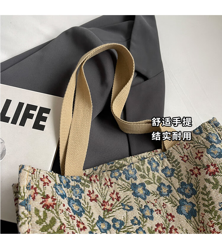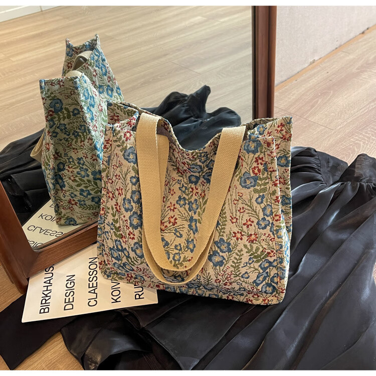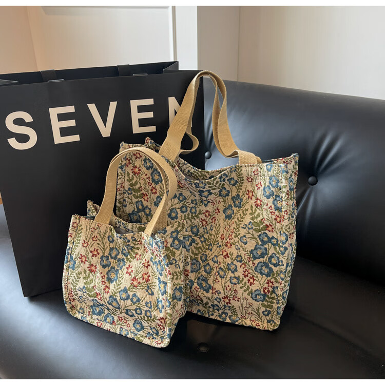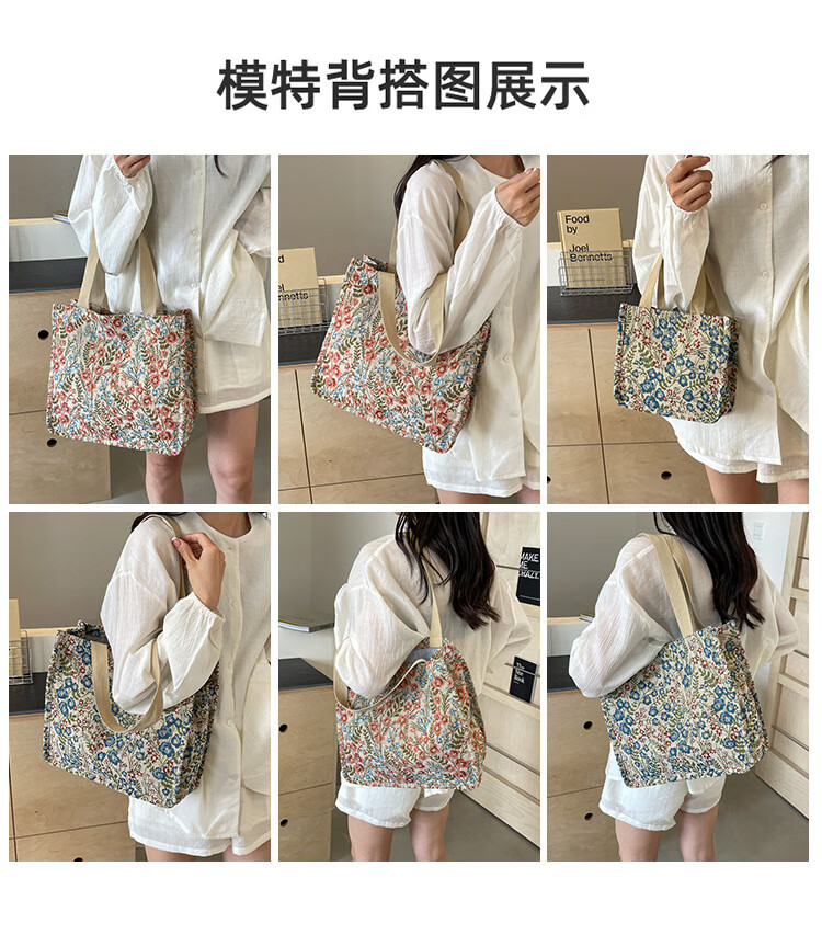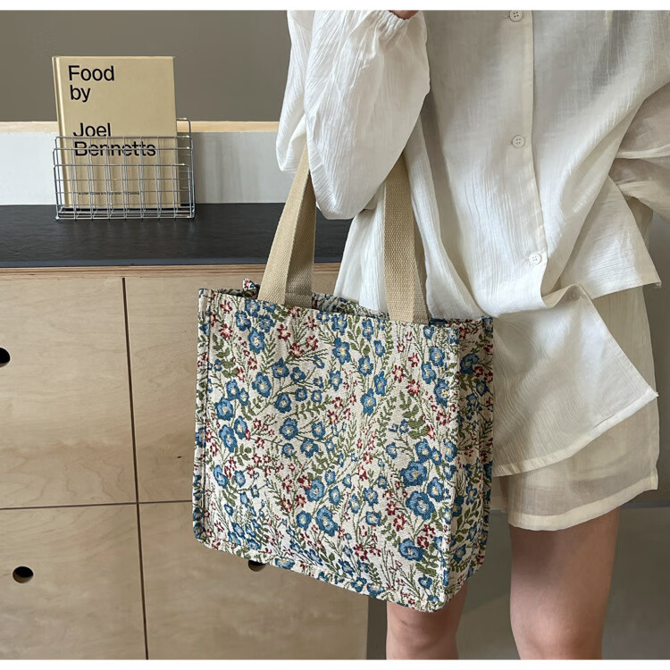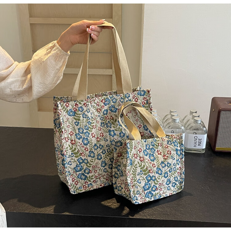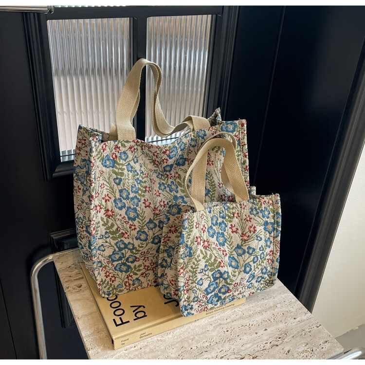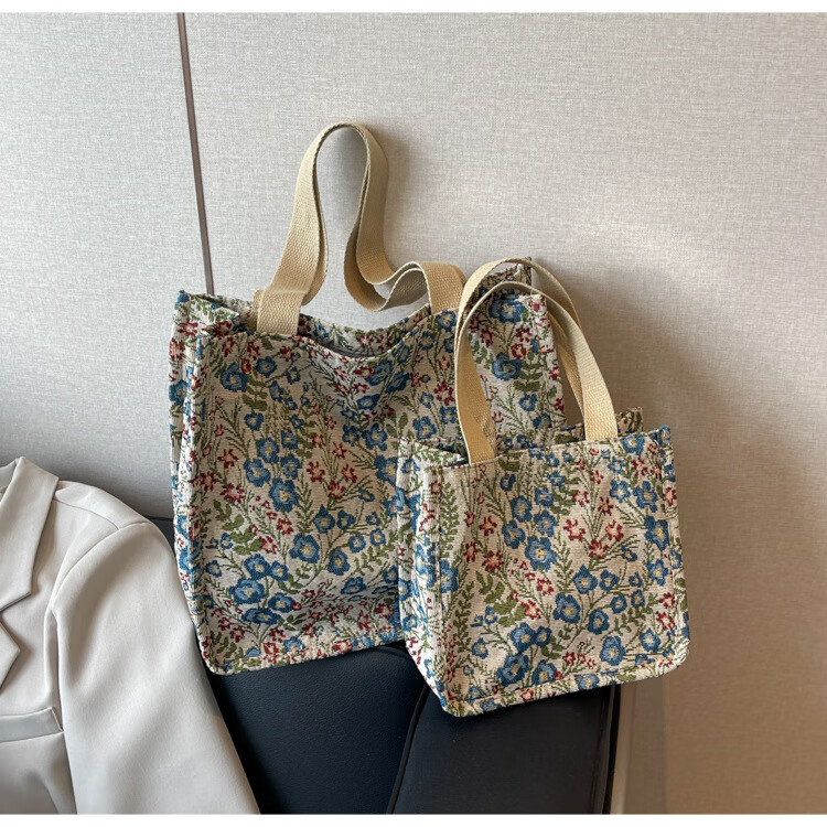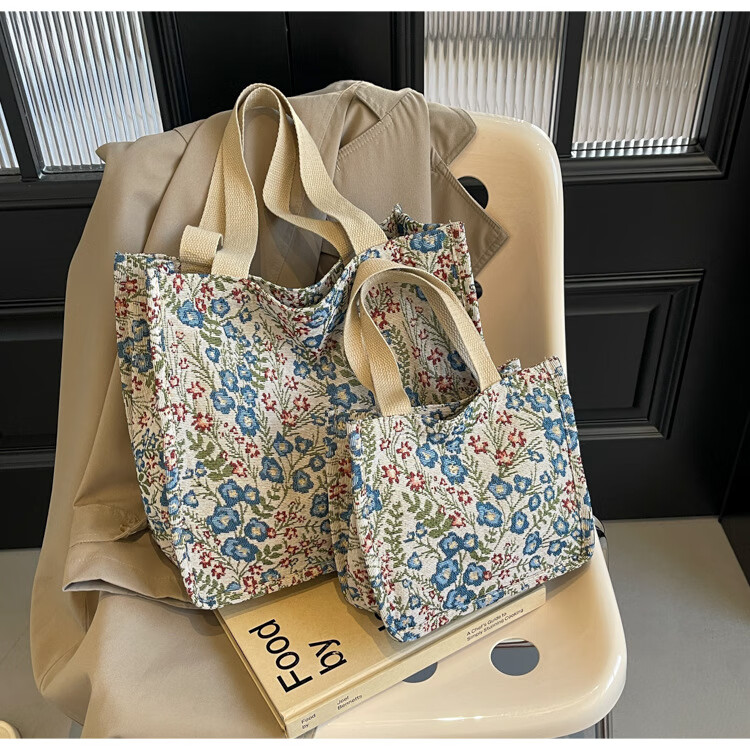 【优选好物】大容量单肩手提包包女帆布包慵懒风托特上课通勤包 蓝色大号