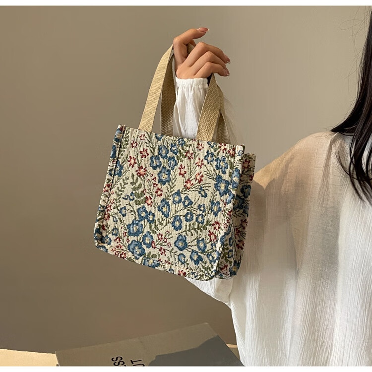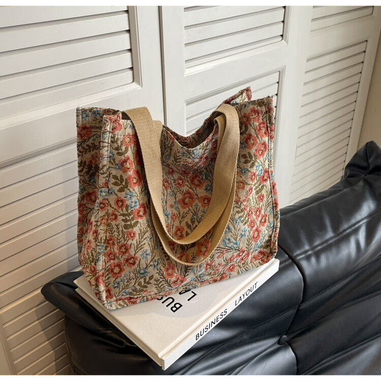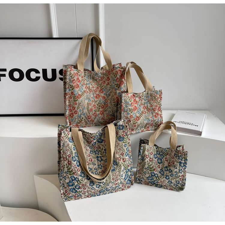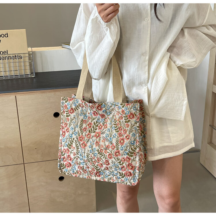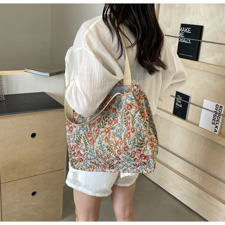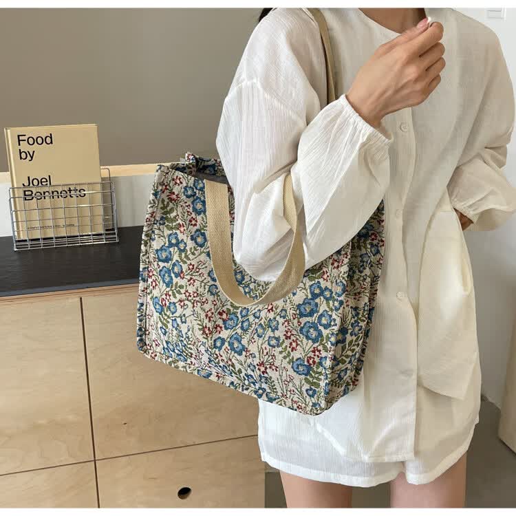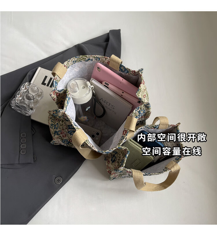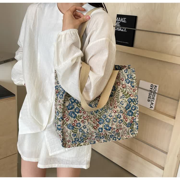 【优选好物】大容量单肩手提包包女帆布包慵懒风托特上课通勤包 蓝色大号