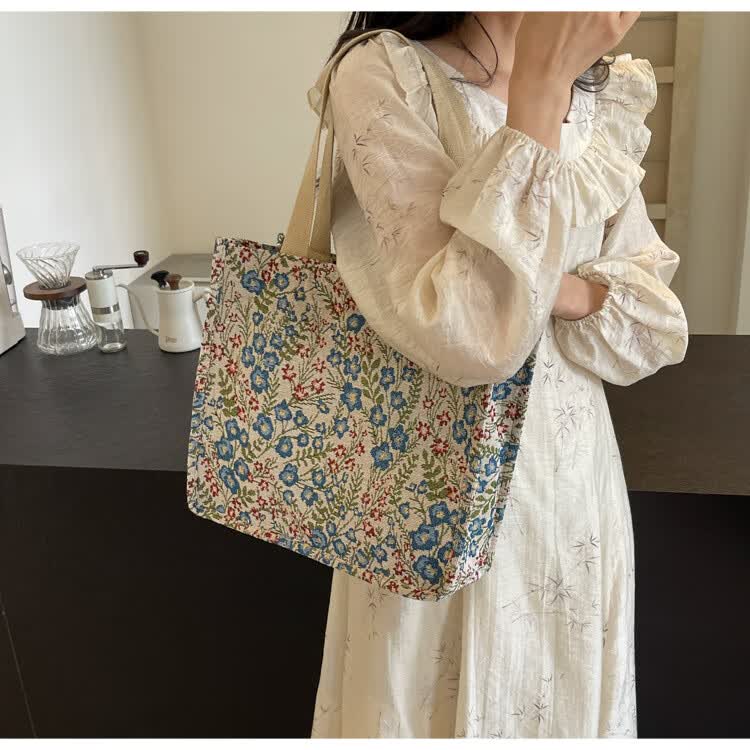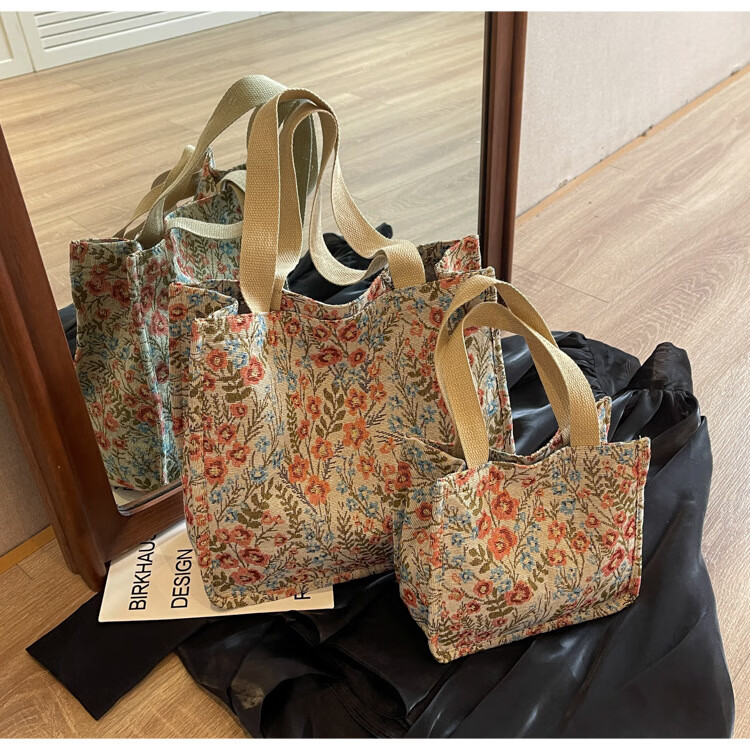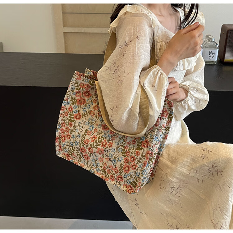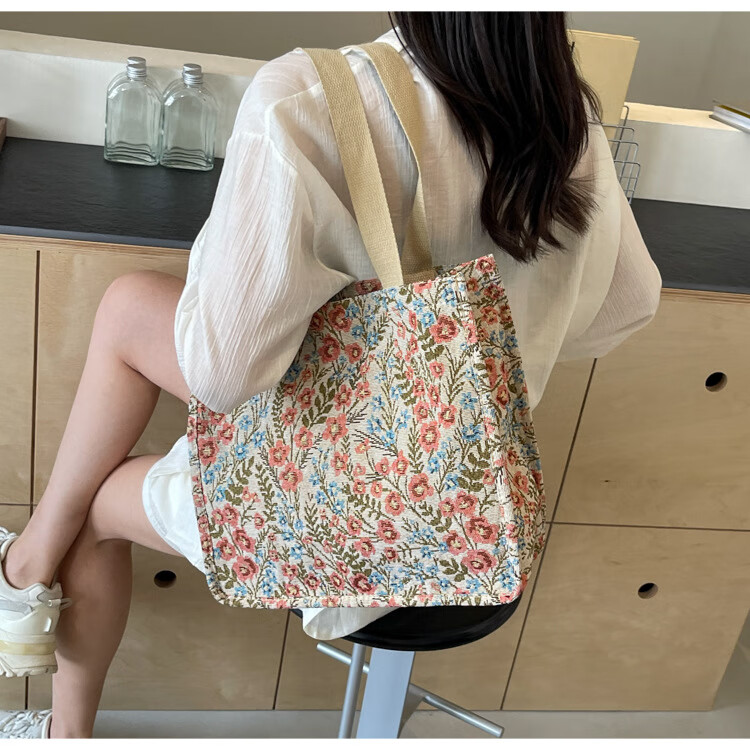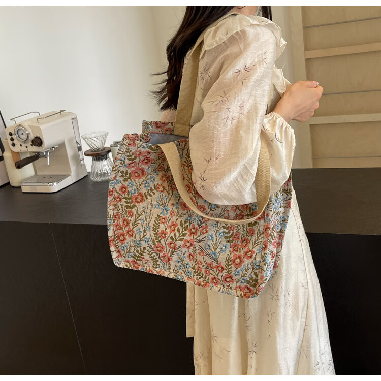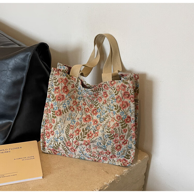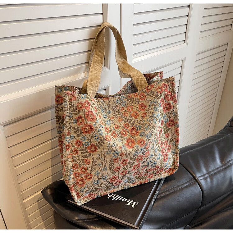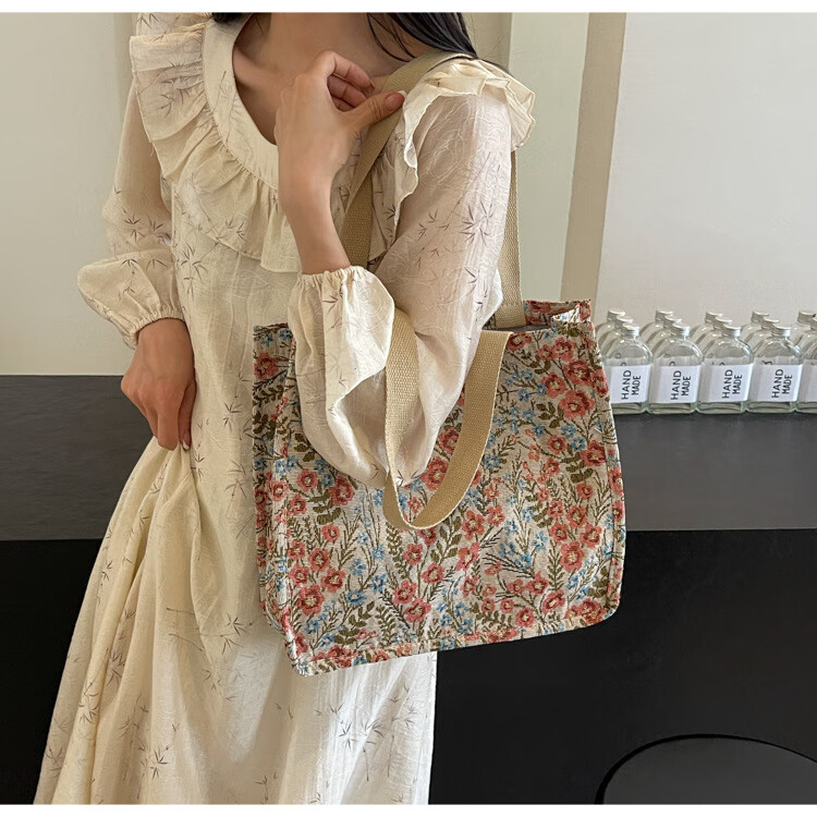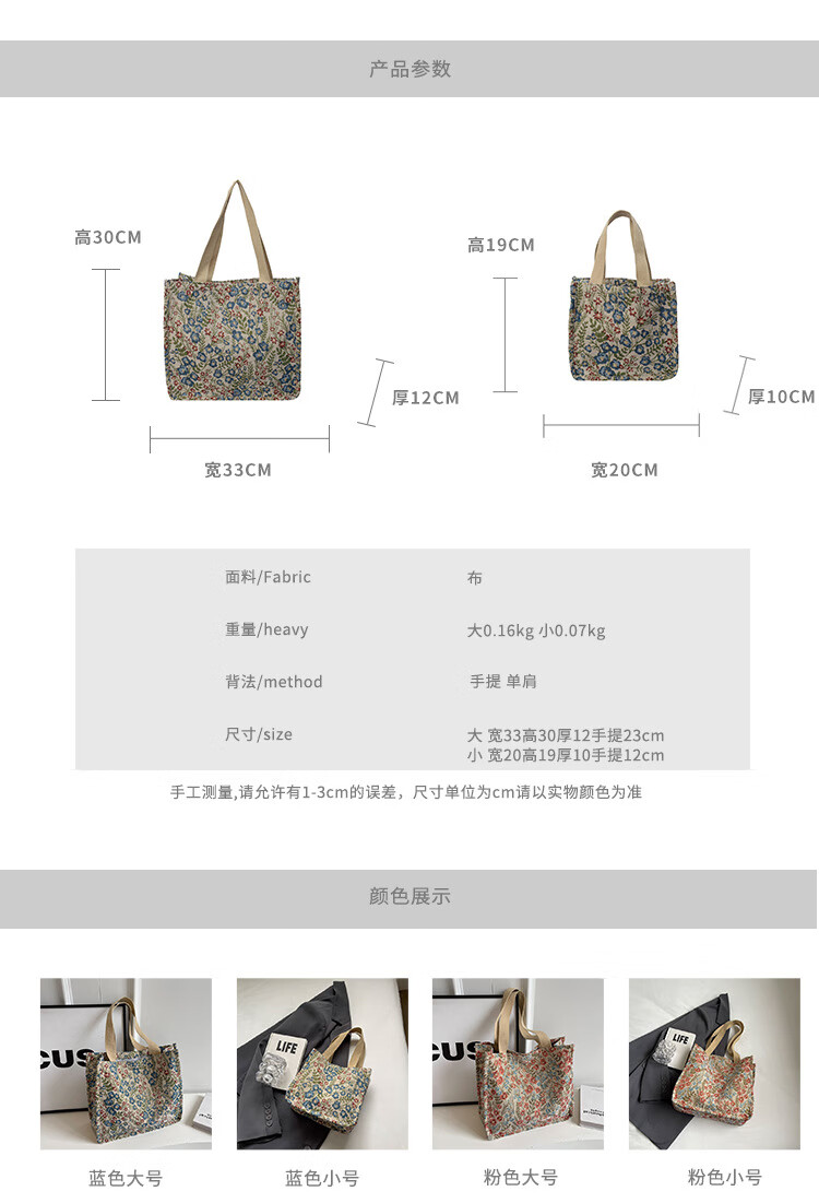 【优选好物】大容量单肩手提包包女帆布包慵懒风托特上课通勤包 蓝色大号