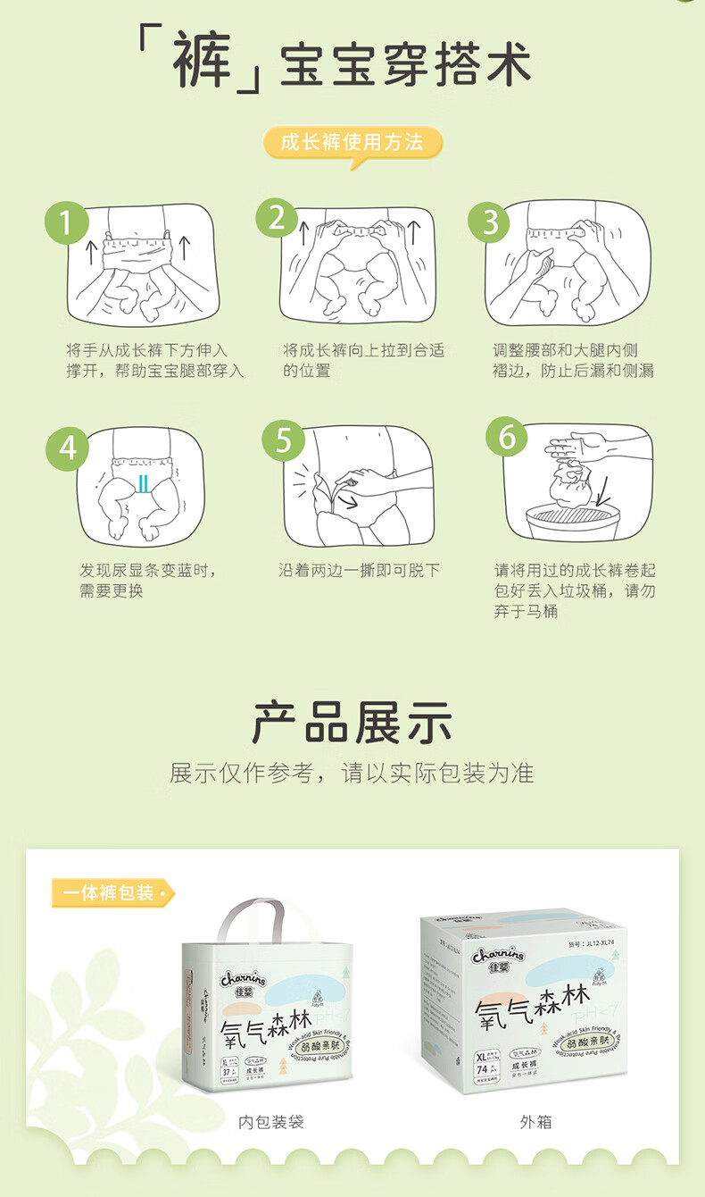 佳婴氧气森林拉拉裤5XL码56片(20-35KG)片全包臀婴儿尿不湿亲肤成长裤