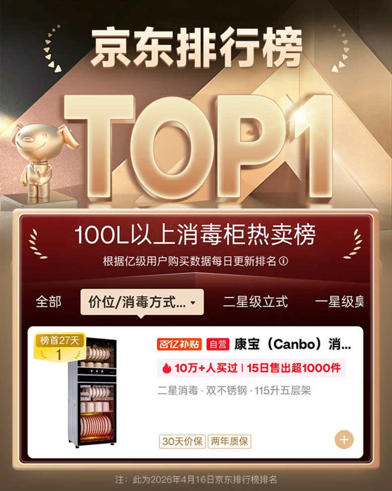 康宝(Canbo)消毒柜家用立式大容量高温烘干碗筷不锈钢餐具小型台式母婴儿奶瓶双门115L碗柜政府补贴XDZ100-D1