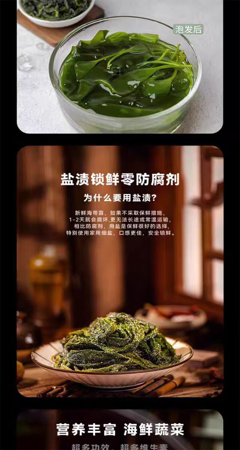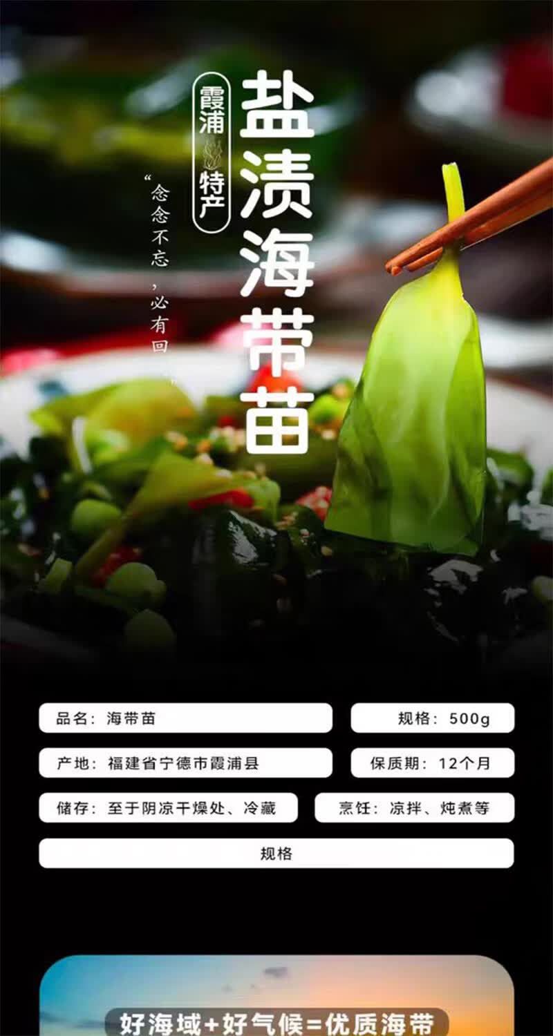 盐渍海带苗凉拌火锅麻辣烫煲汤海带苗海苔鲜嫩脆爽休闲零食无沙 500g(分开拍2单可以领取2张卷)