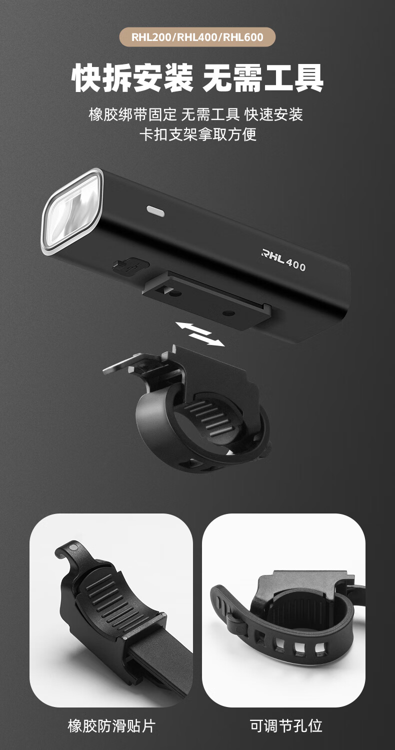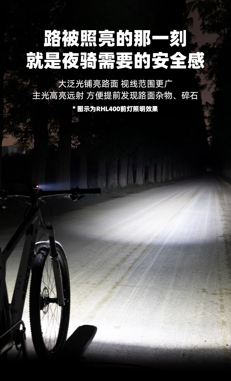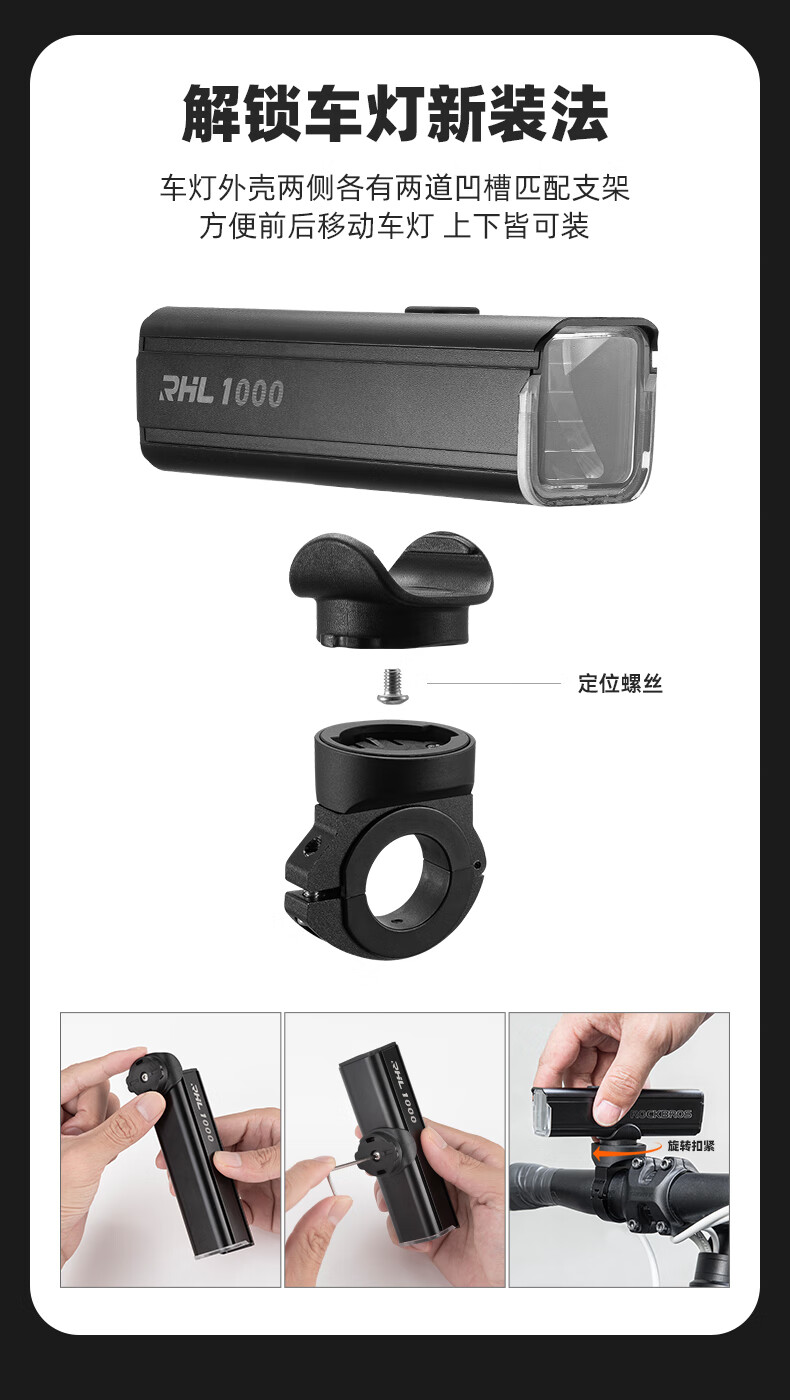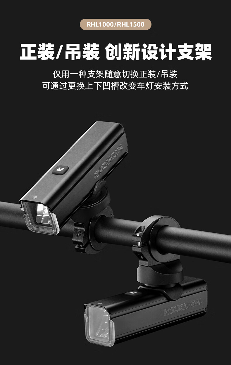 洛克兄弟自行车灯前灯夜骑行高亮强光手电筒TYPE-C充电防雨山地公路车照明 RHL1000流明-智能温控/铝合金支架/赠吊装基座