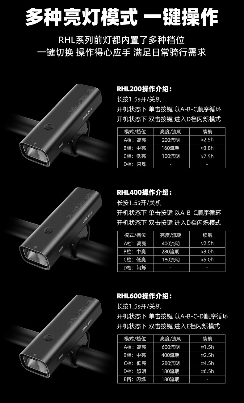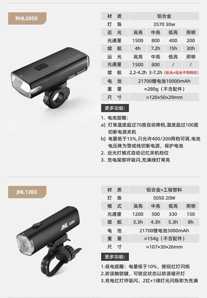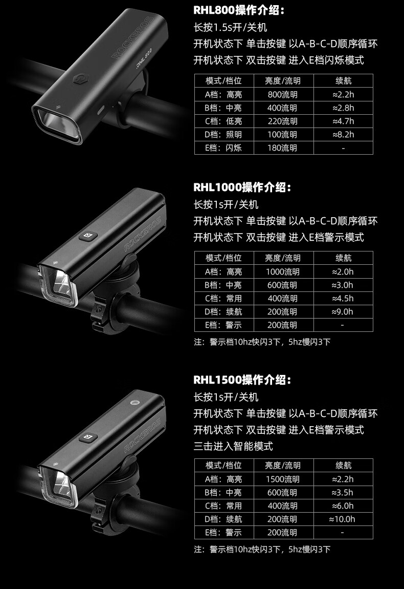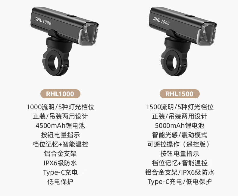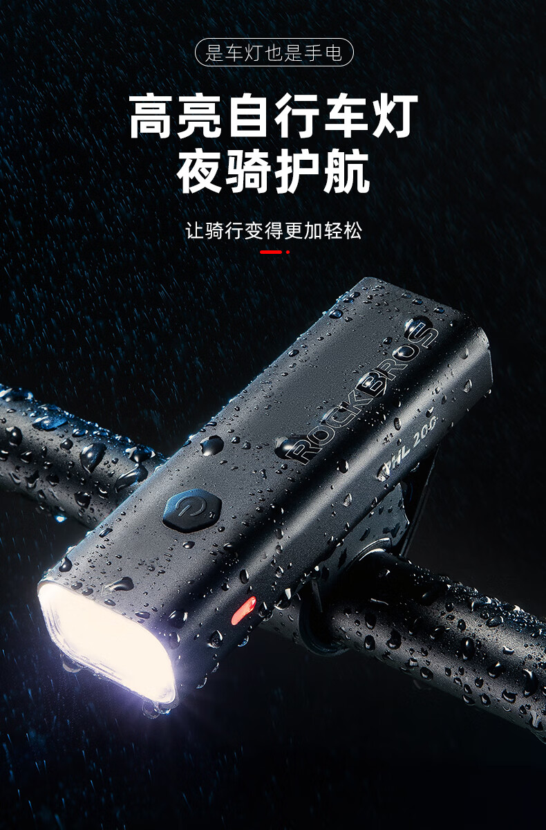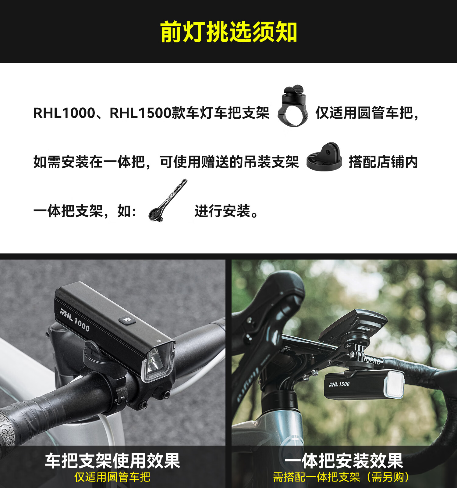 洛克兄弟自行车灯前灯夜骑行高亮强光手电筒TYPE-C充电防雨山地公路车照明 RHL1000流明-智能温控/铝合金支架/赠吊装基座