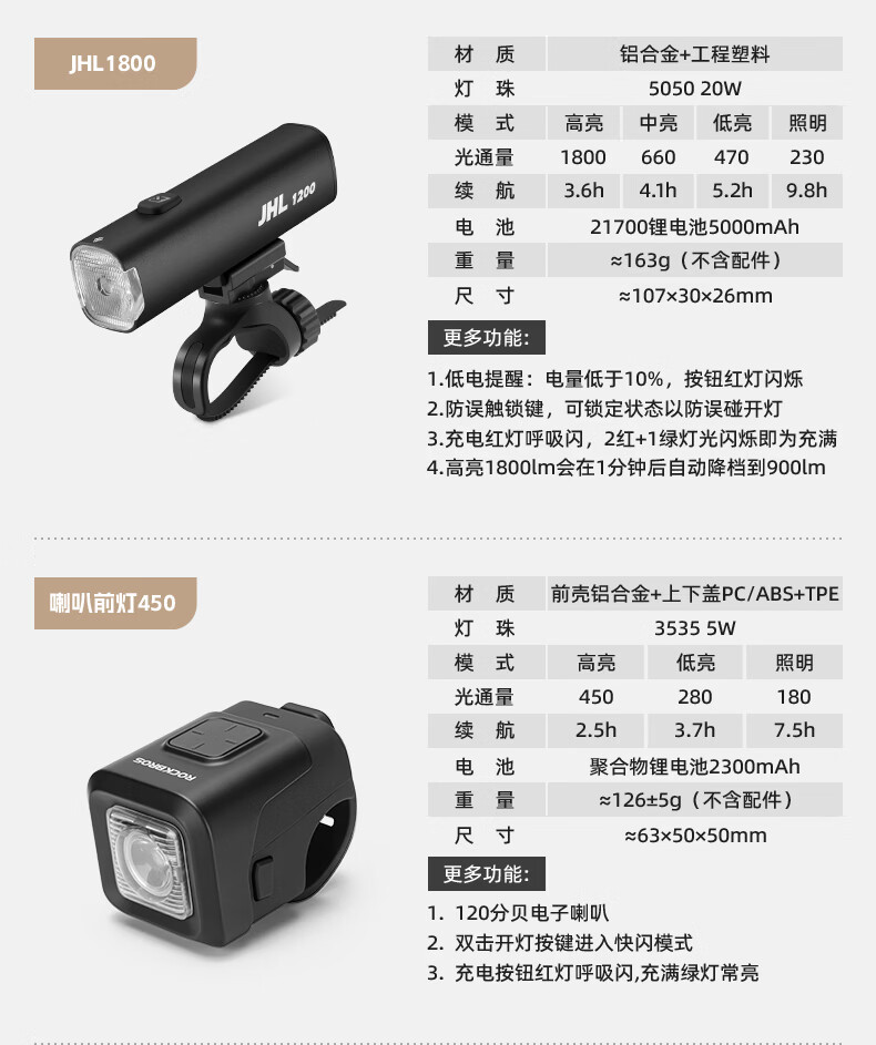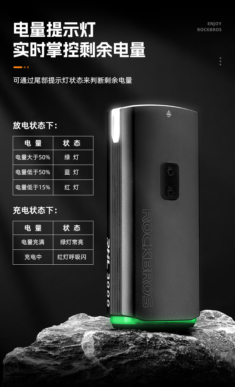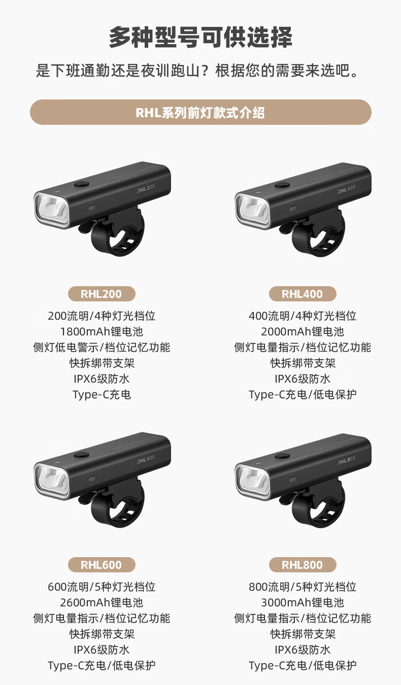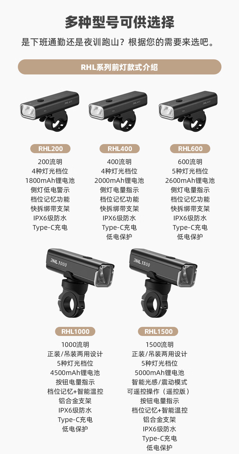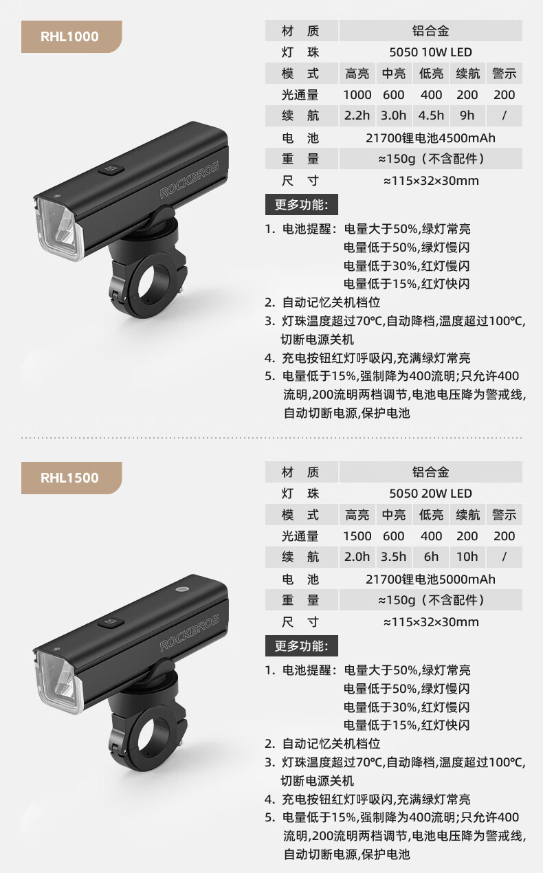 洛克兄弟自行车灯前灯夜骑行高亮强光手电筒TYPE-C充电防雨山地公路车照明 RHL1000流明-智能温控/铝合金支架/赠吊装基座