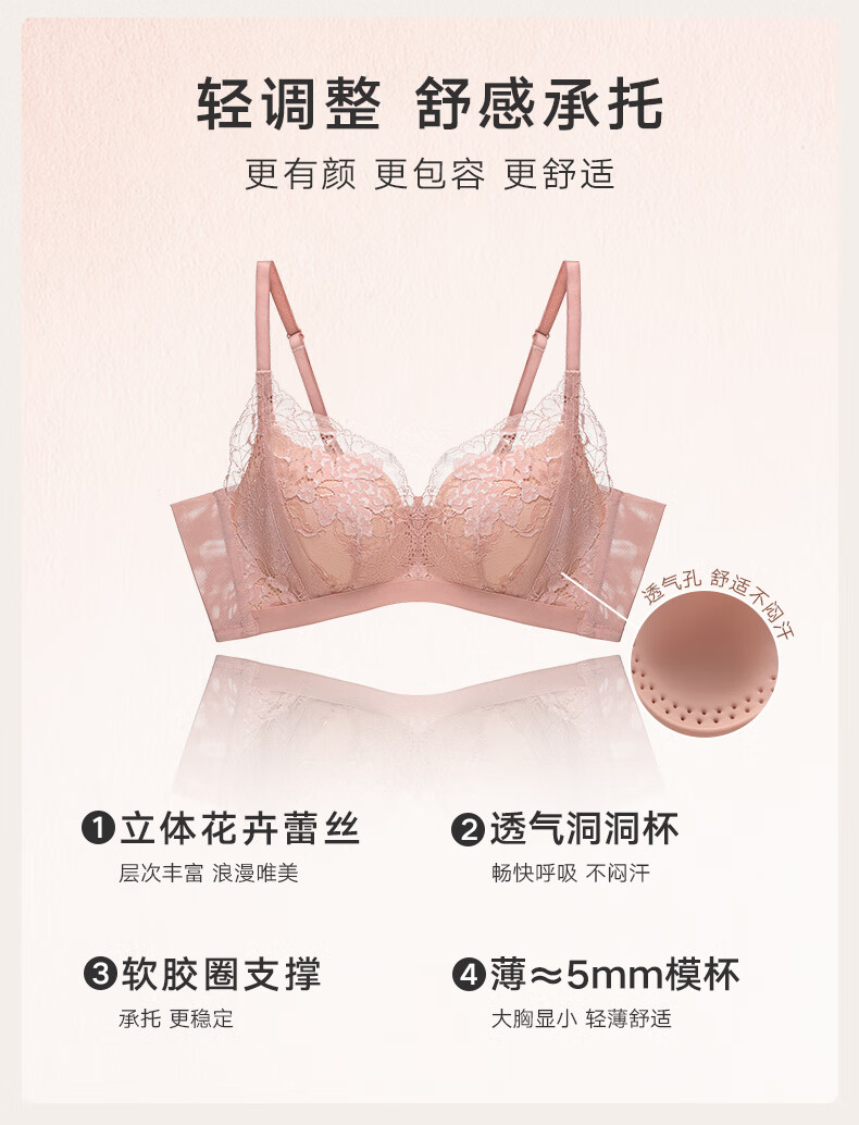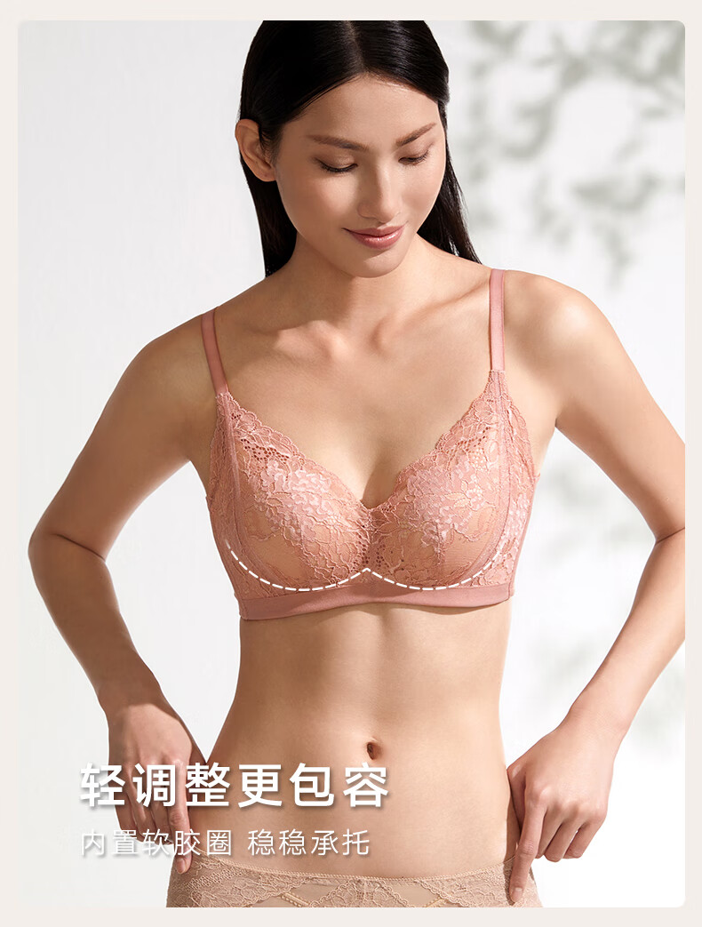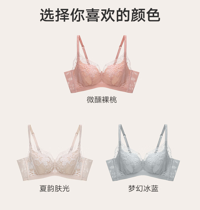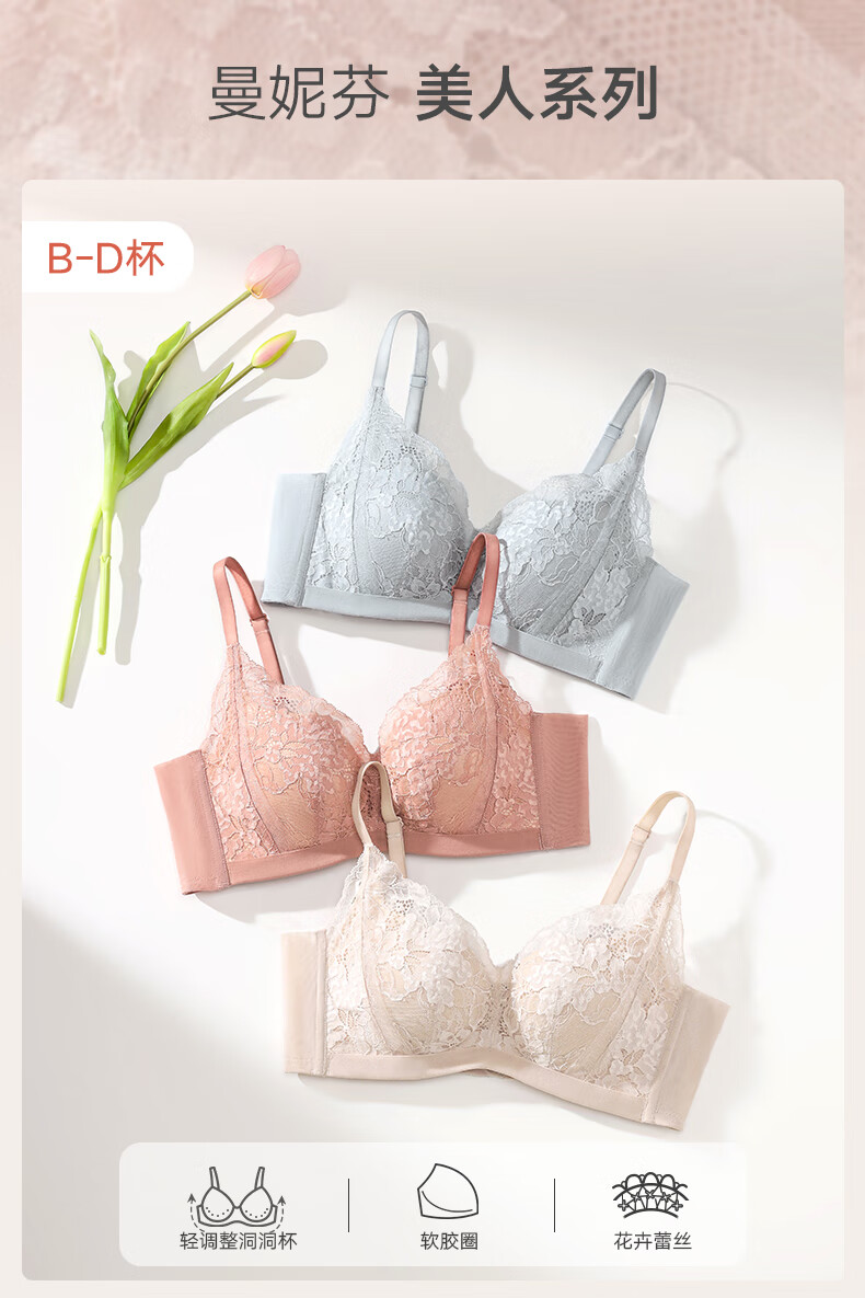曼妮芬强承托调整型法式蕾丝内衣女士聚拢透气大胸显小收副乳防下垂文胸 梦幻冰蓝 75C (34) (75C/80B可拍)