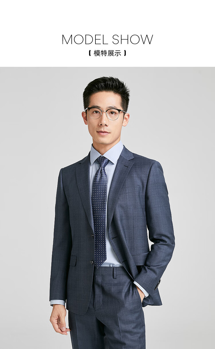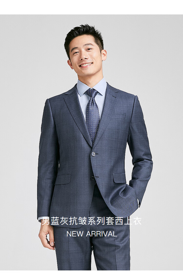 雅戈尔【商场同款】舒适羊毛+桑蚕丝西服男士春夏套西YOTX222702HJY上衣 蓝灰 XL 180/100A