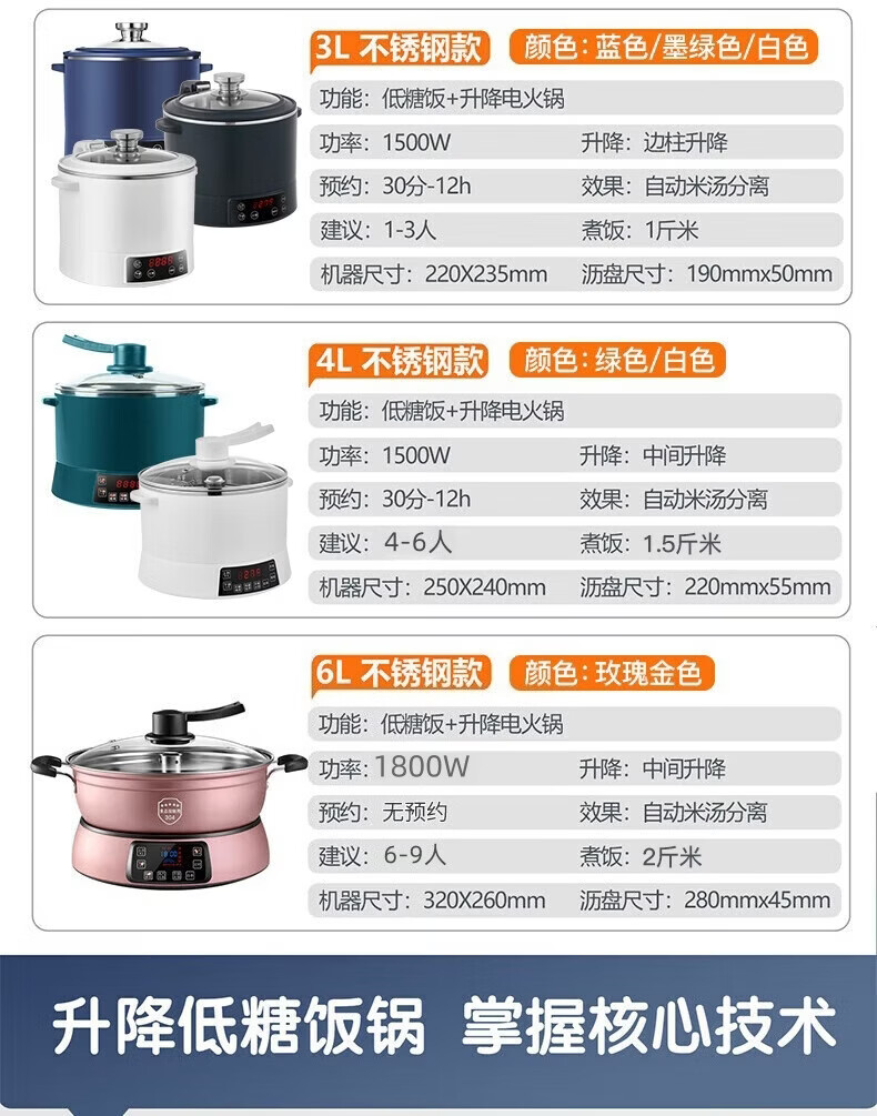 统厨智能升降低糖电饭煲米汤分离全自动沥米饭蒸煮多功能电饭锅 3L 墨绿色 不锈钢款(适合2-3人) 侧边升降