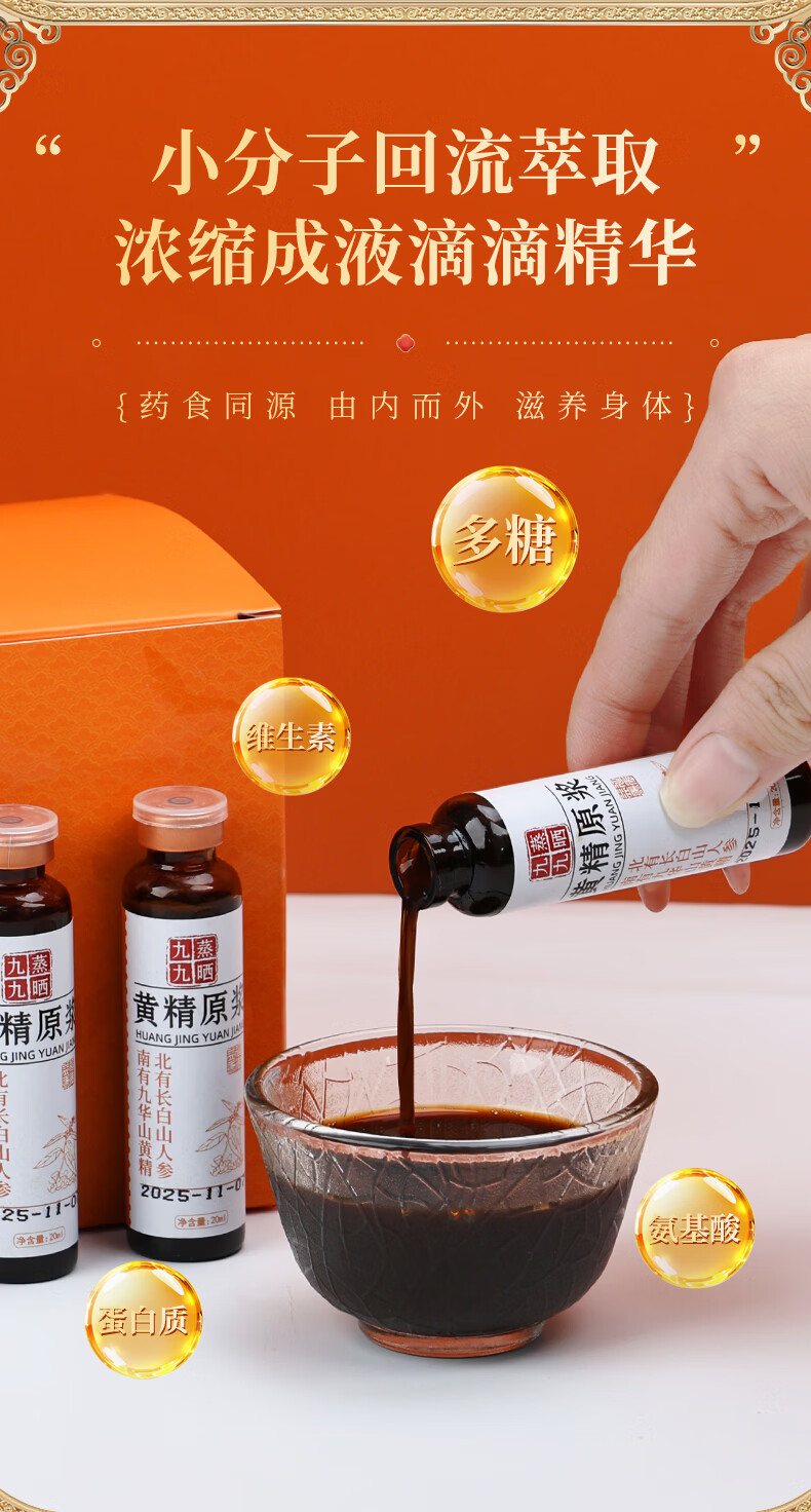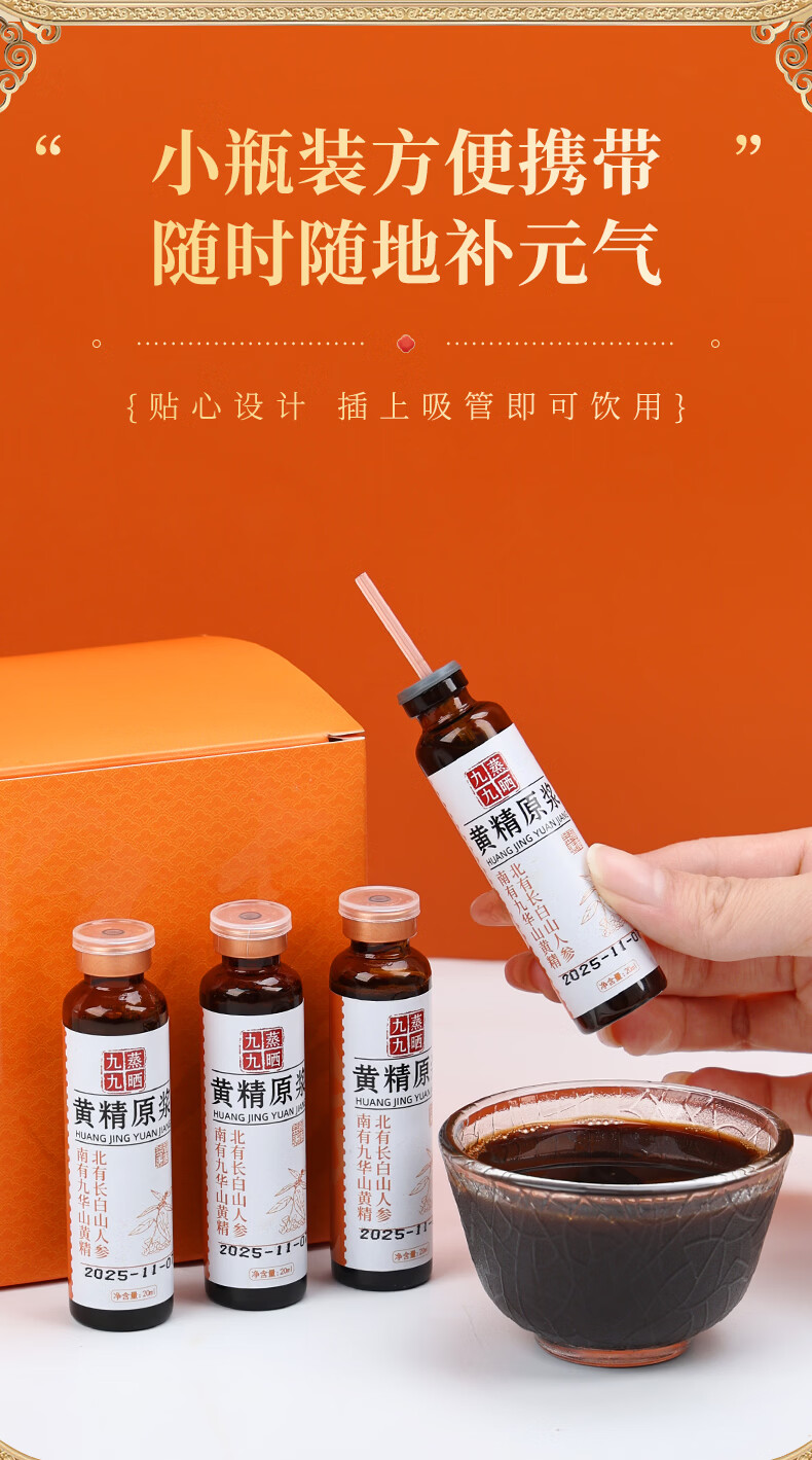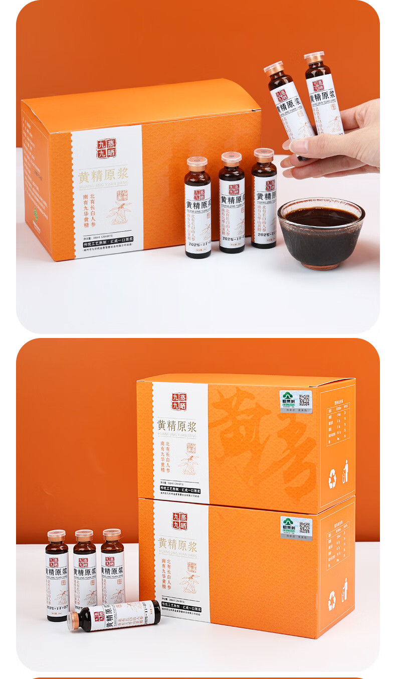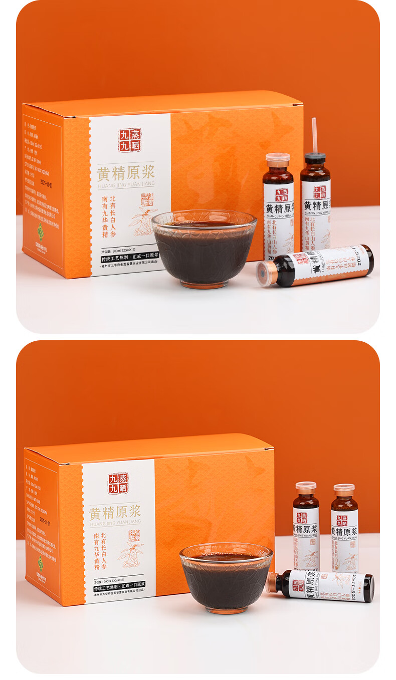 粗栗树黄精原浆口服液礼盒九华山黄精九蒸九晒饮品年货送礼送健康 300ml*3盒 (20ml*15瓶*3盒)