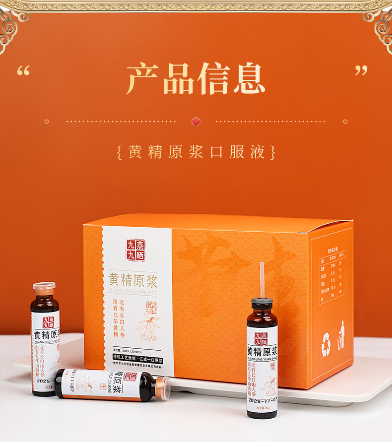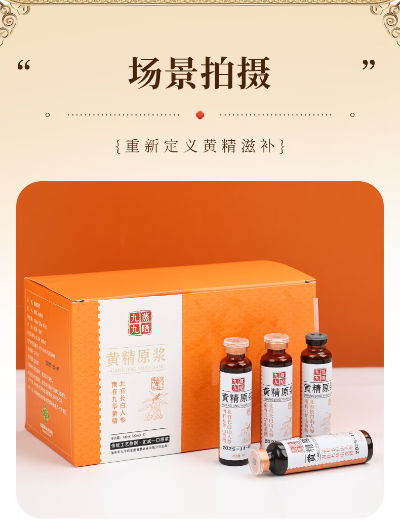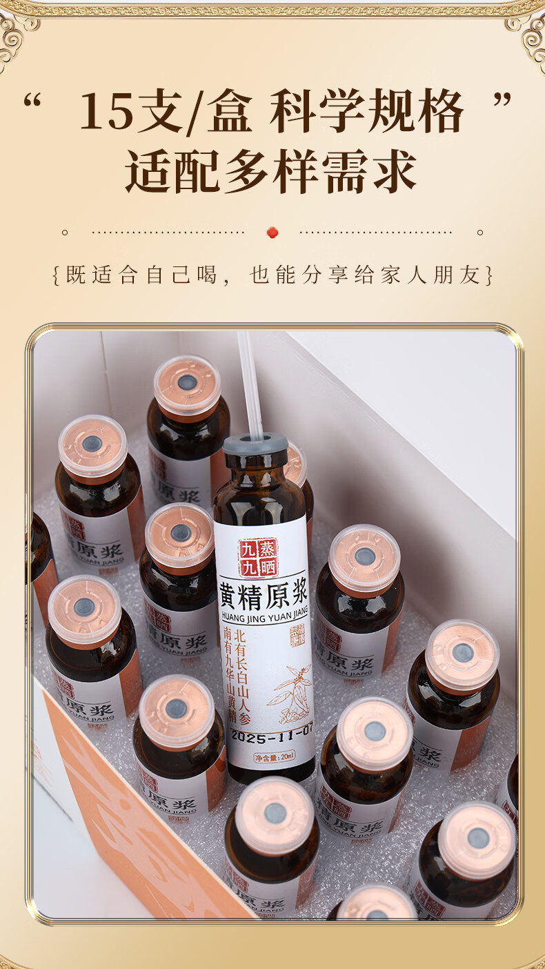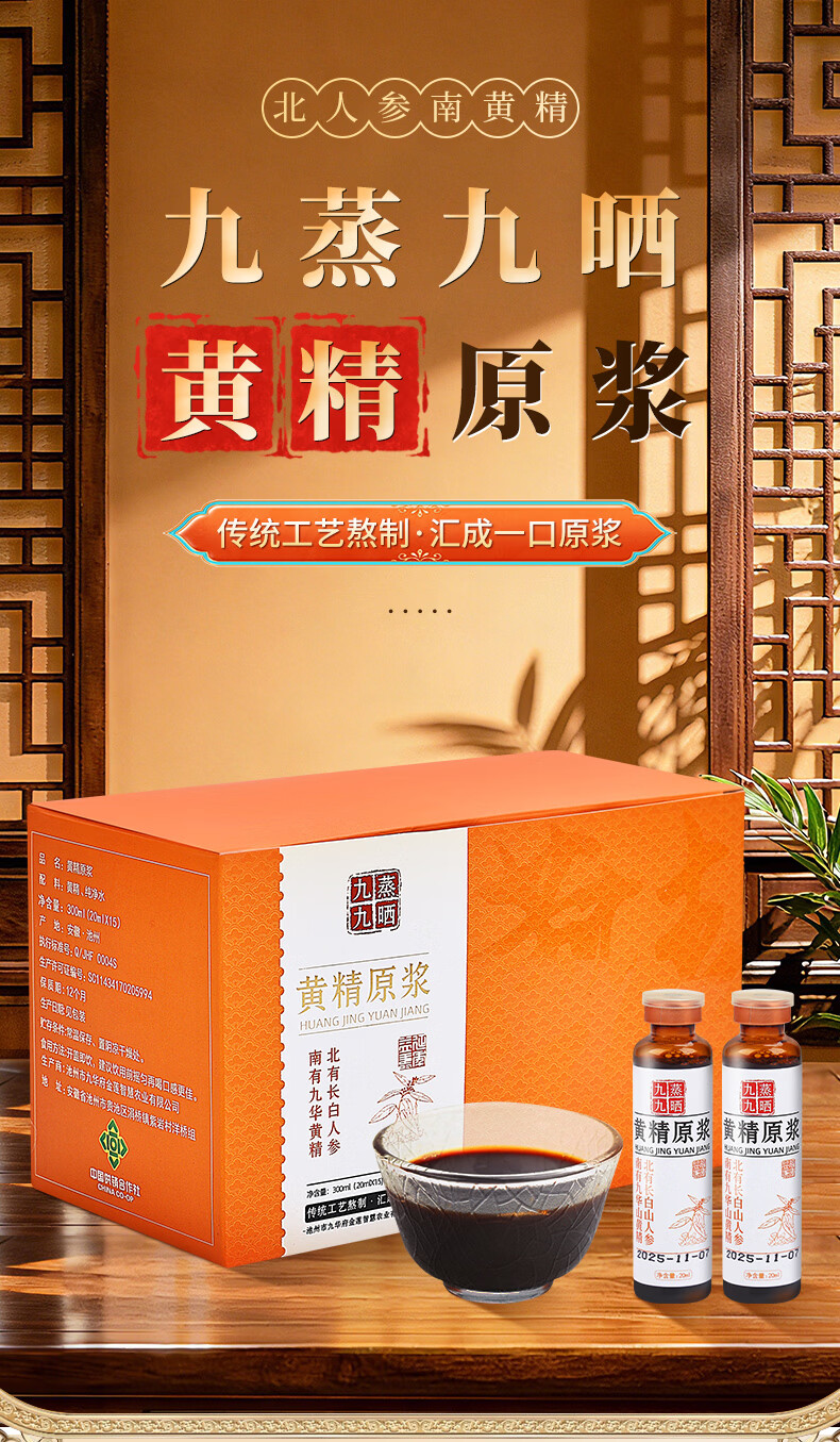粗栗树黄精原浆口服液礼盒九华山黄精九蒸九晒饮品年货送礼送健康 300ml*3盒 (20ml*15瓶*3盒)