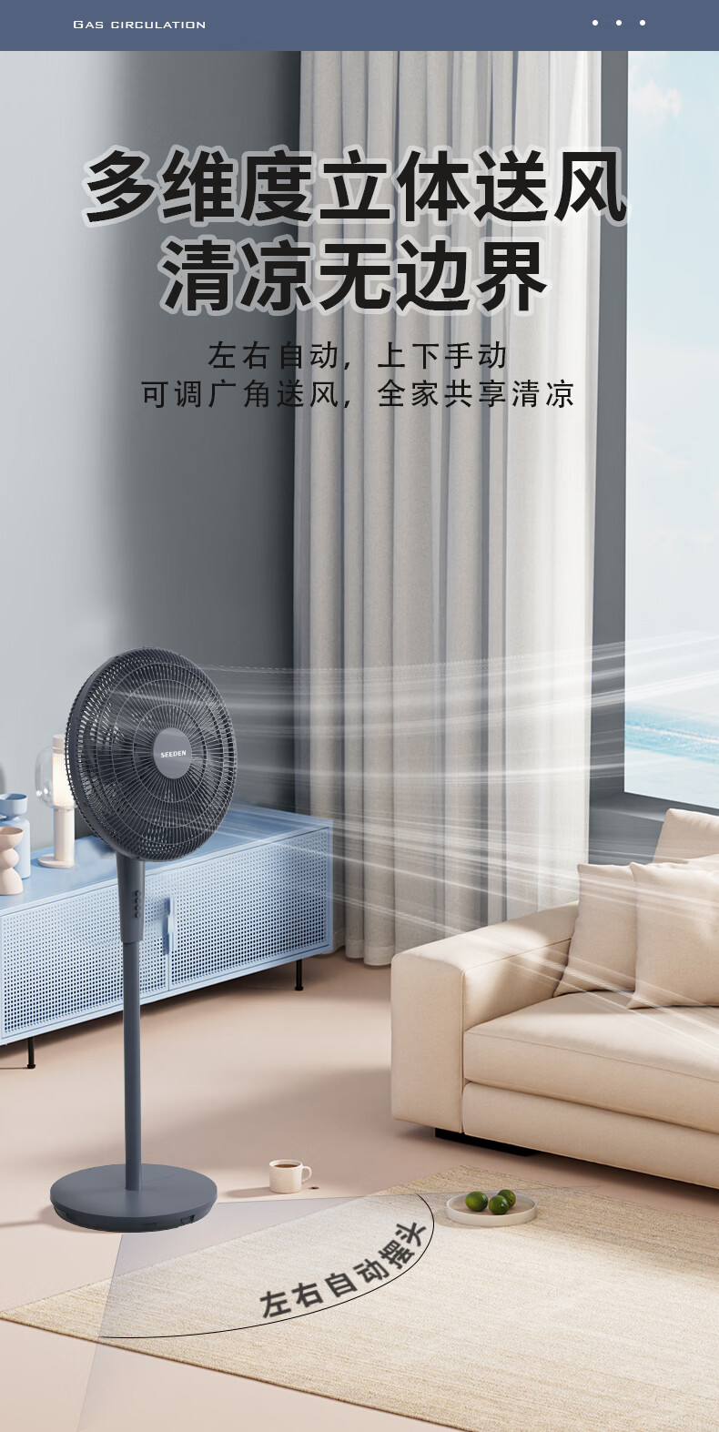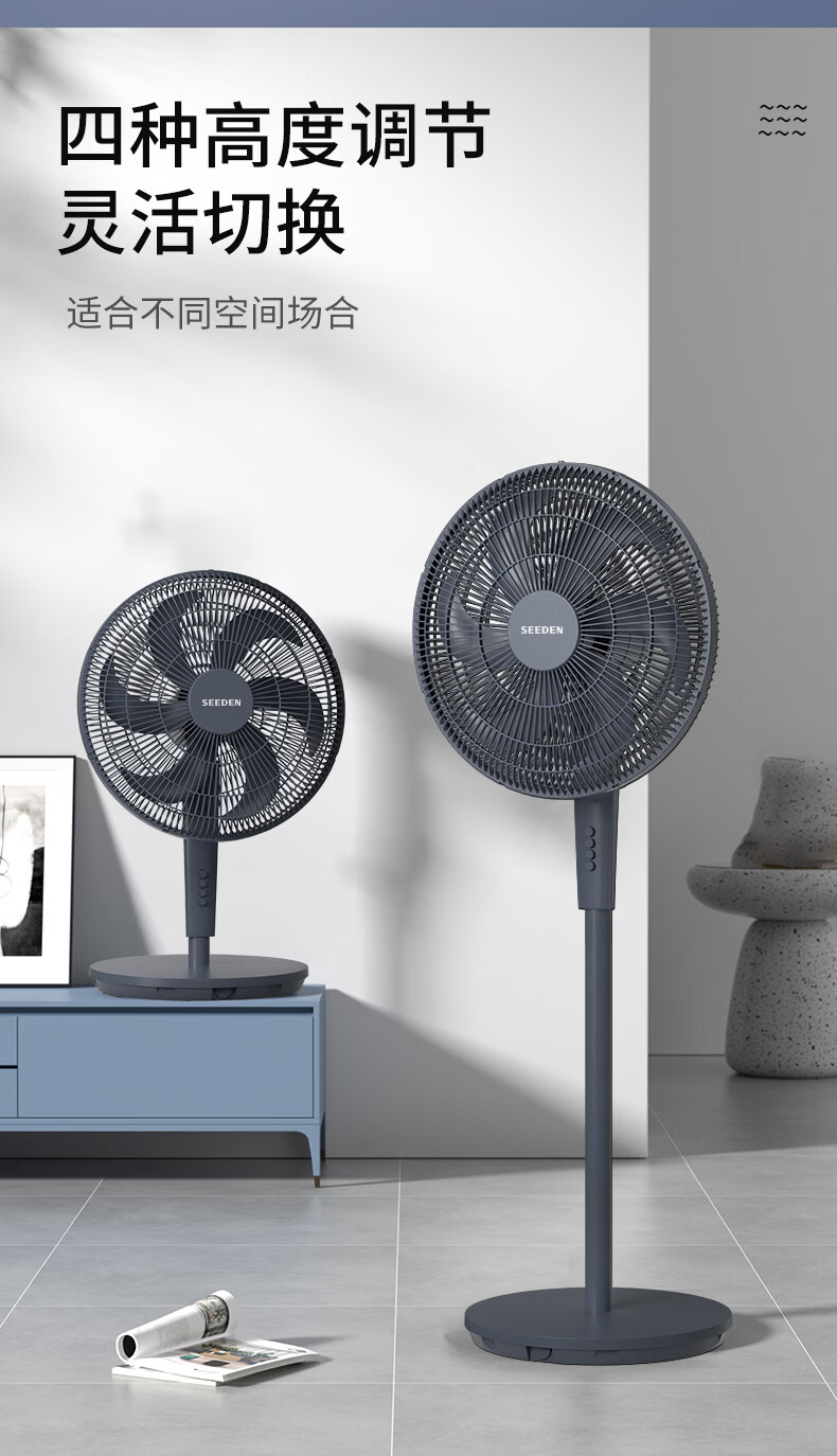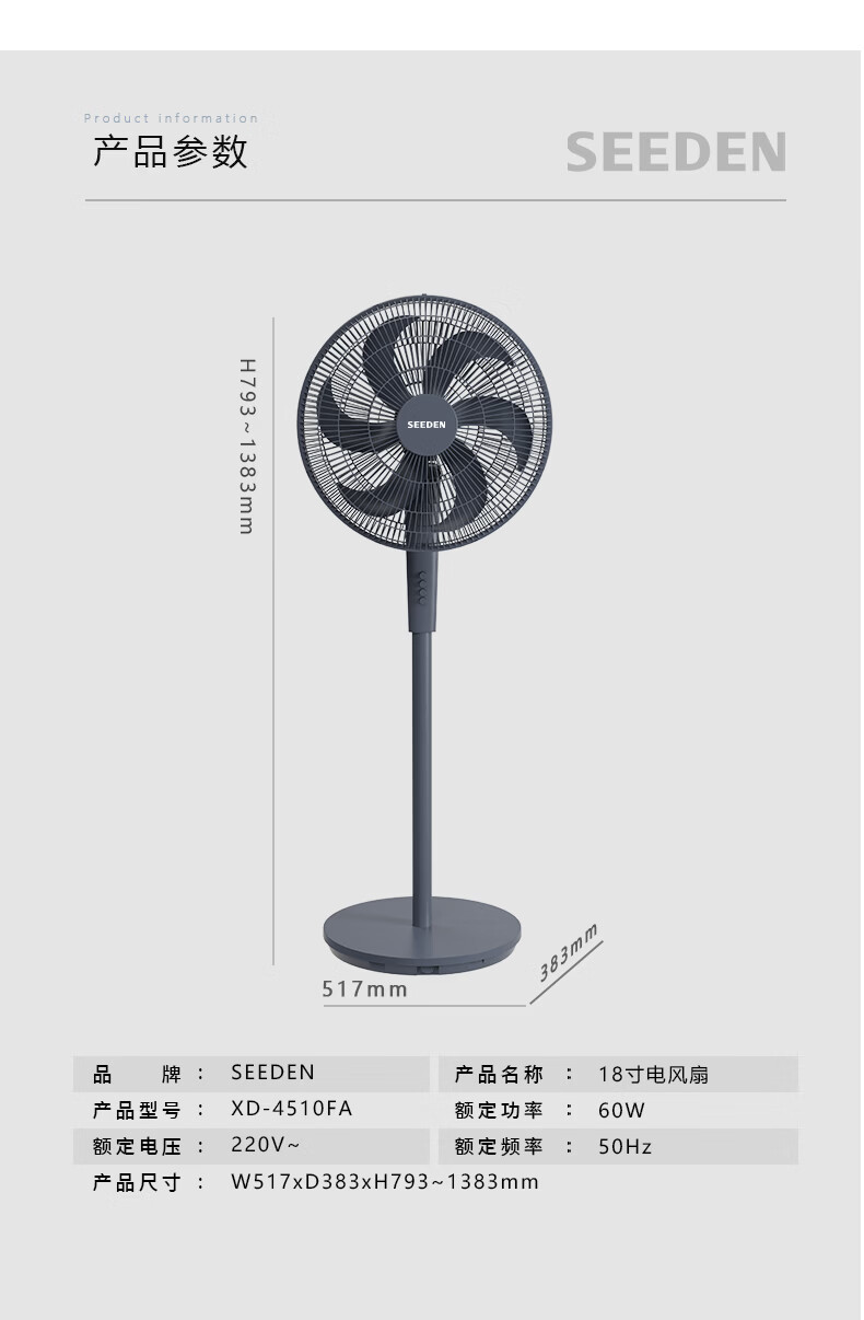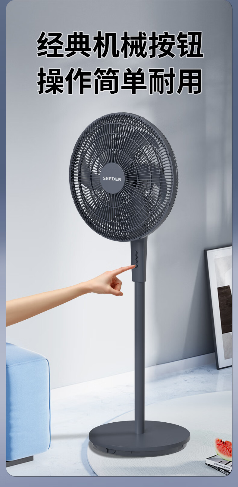 SEEDEN西点空气循环扇升降自动摆头机械按钮控制台立两用可拆卸18寸电风扇家用学校工厂宿舍低噪音落地扇 XD-4510FA【四种高度+三档风力】