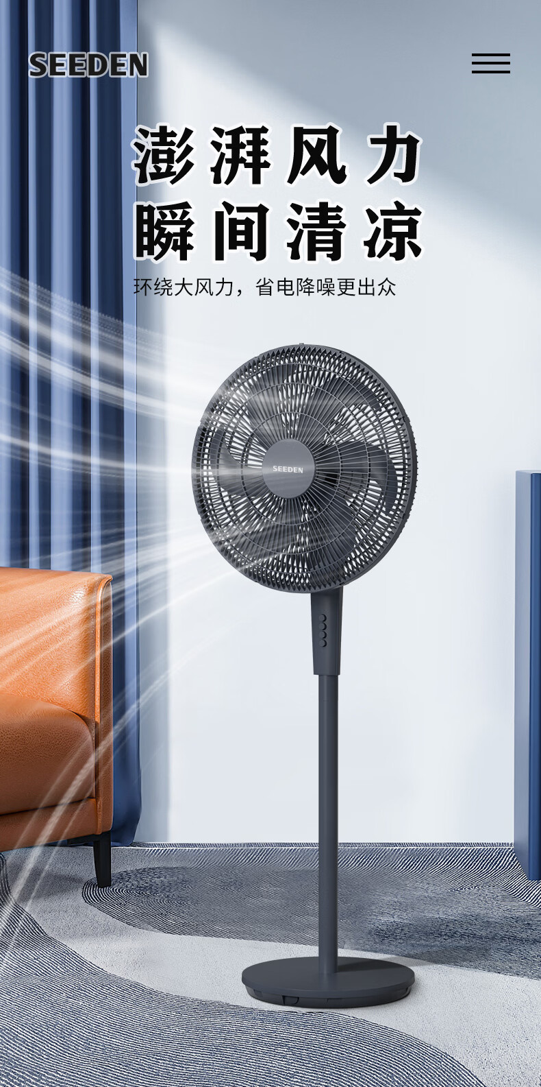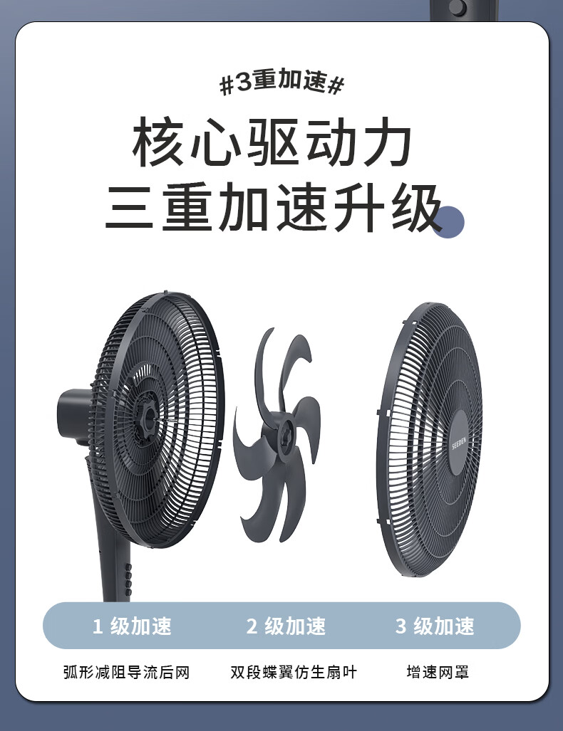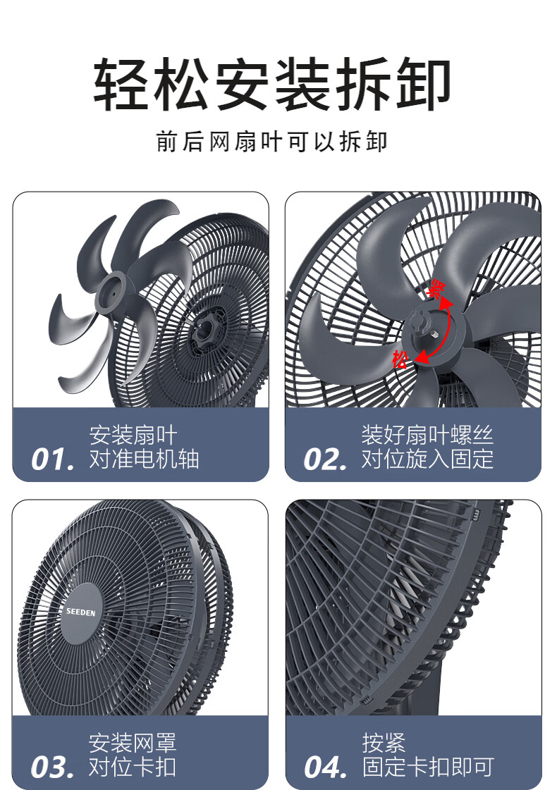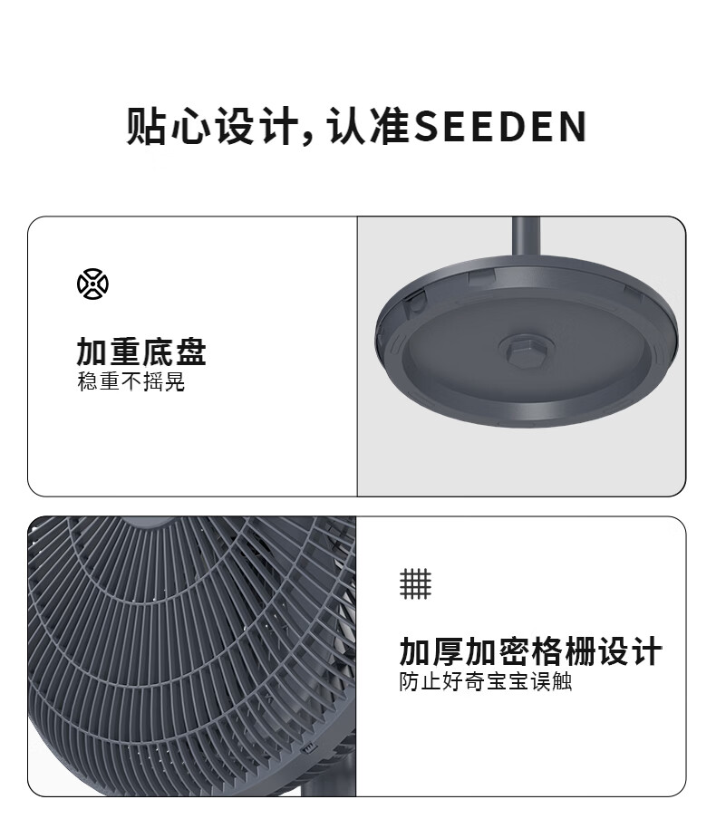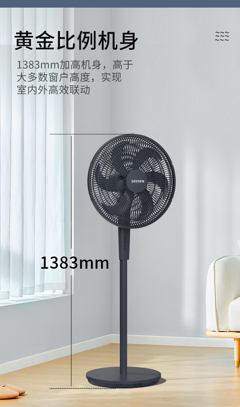 SEEDEN西点空气循环扇升降自动摆头机械按钮控制台立两用可拆卸18寸电风扇家用学校工厂宿舍低噪音落地扇 XD-4510FA【四种高度+三档风力】