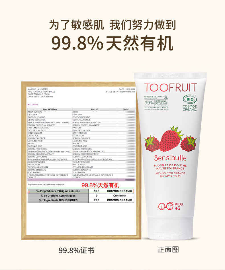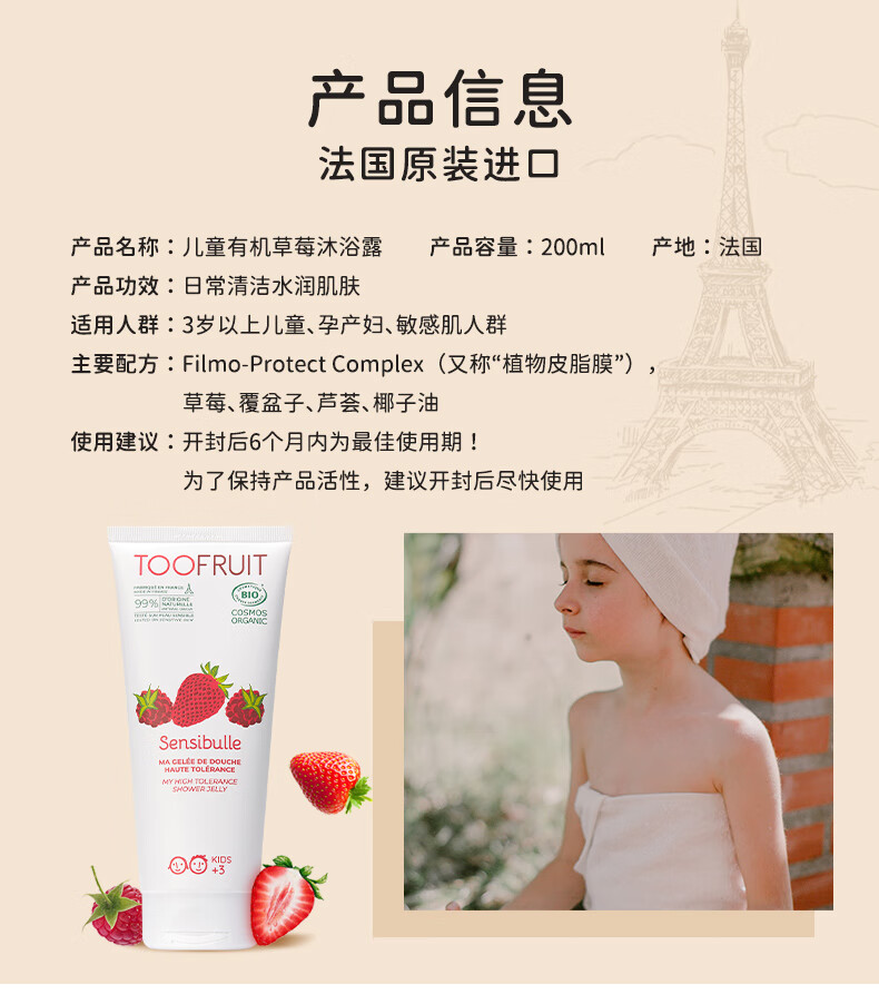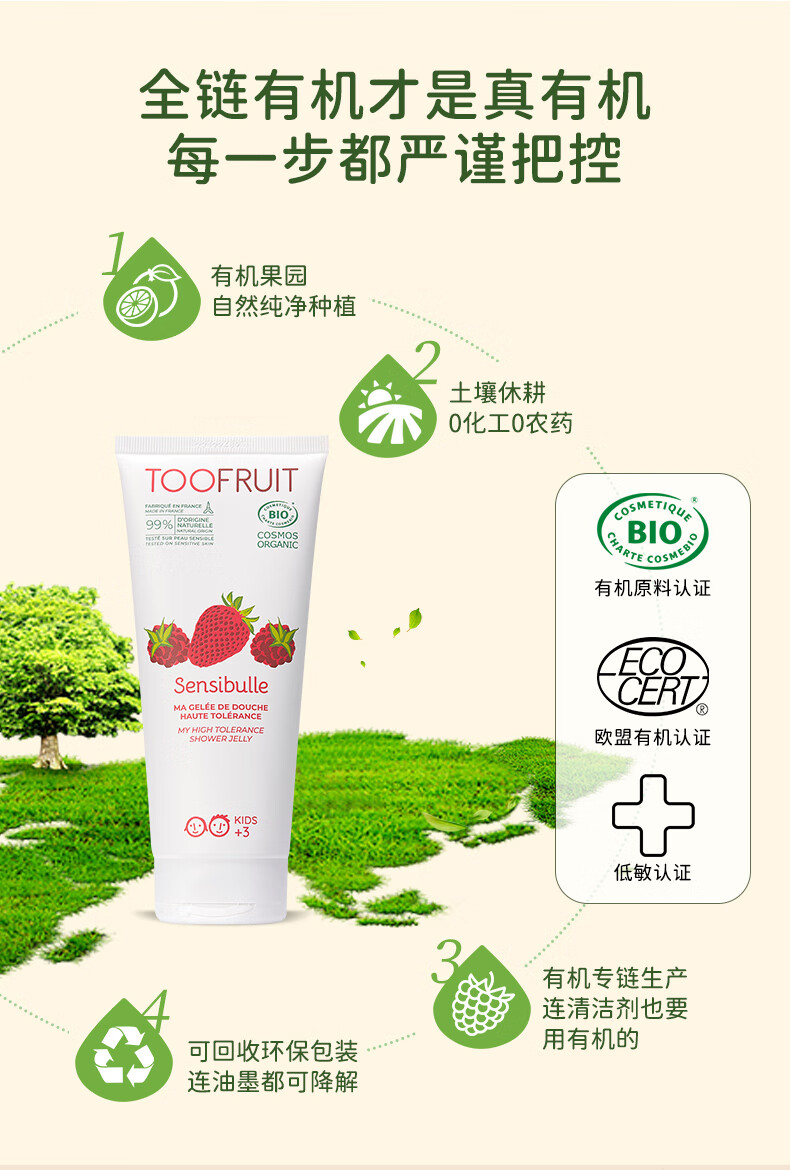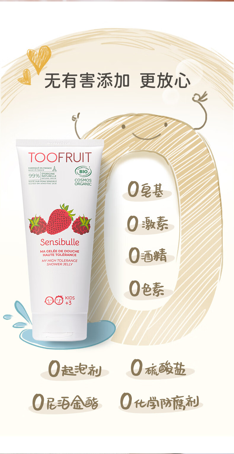 TOOFRUIT多果肤 有机儿童沐浴露3-6-12岁温 和洁净水润保湿效期至26年11月