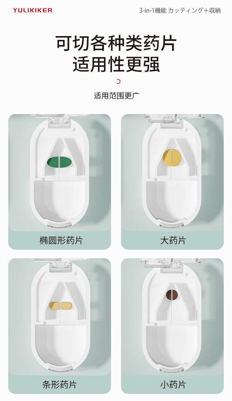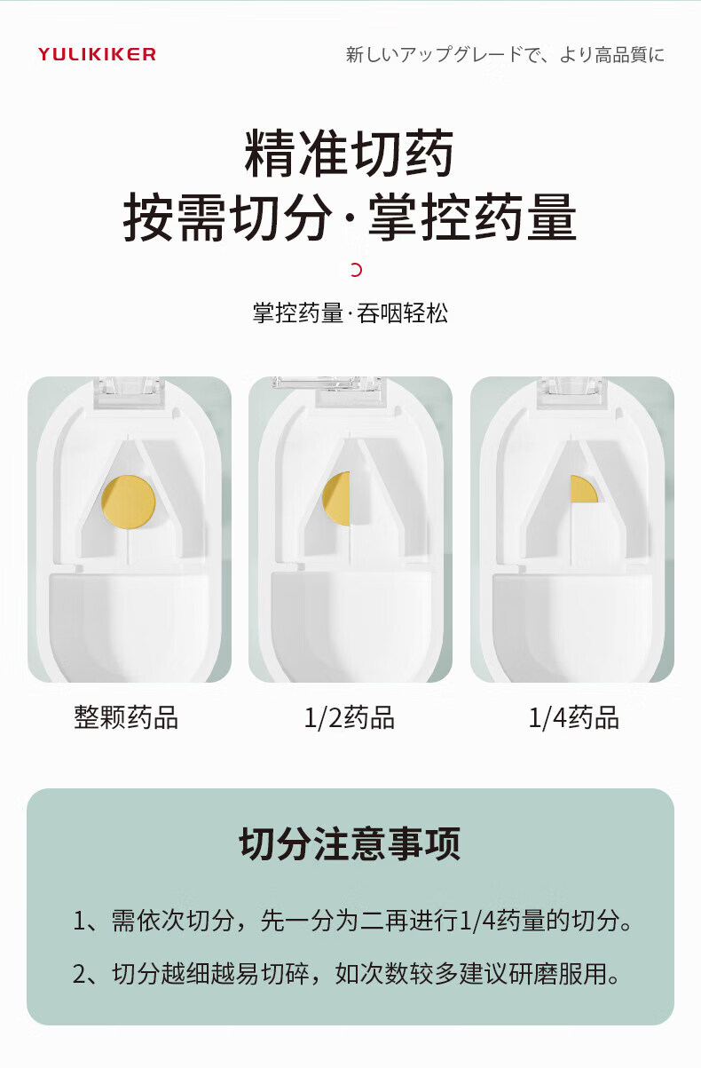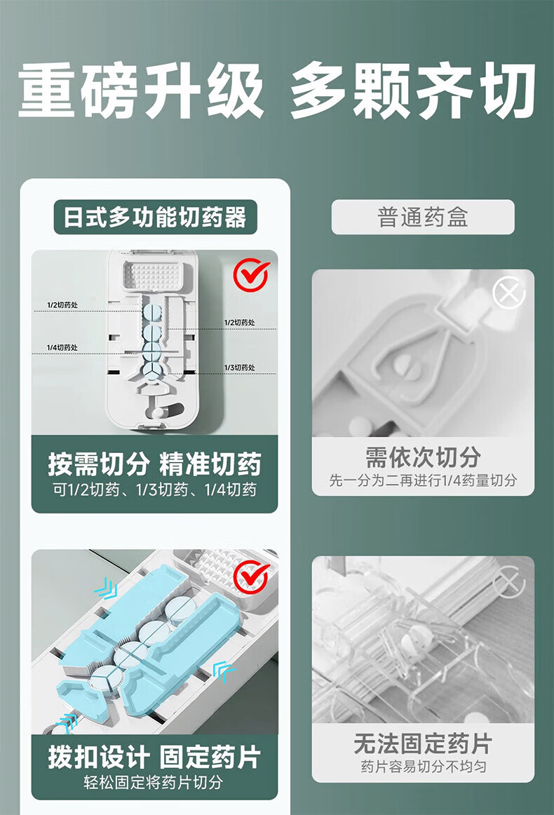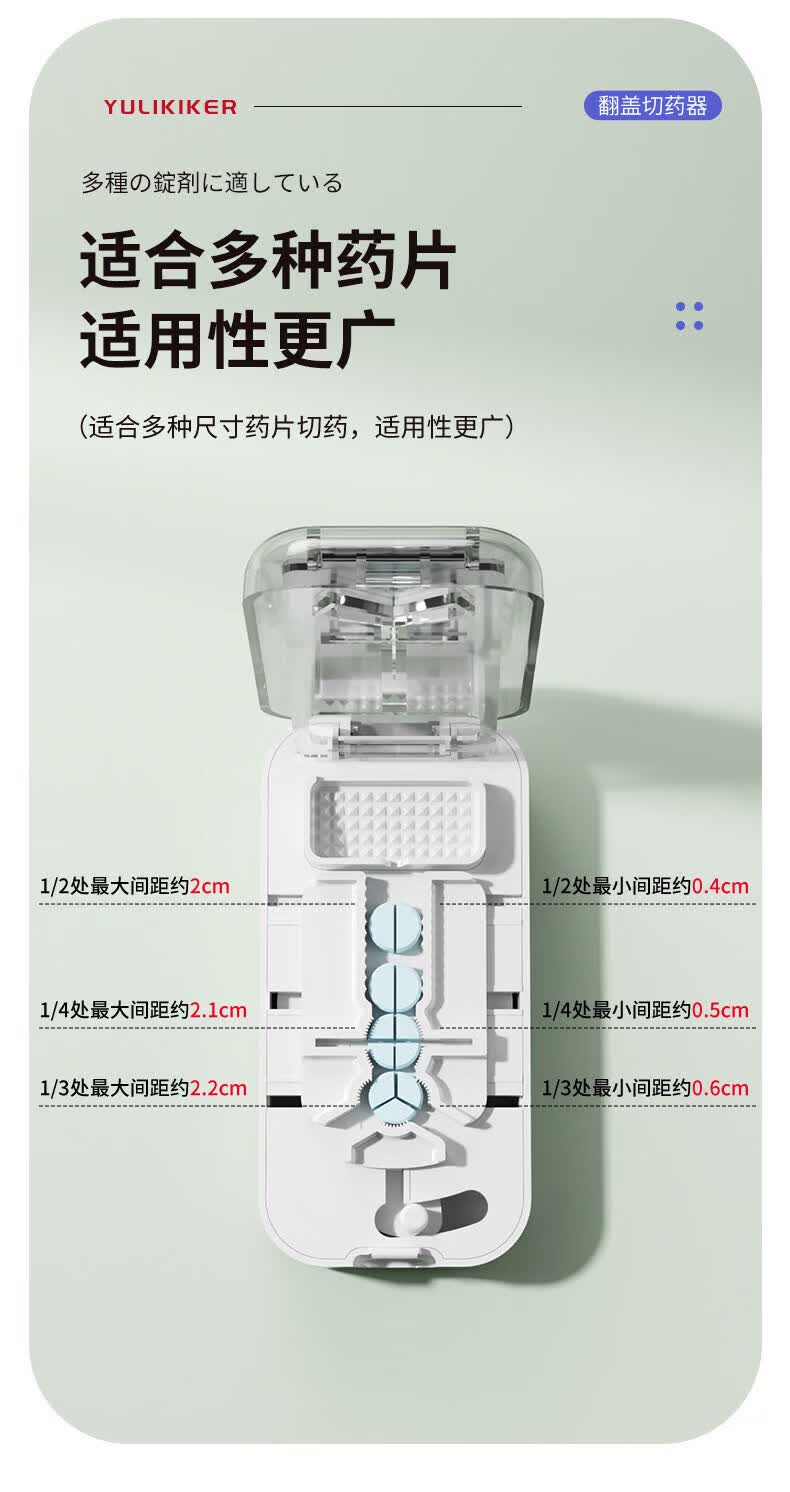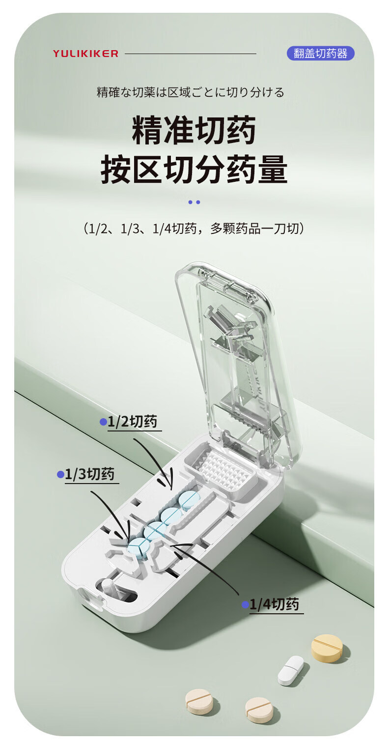 通用日本分药分割器切药器一分二三四精准切割便携药盒 【多颗齐切】重磅升级透明白【1/2+1/3+1/4切药】-储