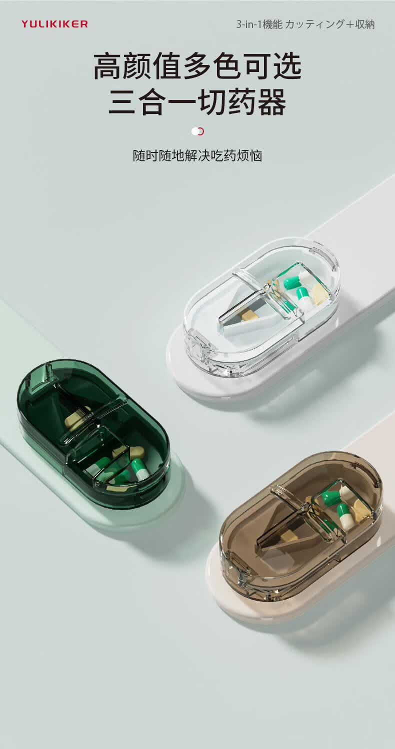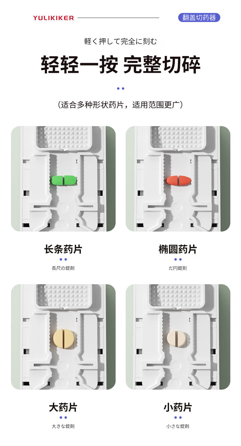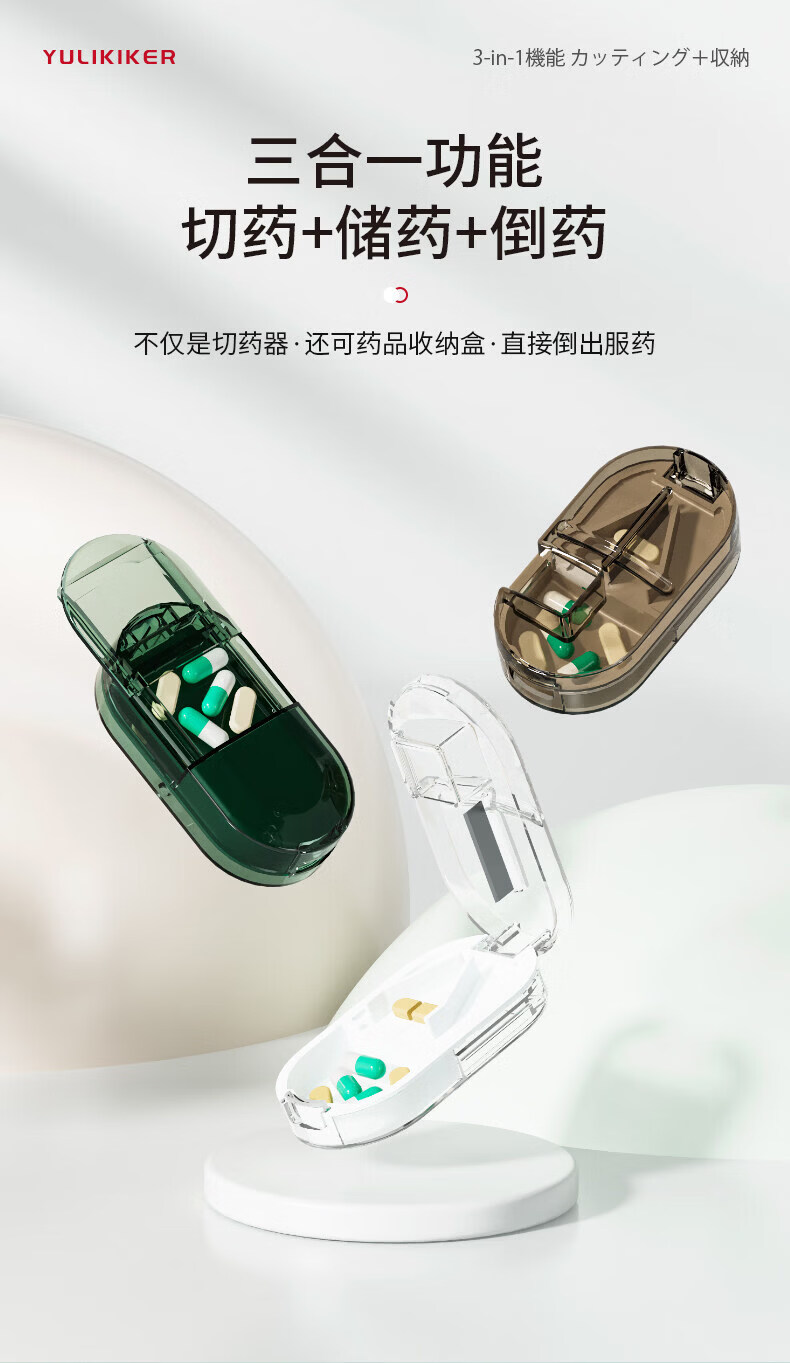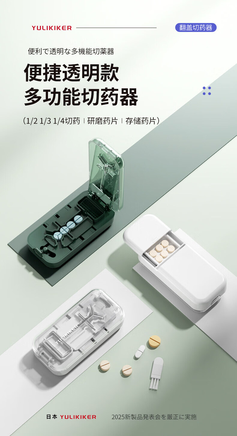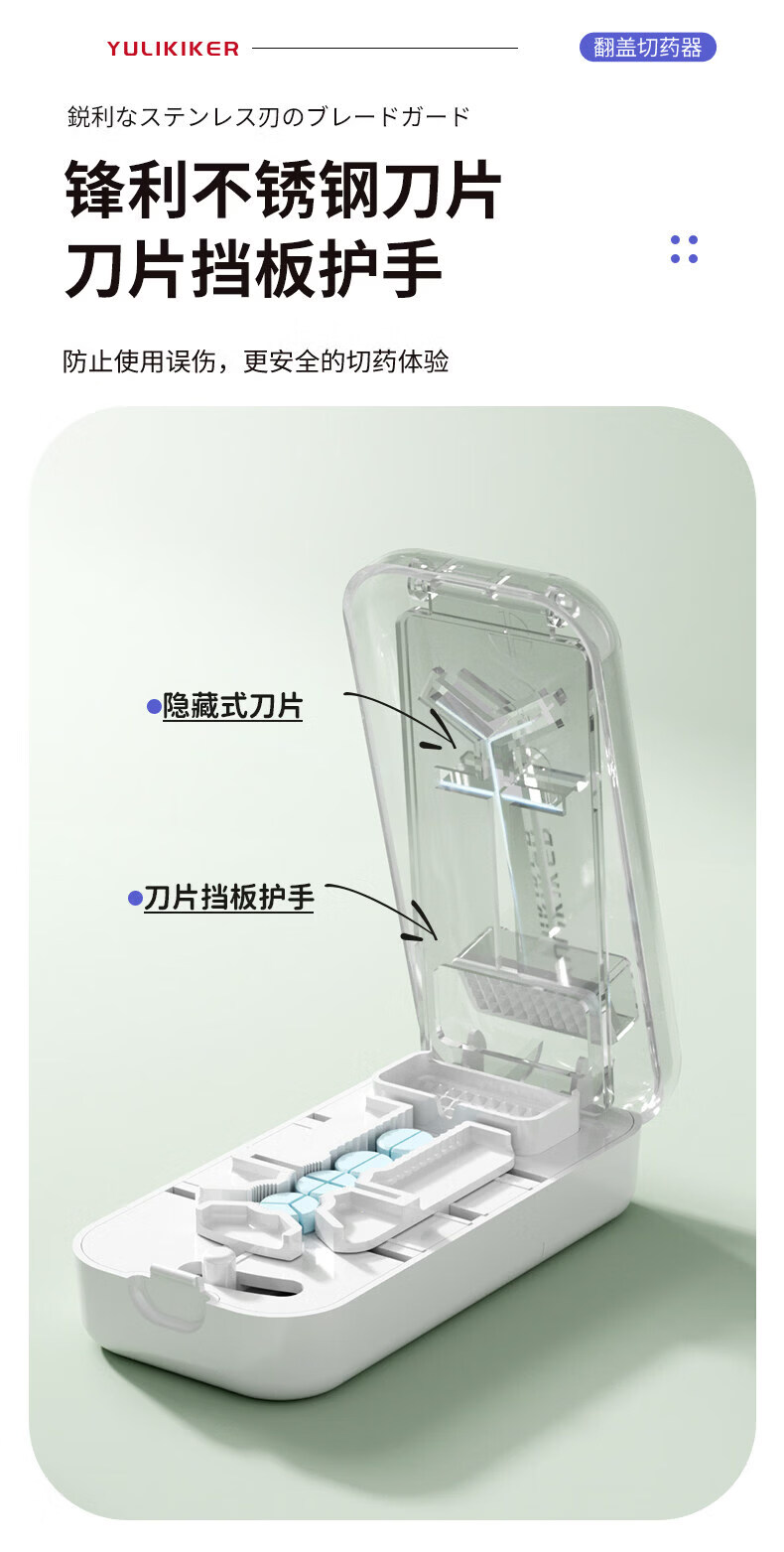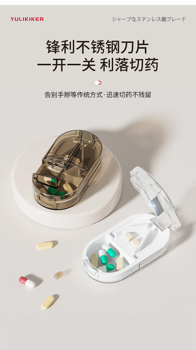 通用日本分药分割器切药器一分二三四精准切割便携药盒 【多颗齐切】重磅升级透明白【1/2+1/3+1/4切药】-储