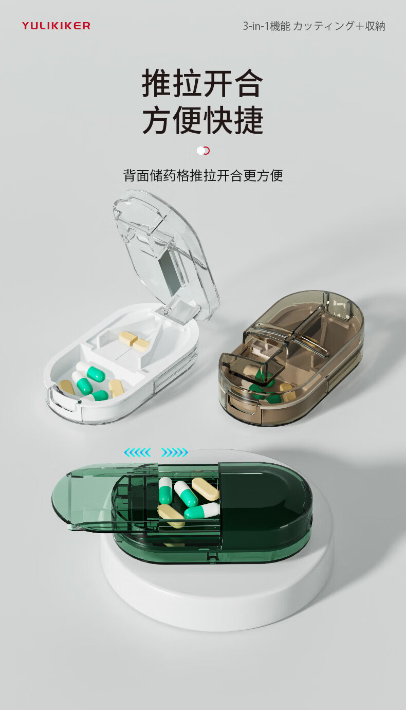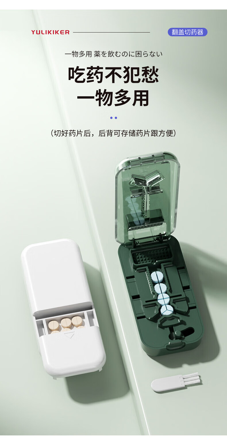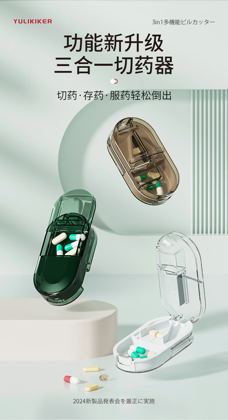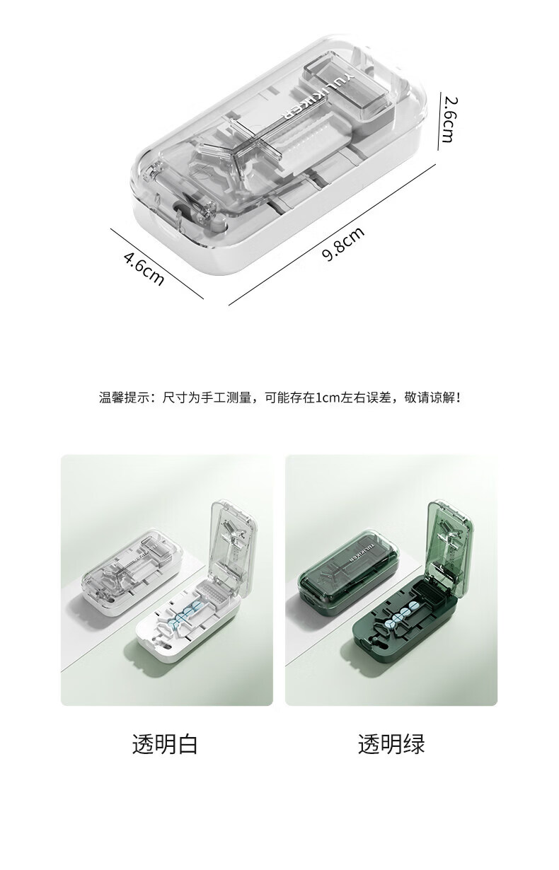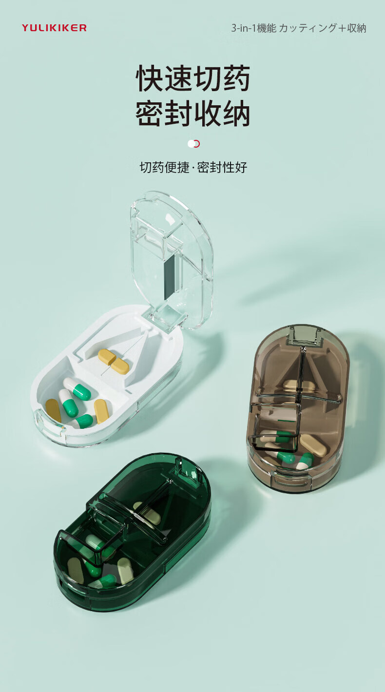 通用日本分药分割器切药器一分二三四精准切割便携药盒 【多颗齐切】重磅升级透明白【1/2+1/3+1/4切药】-储