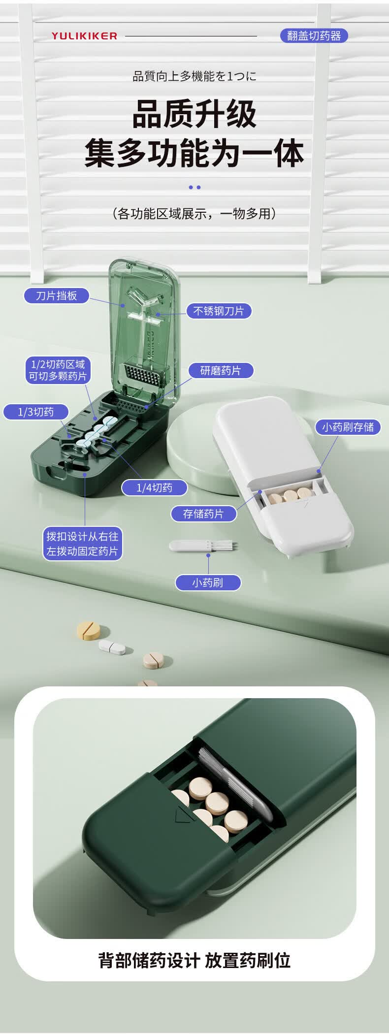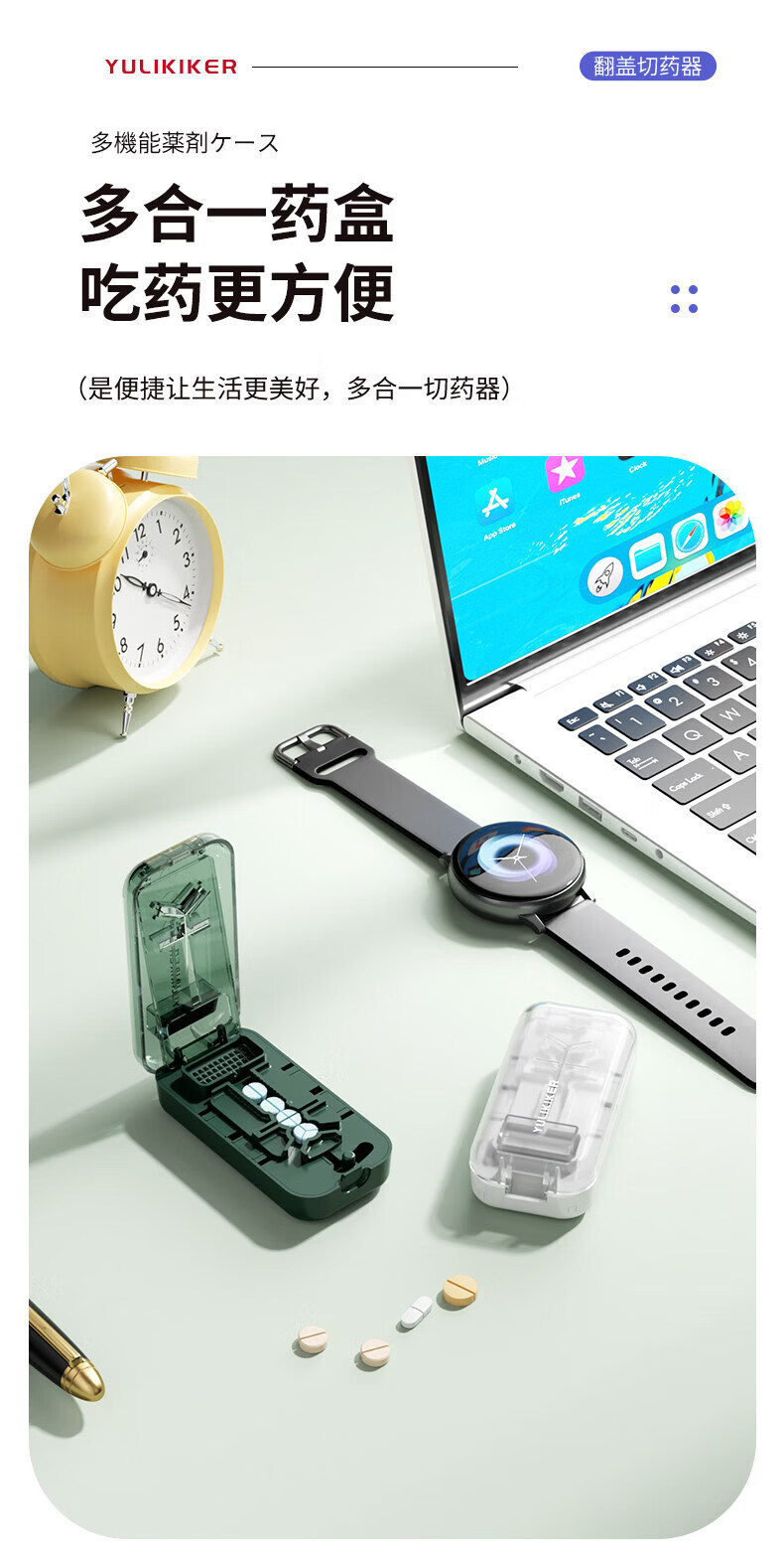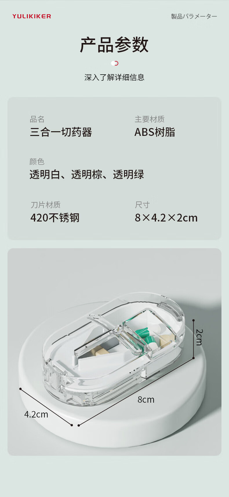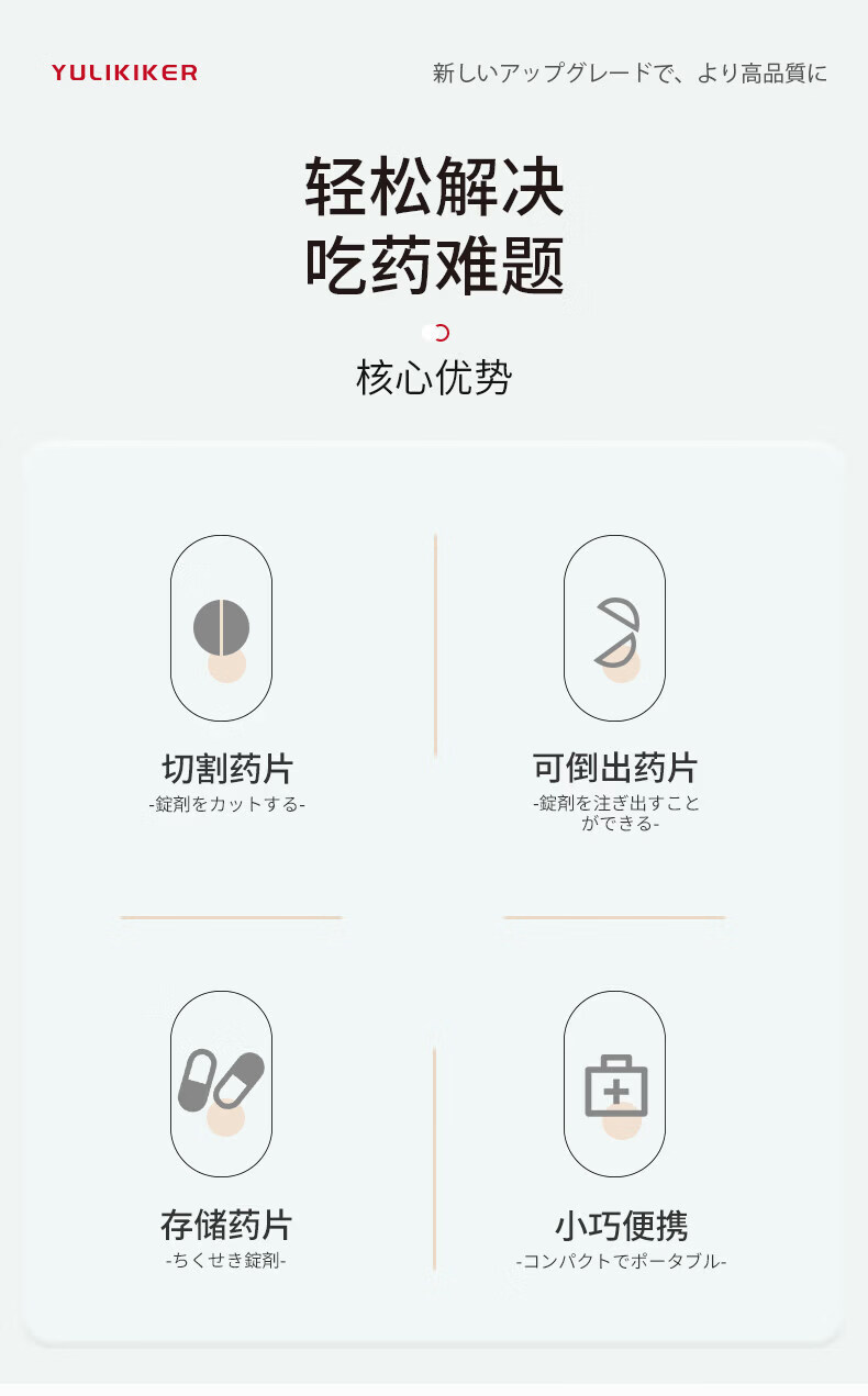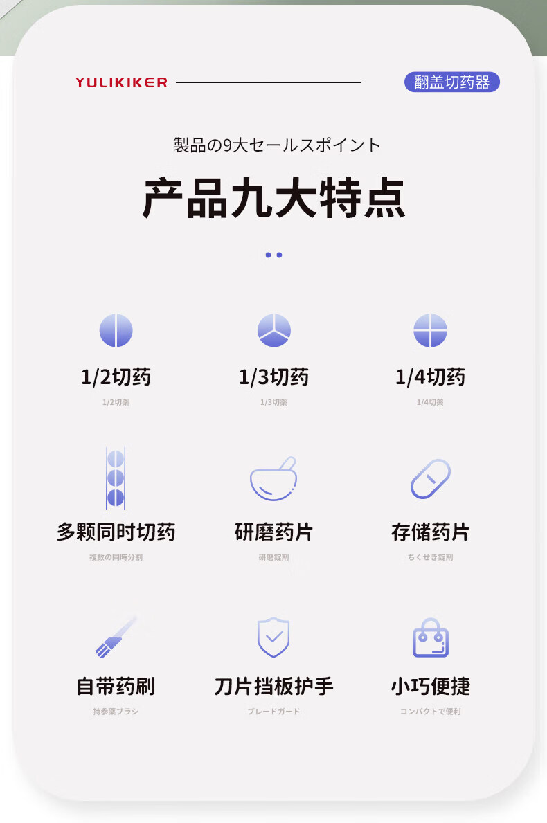 通用日本分药分割器切药器一分二三四精准切割便携药盒 【多颗齐切】重磅升级透明白【1/2+1/3+1/4切药】-储