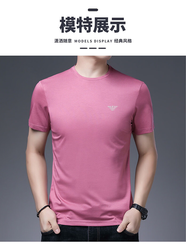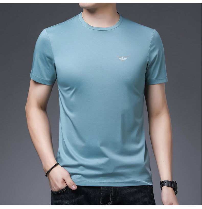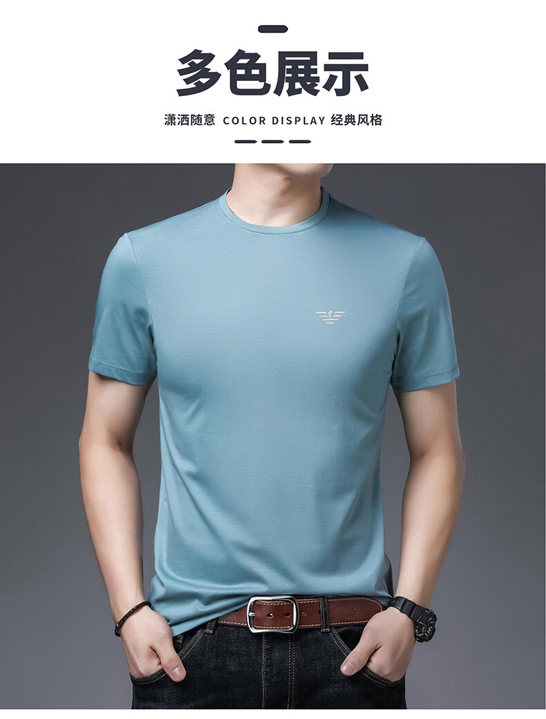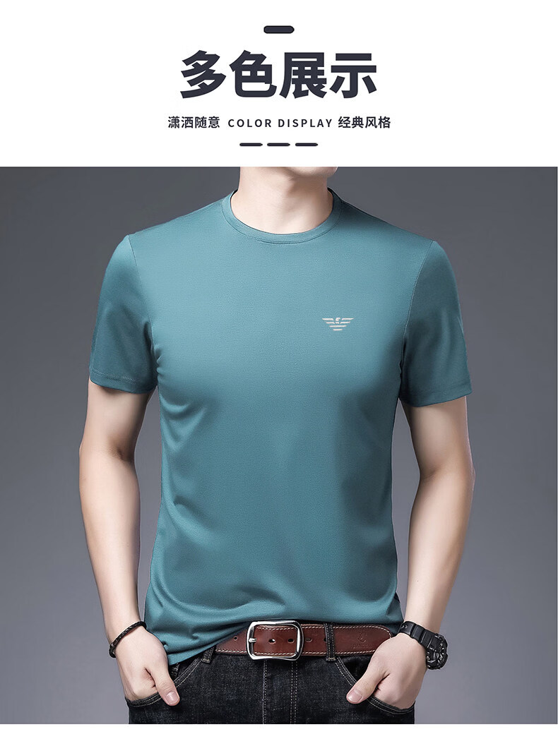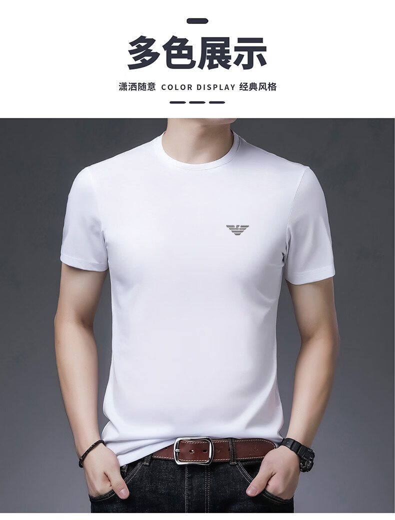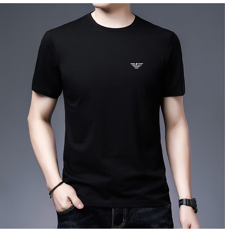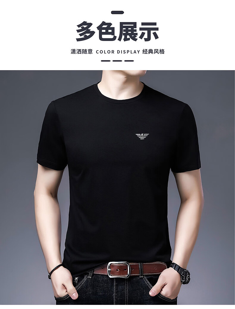 阿玛尼(ARMANI)意大利正品高端桑蚕丝男士短袖t恤夏季纯色圆领半袖体恤男装高端 十大奢侈品男装国际一线品牌黑色-圆领 4XL 190_【建议185-210斤】