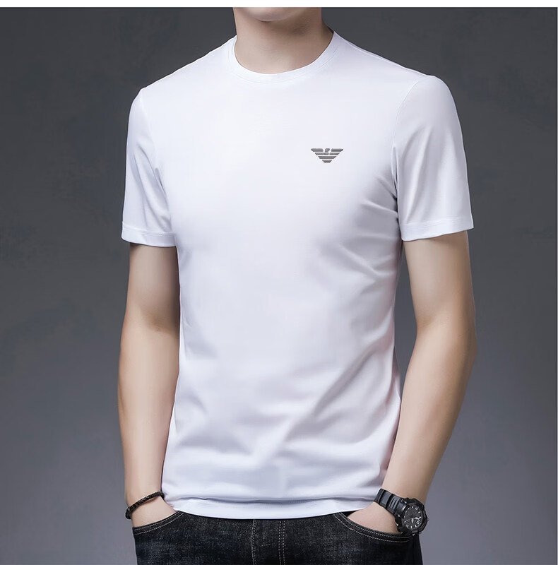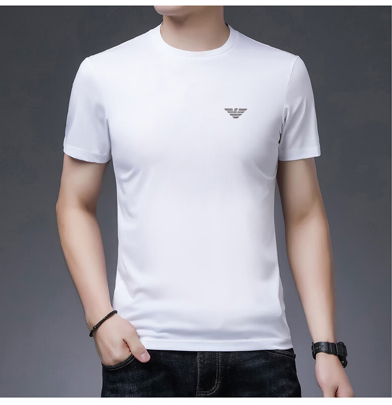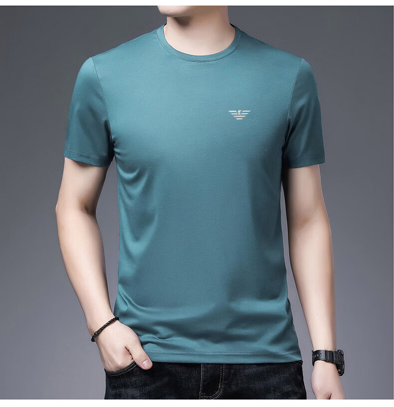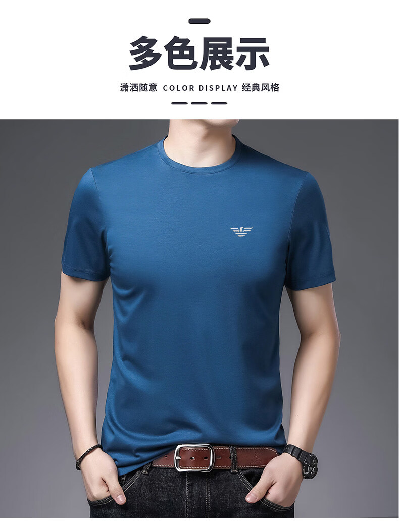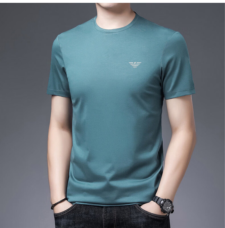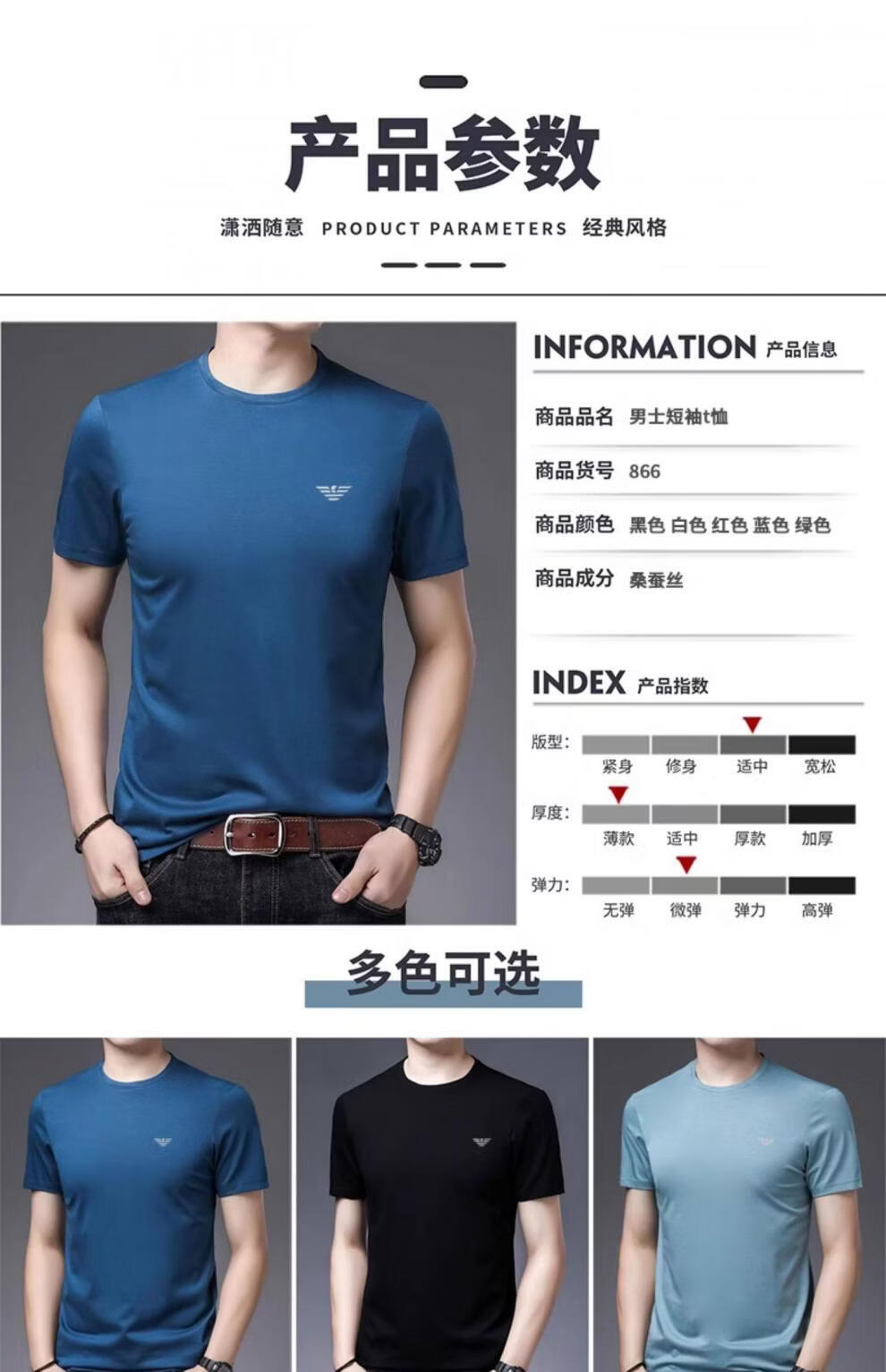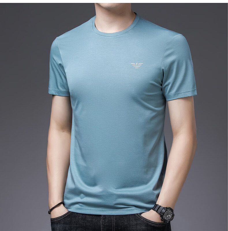 阿玛尼(ARMANI)意大利正品高端桑蚕丝男士短袖t恤夏季纯色圆领半袖体恤男装高端 十大奢侈品男装国际一线品牌黑色-圆领 4XL 190_【建议185-210斤】