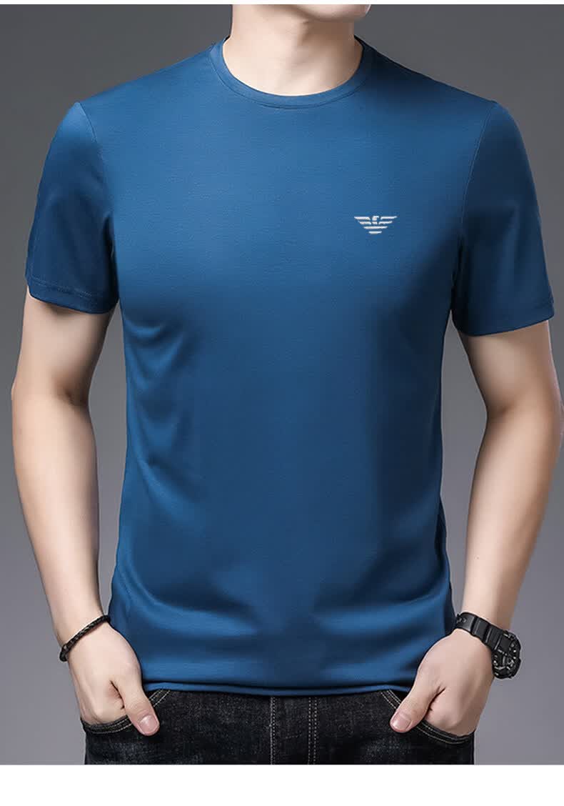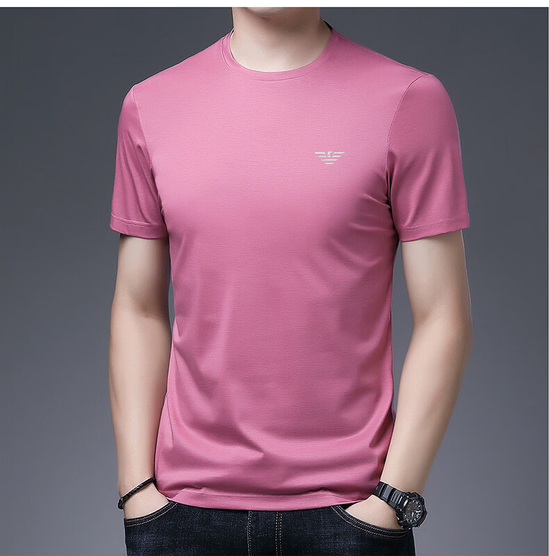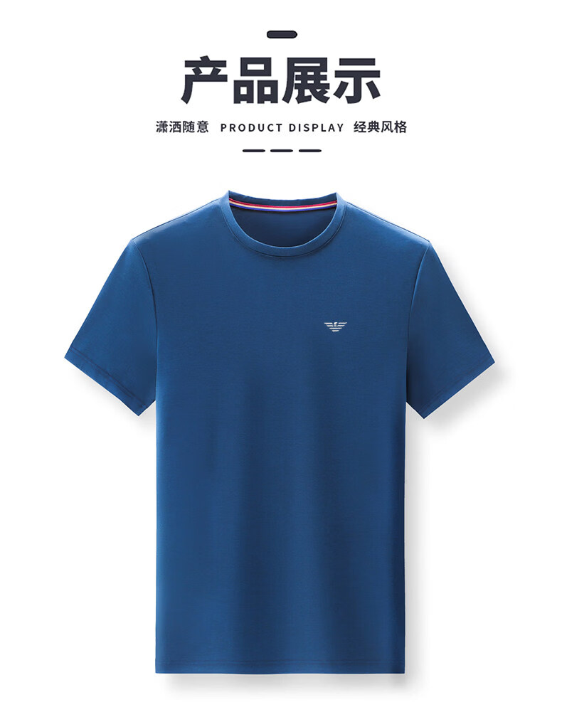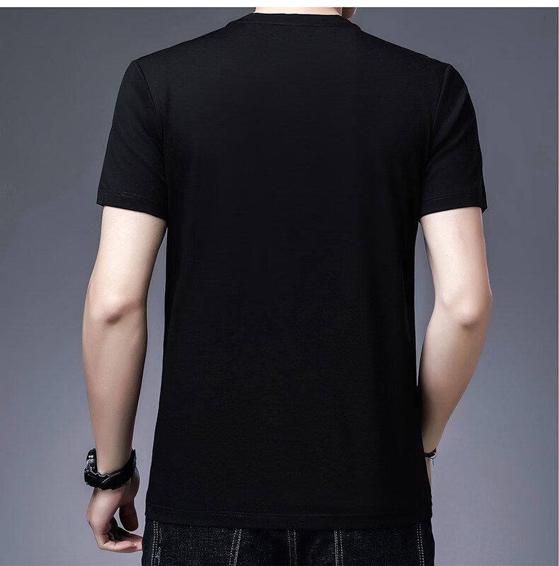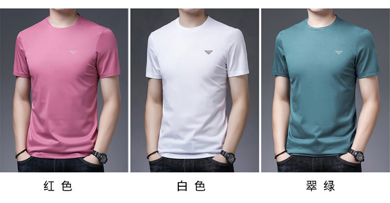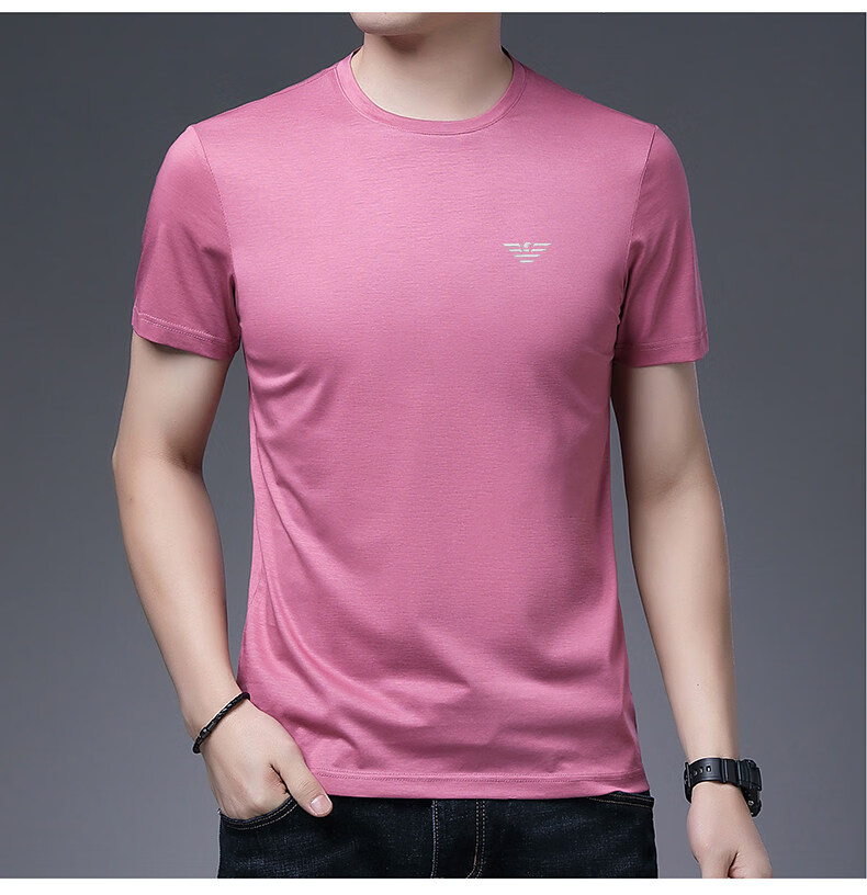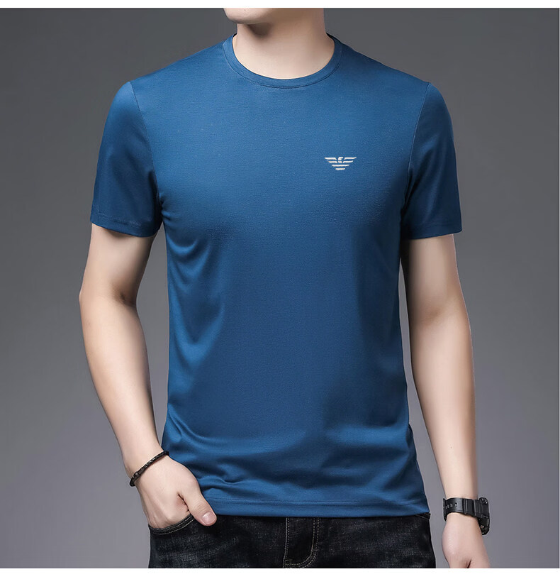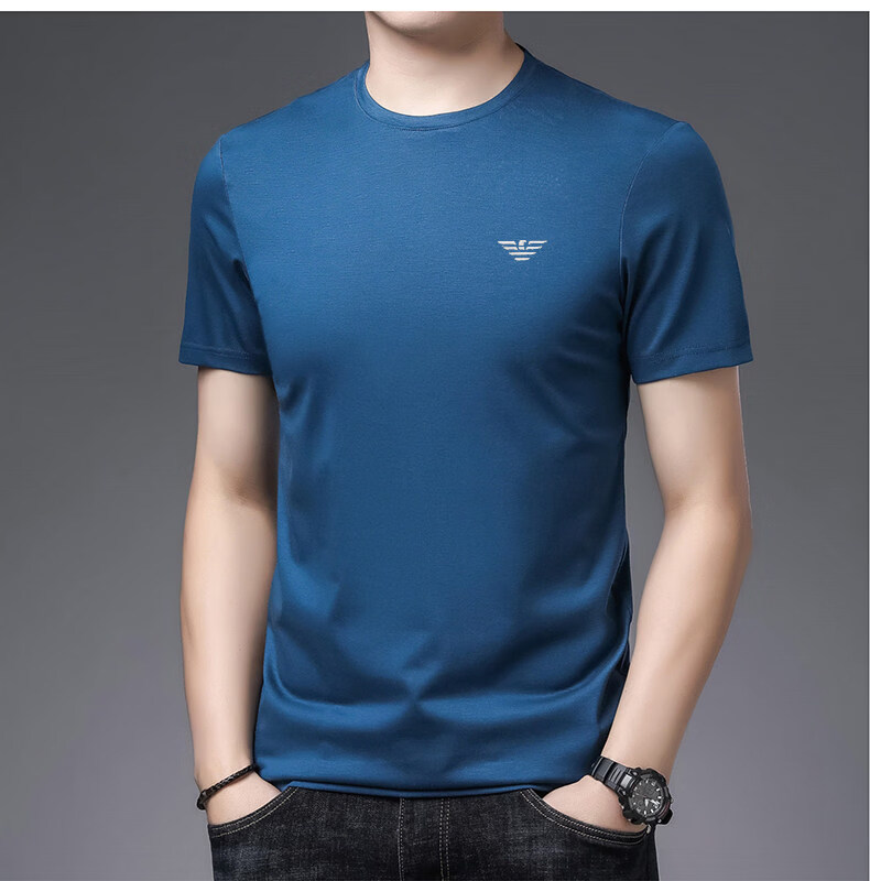 阿玛尼(ARMANI)意大利正品高端桑蚕丝男士短袖t恤夏季纯色圆领半袖体恤男装高端 十大奢侈品男装国际一线品牌黑色-圆领 4XL 190_【建议185-210斤】