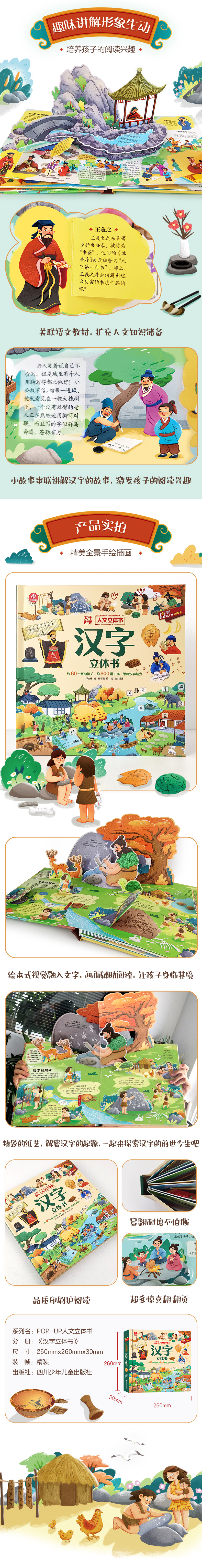 汉字立体书 儿童3d立体书翻翻书人文启蒙系列儿童识字3D人类篇绘本3-6-9岁以上幼儿早教书籍科普幼儿园学前机关课外故事书 图书